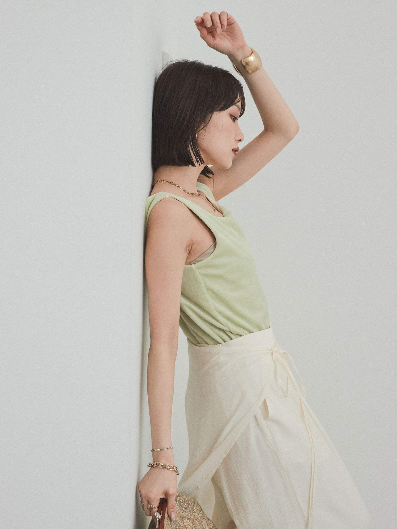 這款方領背心採用閃亮的天鵝絨布料,優雅氣質不減。方形剪裁凸顯肩頸線條,適度貼身的輪廓更凸顯成熟女性的魅力。它既可單穿,也可內搭夾克或襯衫。它是一款四季皆宜的單品,能為您的造型增添一抹魅力與沉穩。 ※除下裝、吊帶背心(內衣)以外的商品均不含內衣。