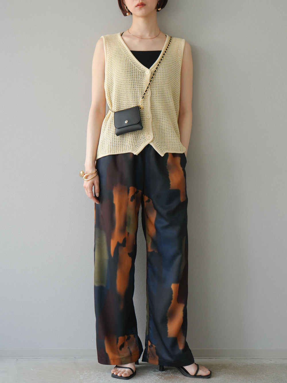[套裝] 繫腰帶亞麻背心&寬褲套裝(2件套)