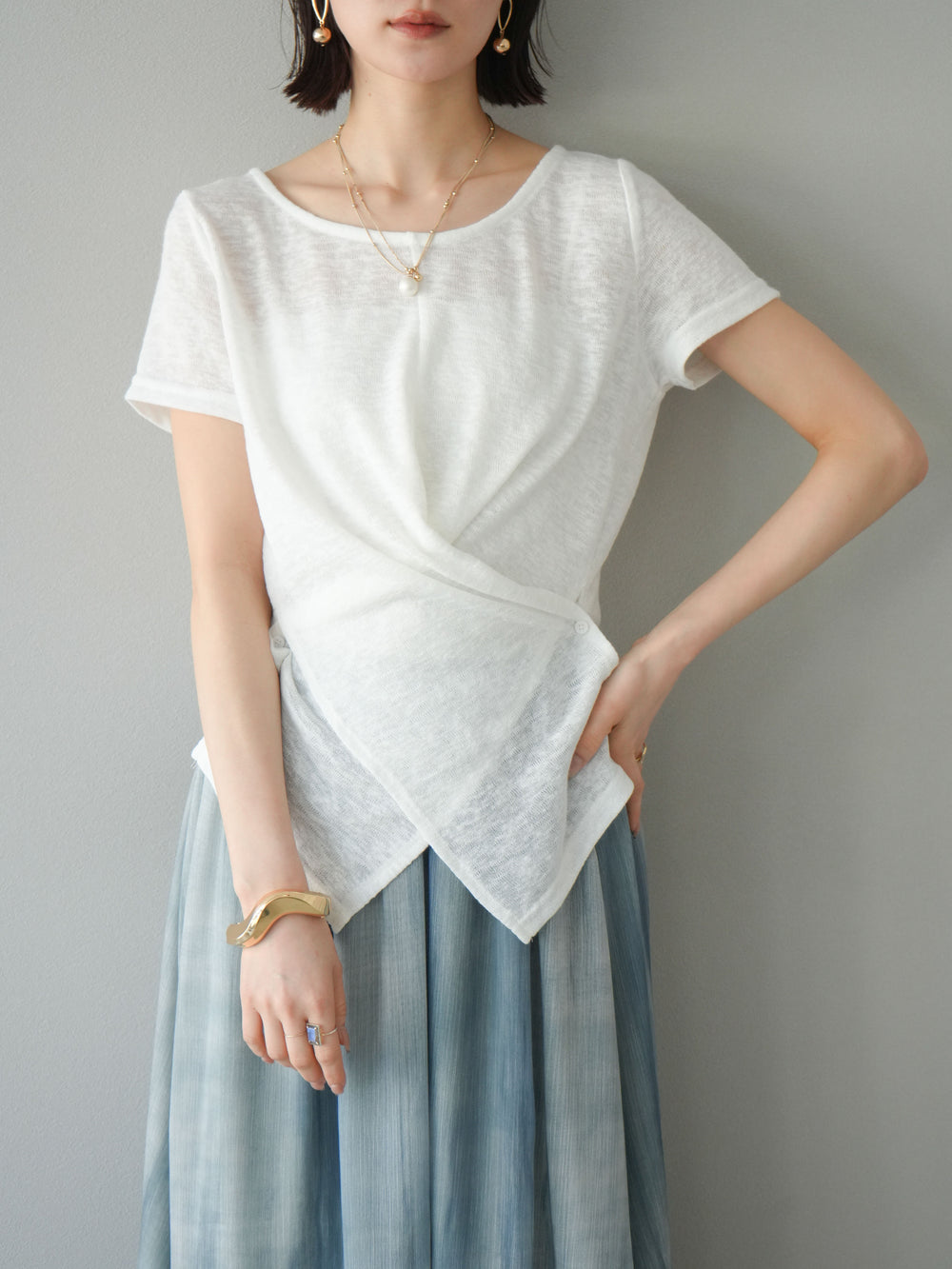 【預購】色彩協調的柔和褶皺半袖上衣/米色