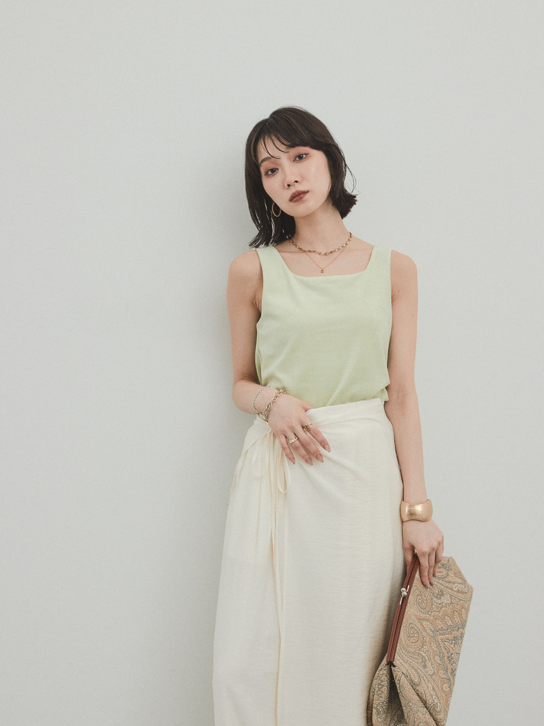 [預購] Washer Satin 薄紗多層背心/卡其米色