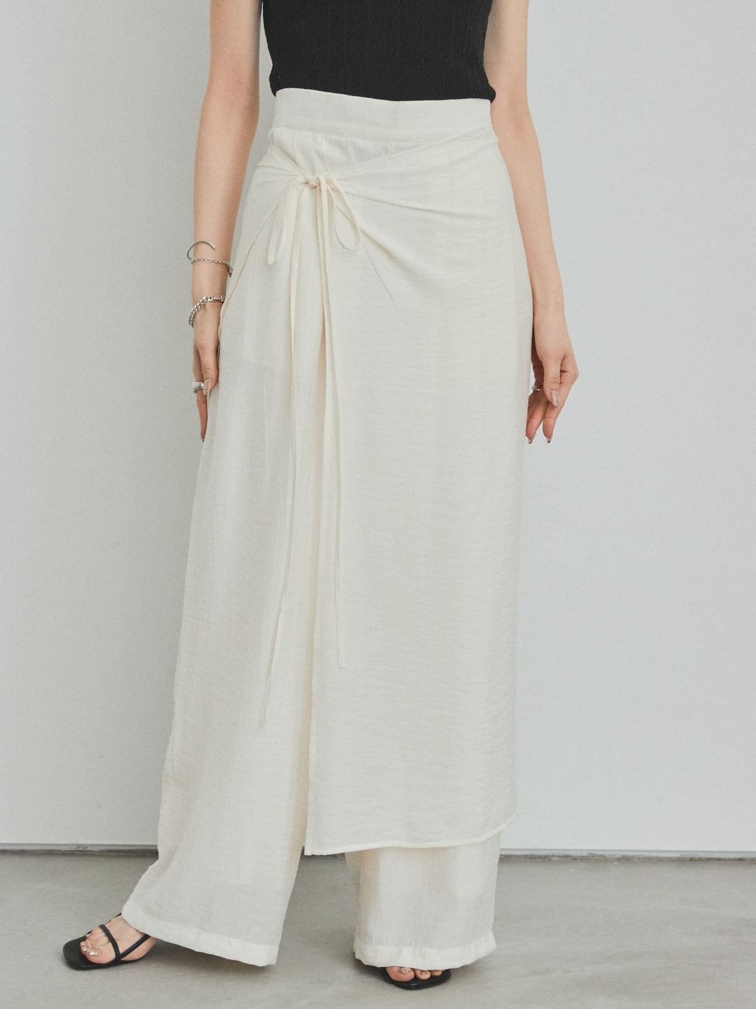 [預購] Washer Satin 多層裙褲/黑色