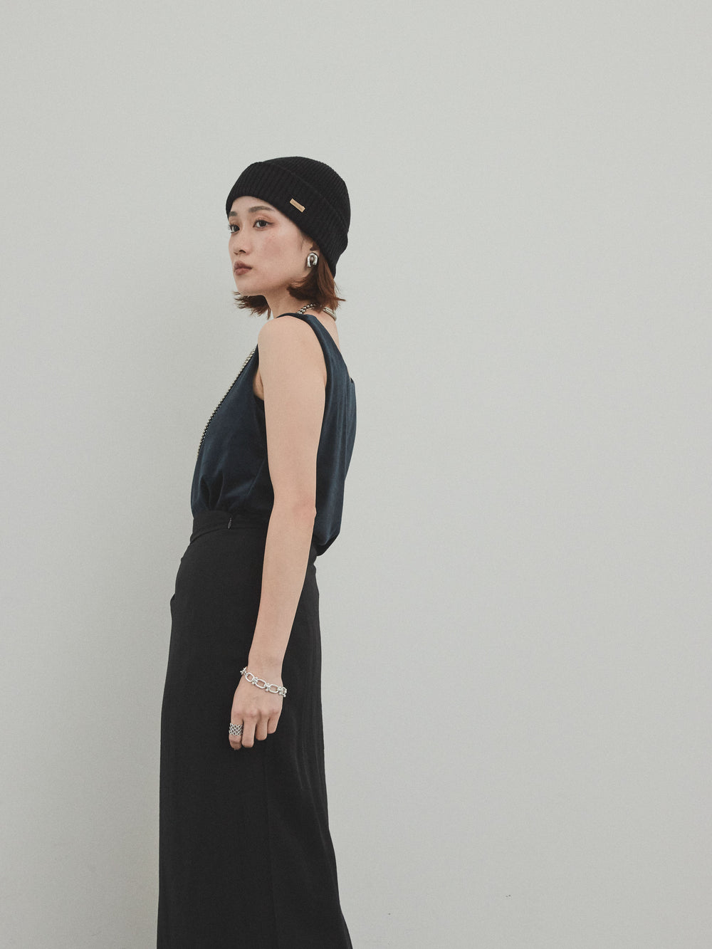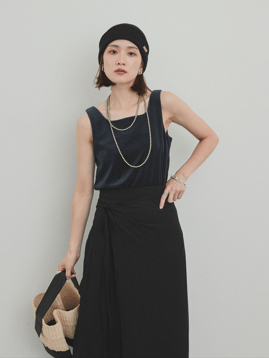 [預購] Washer Satin 薄紗多層背心/黑色