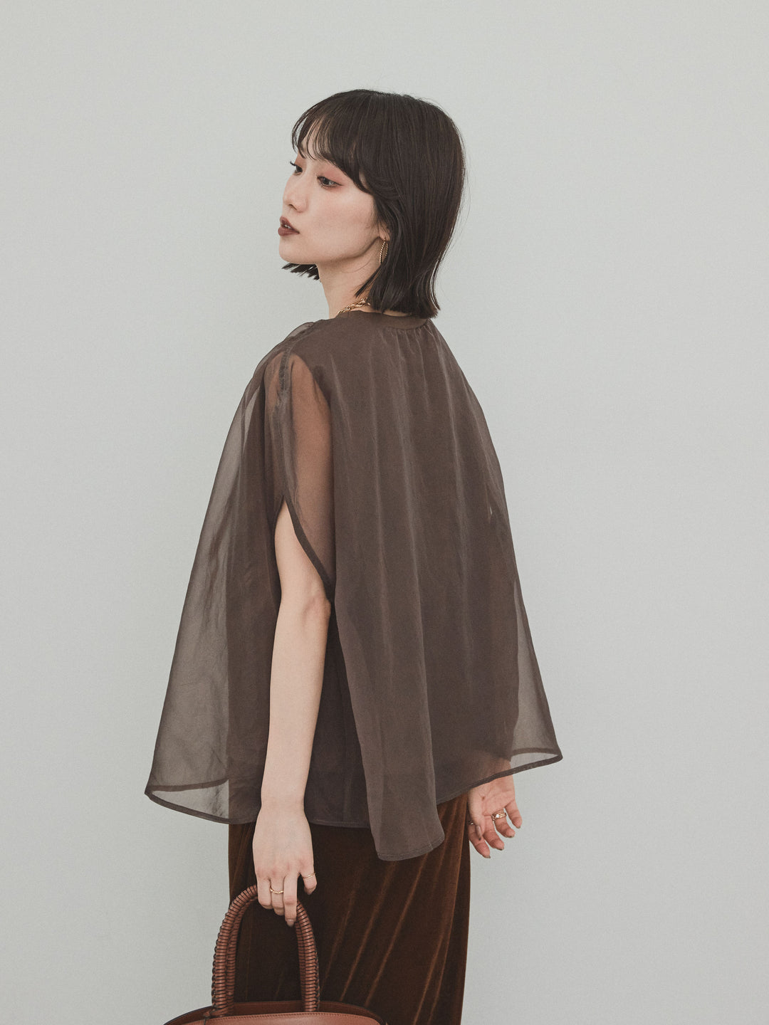 [預訂] 緊湊光滑透視多層上衣/棕色