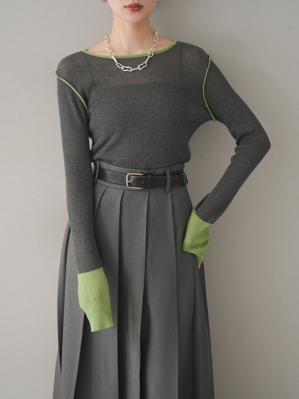 【預購】色彩協調的透明亞麻針織上衣/炭綠色