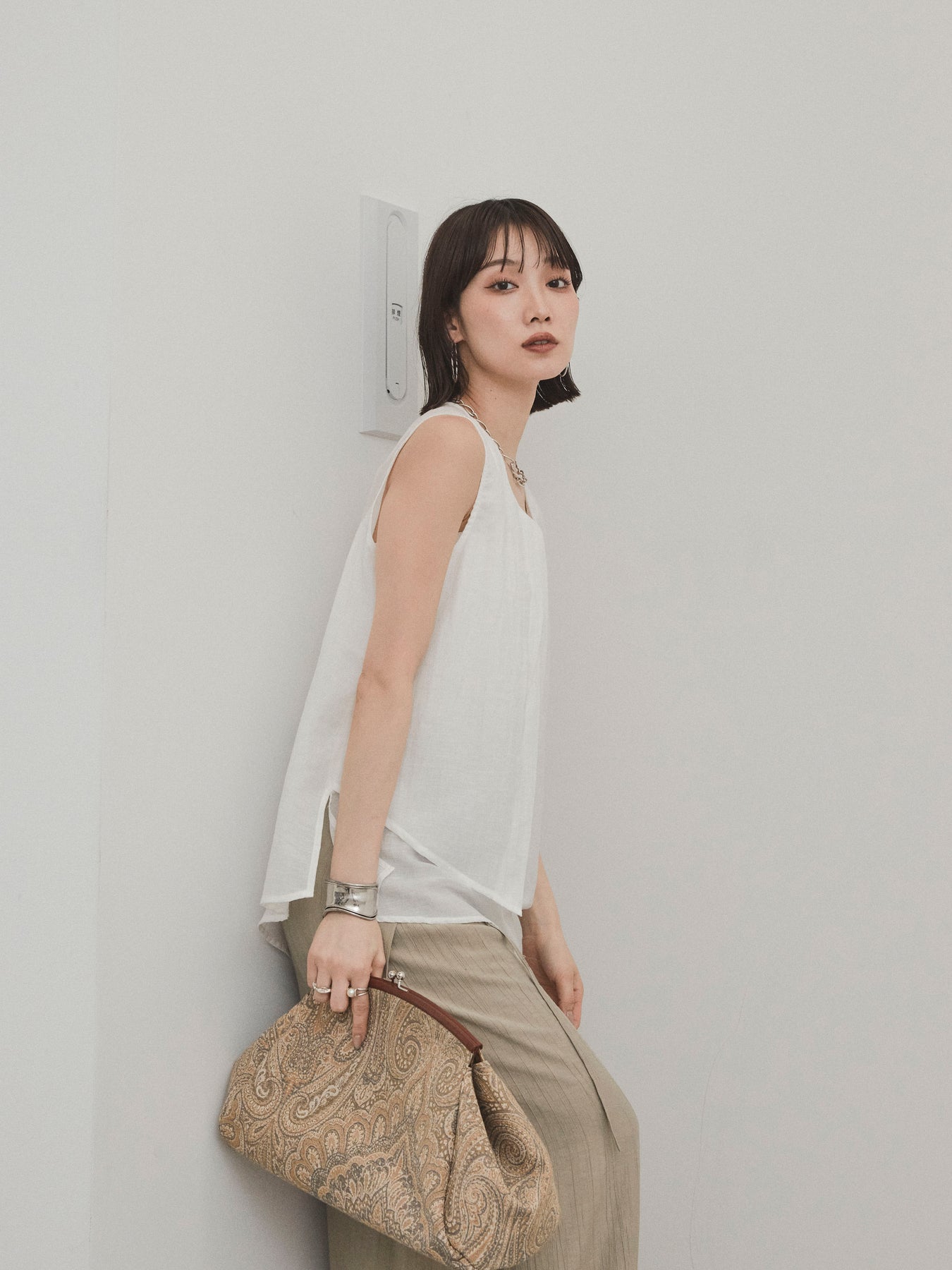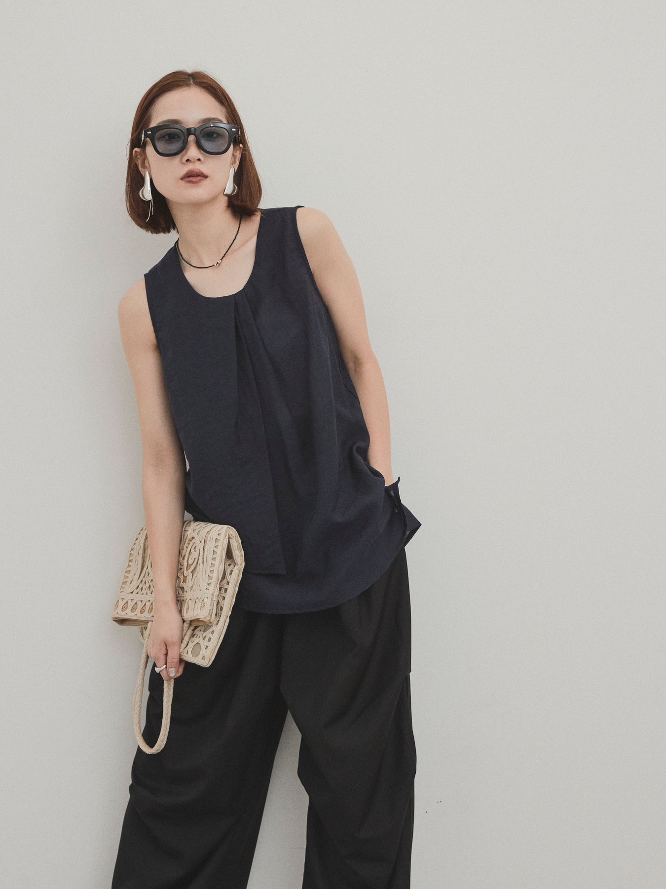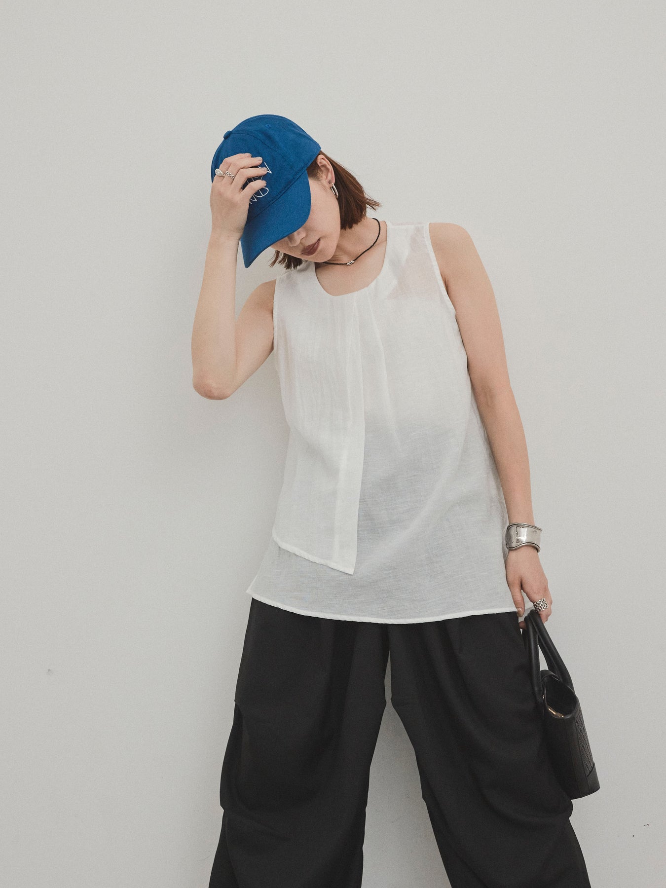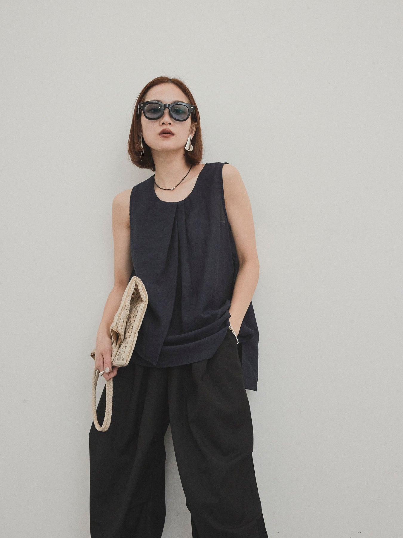 成人時尚襯衫,正面有令人印象深刻的褶皺,並採用不對稱設計。 適度的透明度營造出輕盈的夏日感覺,而三維輪廓則給人一種精緻的印象。 無袖設計給人一種清涼的感覺,精緻的剪裁讓你的手臂(可能是一個問題部位)看起來更加纖細。 這種布料摸起來感覺很光滑,穿起來很舒適。 它本身就具有足夠的存在感,可以成為您服裝的焦點,但平衡的設計使其易於與任何下裝混搭。 這是多功能的單品,既可以搭配褲子來打造幹練造型,也可以搭配裙子來打造女性氣質,可以滿足各種品味。