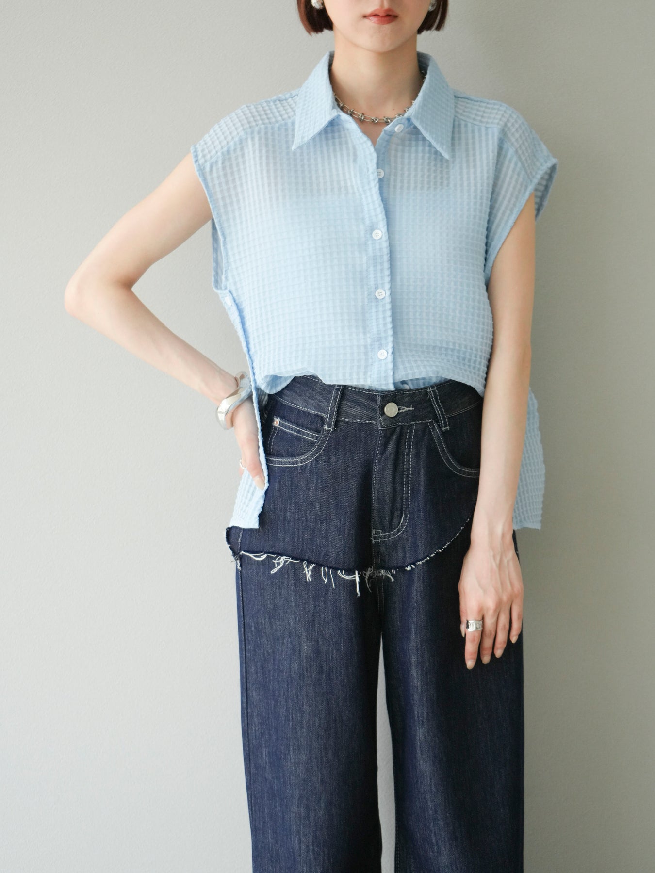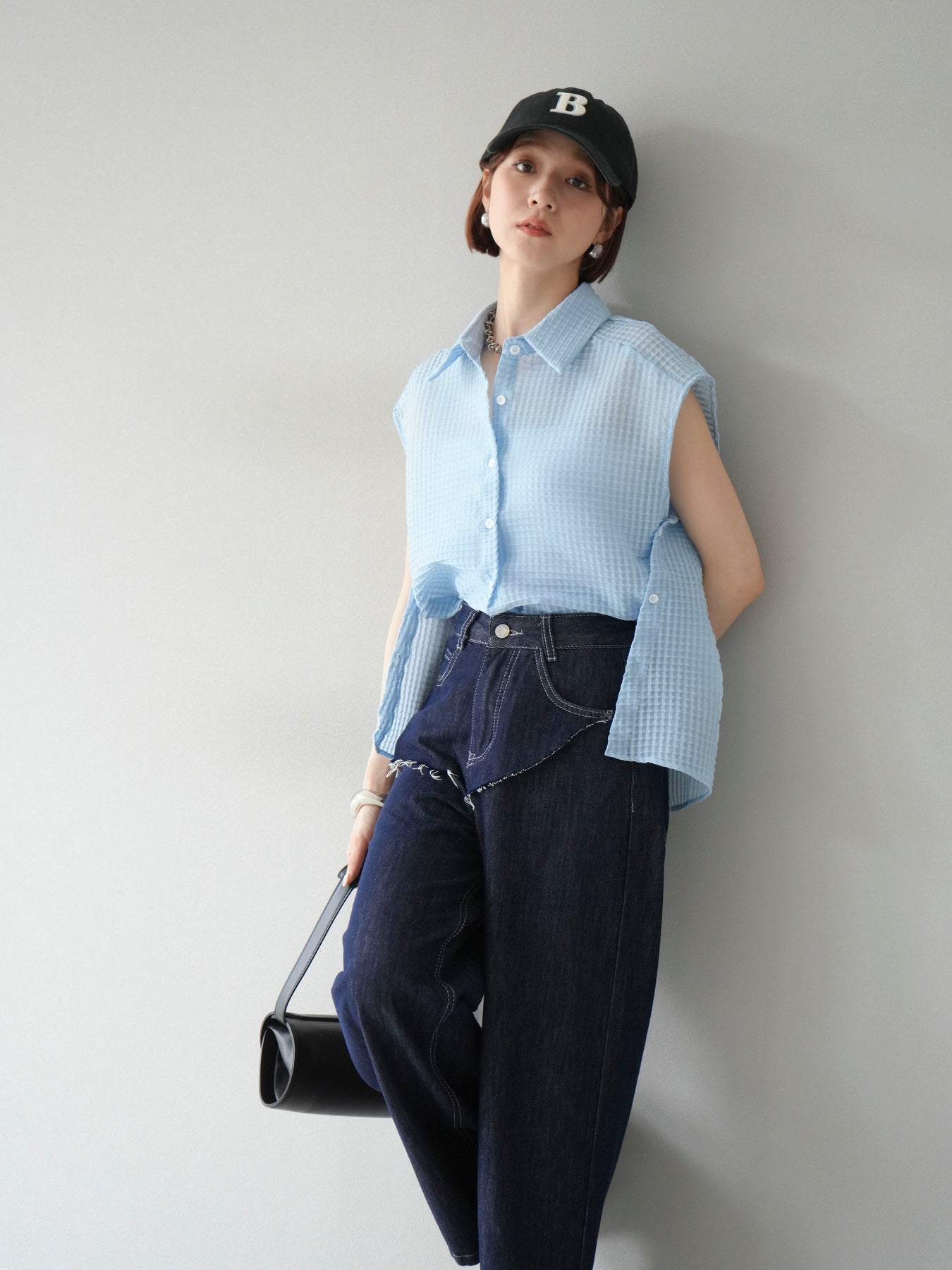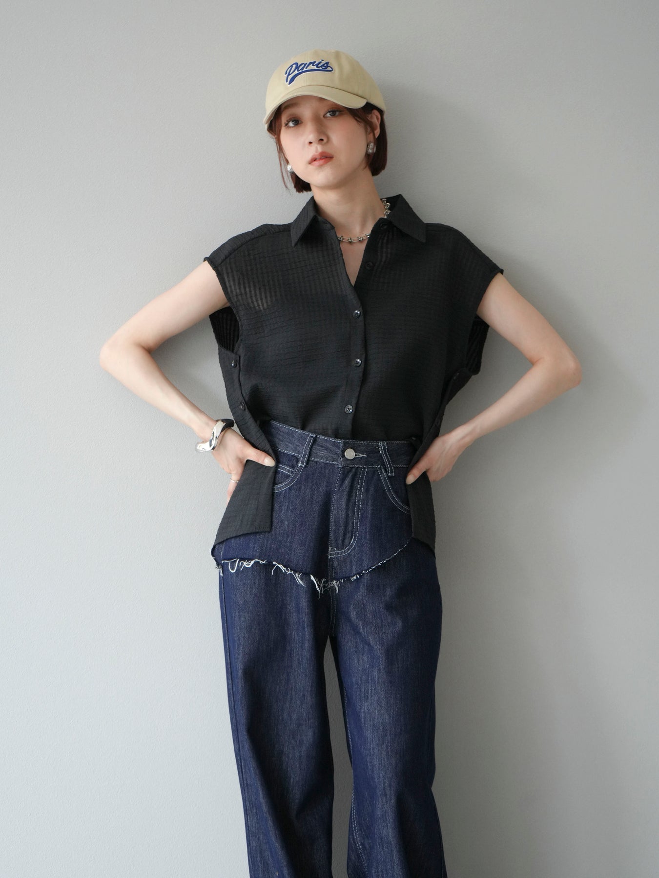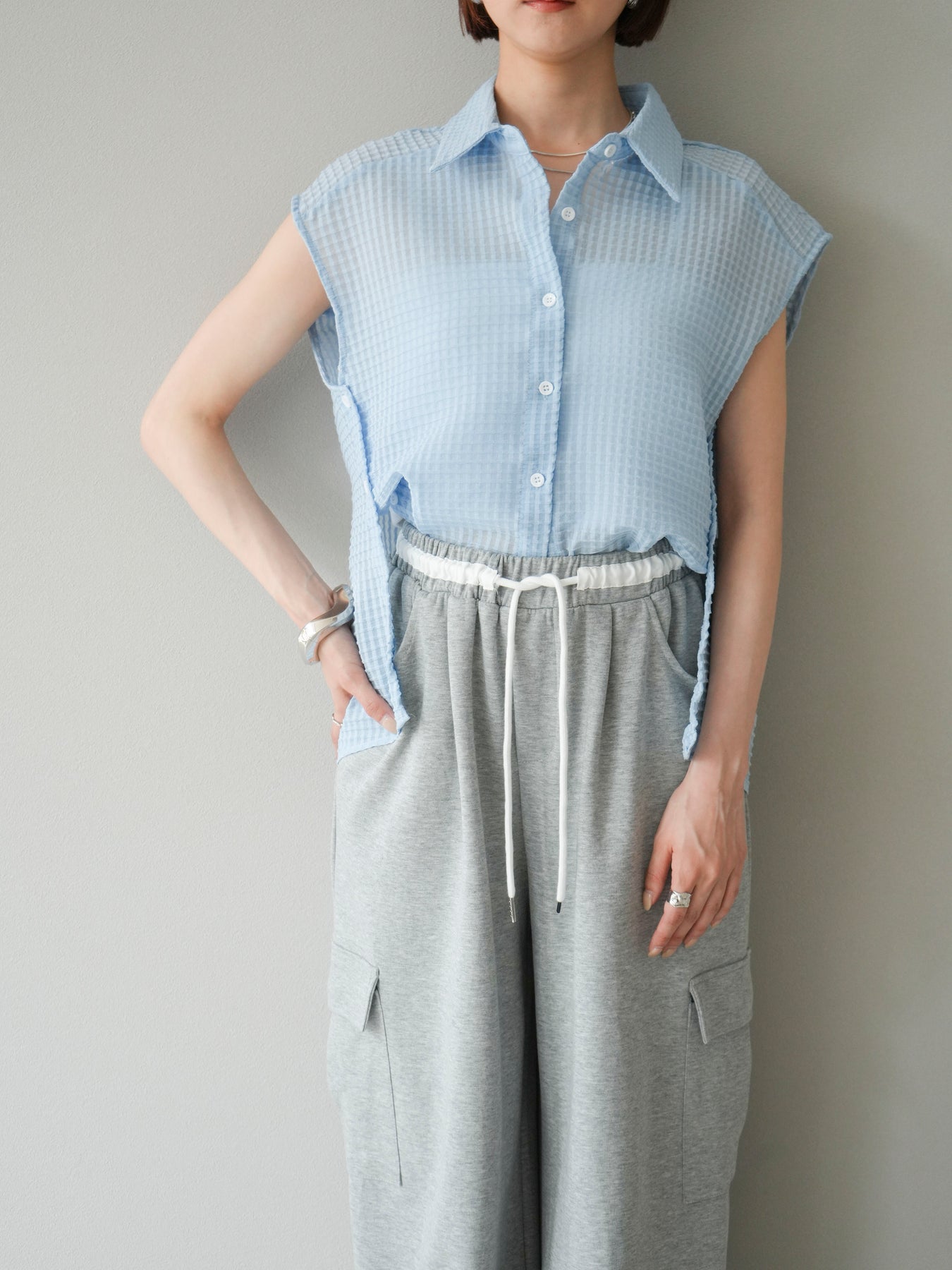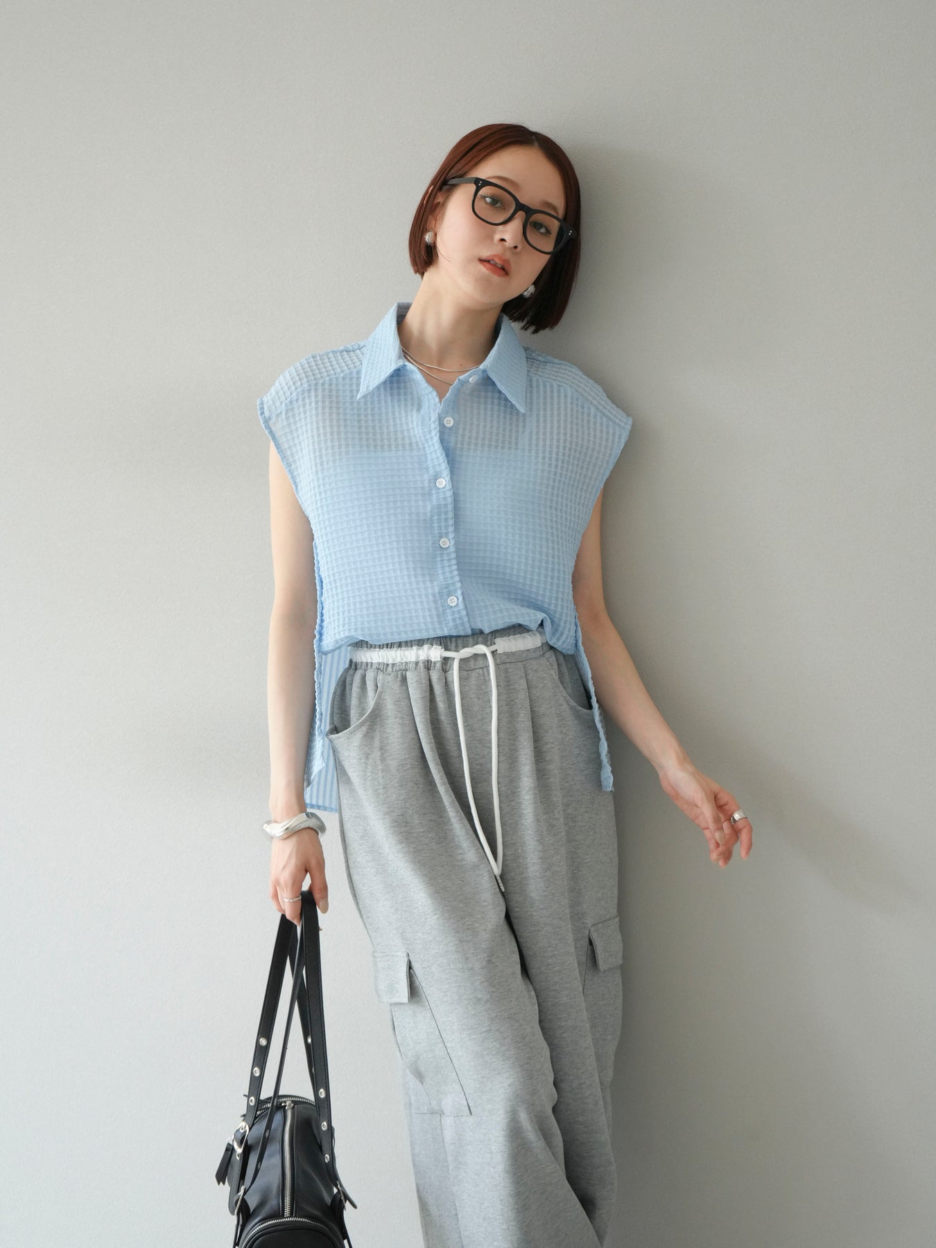 【預購】透視格紋無袖襯衫 + 【預購】透視格紋無袖襯衫
