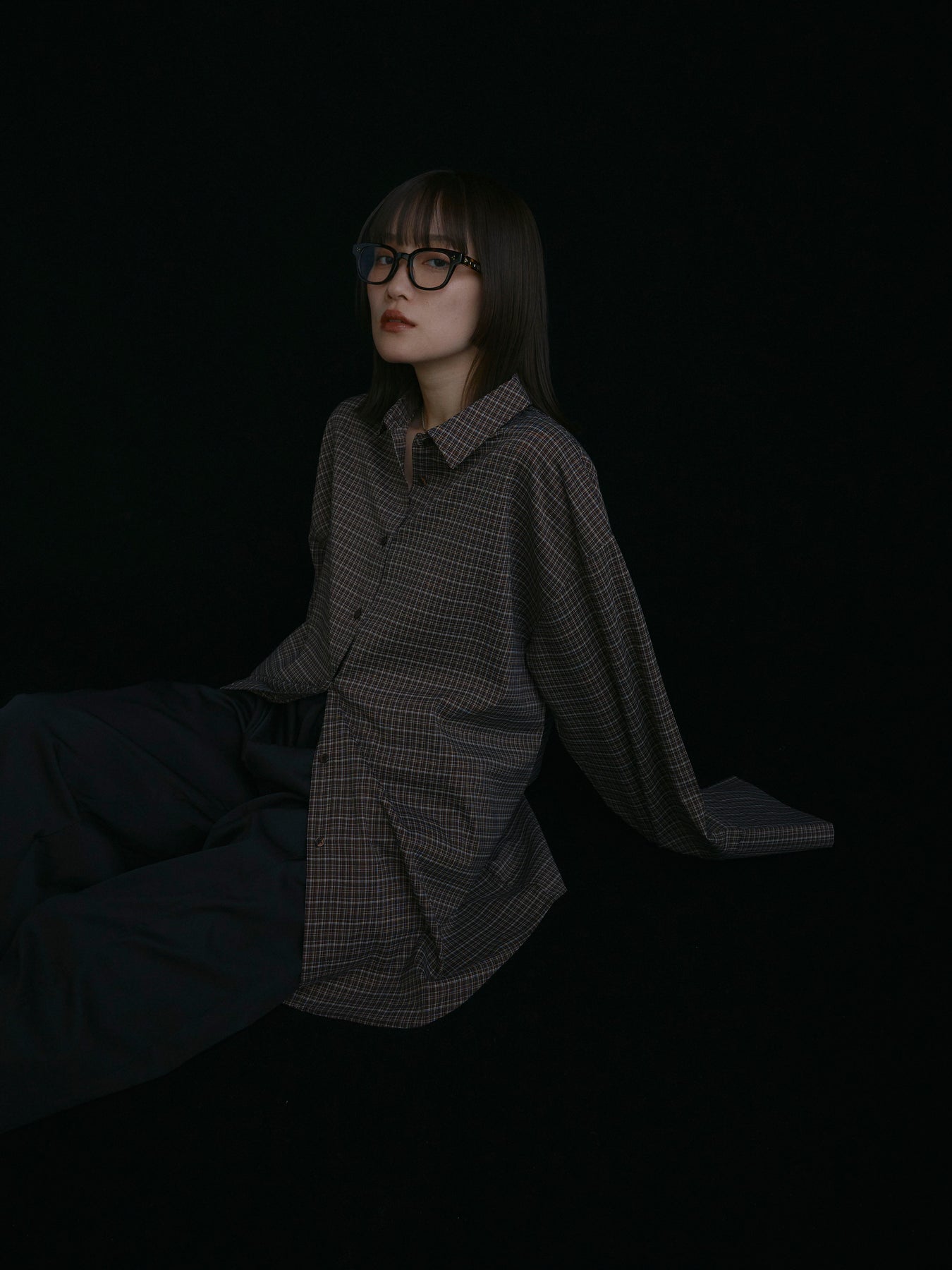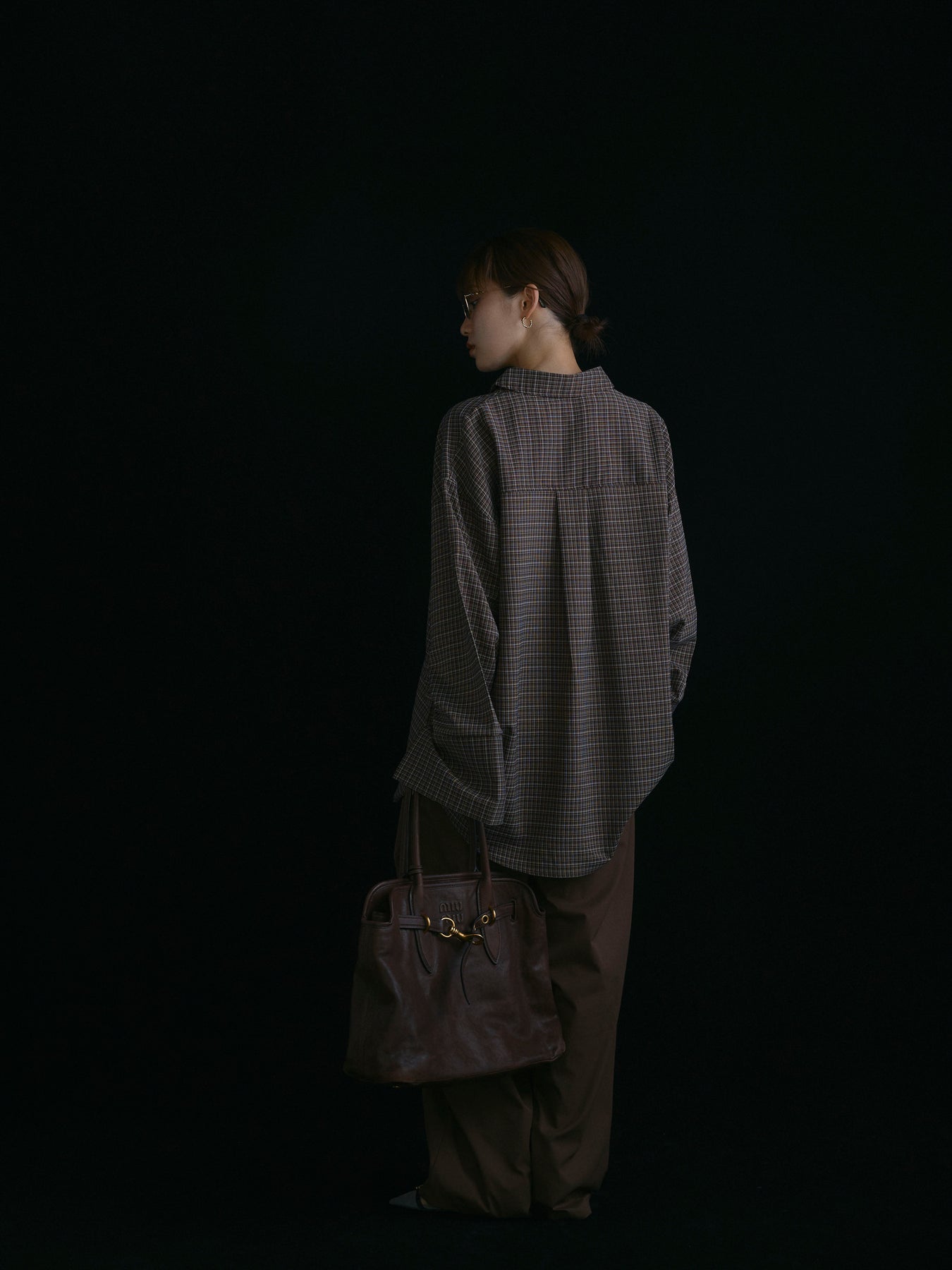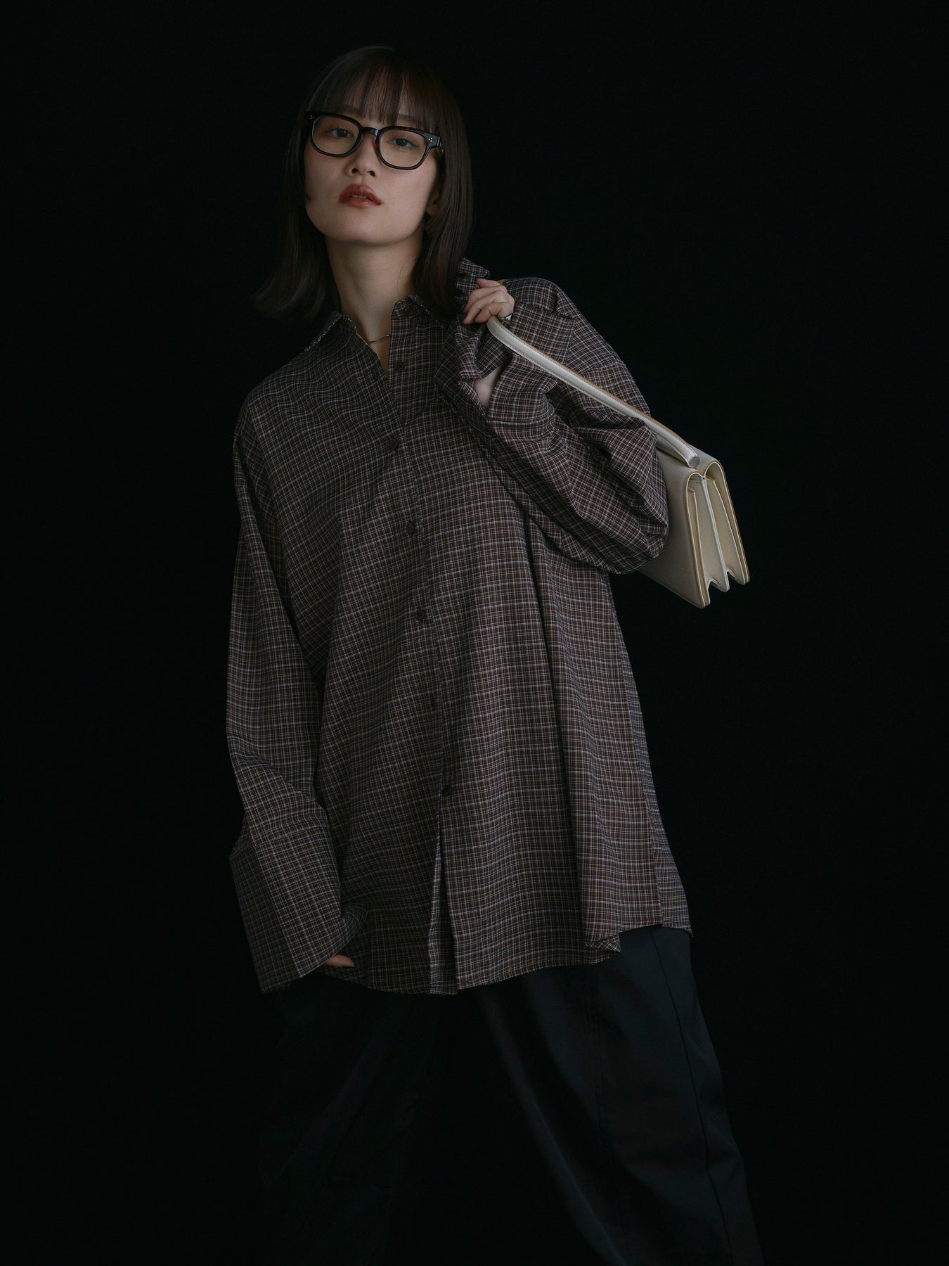 【Allure】[SET]チェックBIGカフスオーバーシャツ+タフタワイドカーブパンツ(2set)
