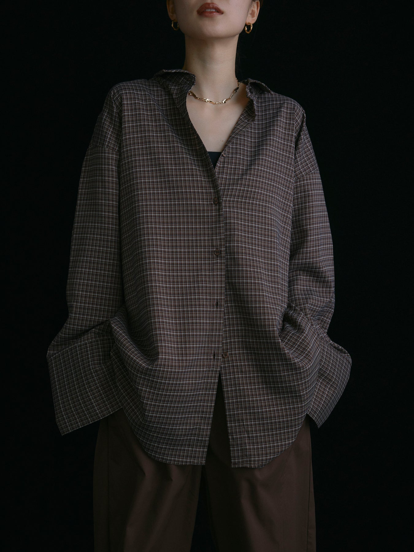 柔らかなオンブレチェック柄が目を惹くゆったりとしたオーバーシャツ。ボリューム袖とドロップショルダーでラフさを演出しつつ、程よい丈感がバランスの取れた着こなしに。羽織としても活躍し、シーズンを問わず着回せる万能アイテムです。