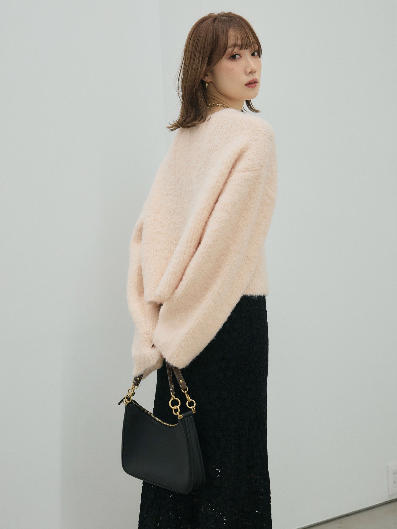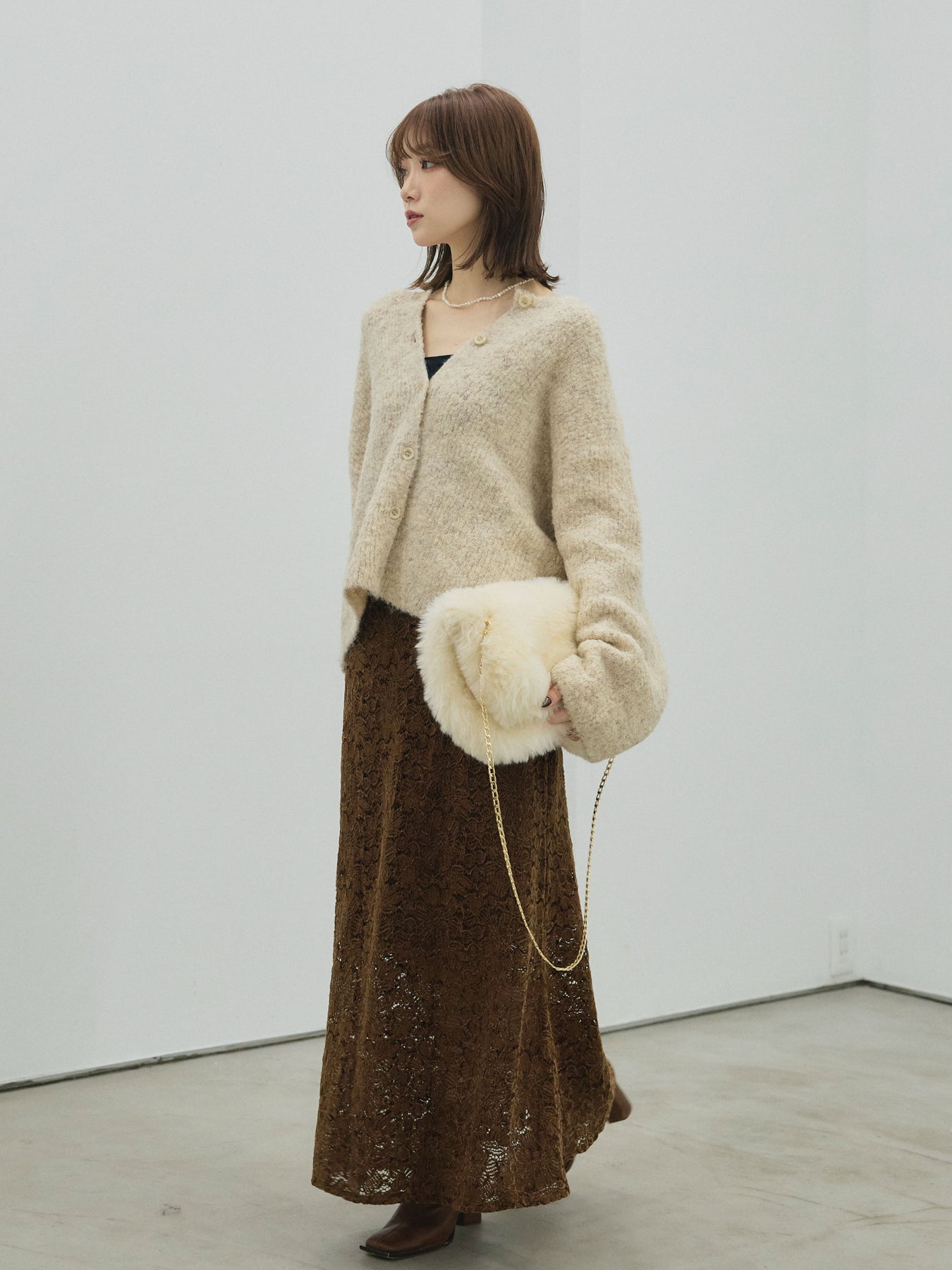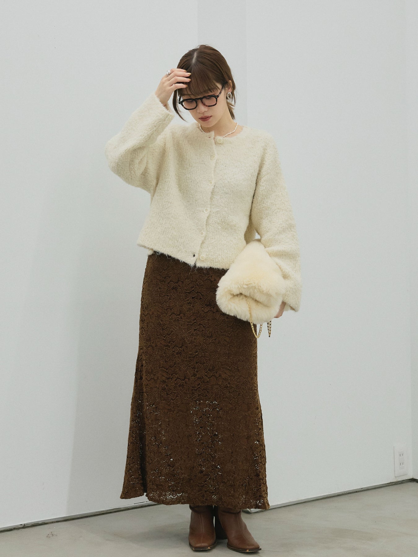 【Allure】[SET]ブークレニットカーディガン+起毛レースストレッチナロースカート(2set)