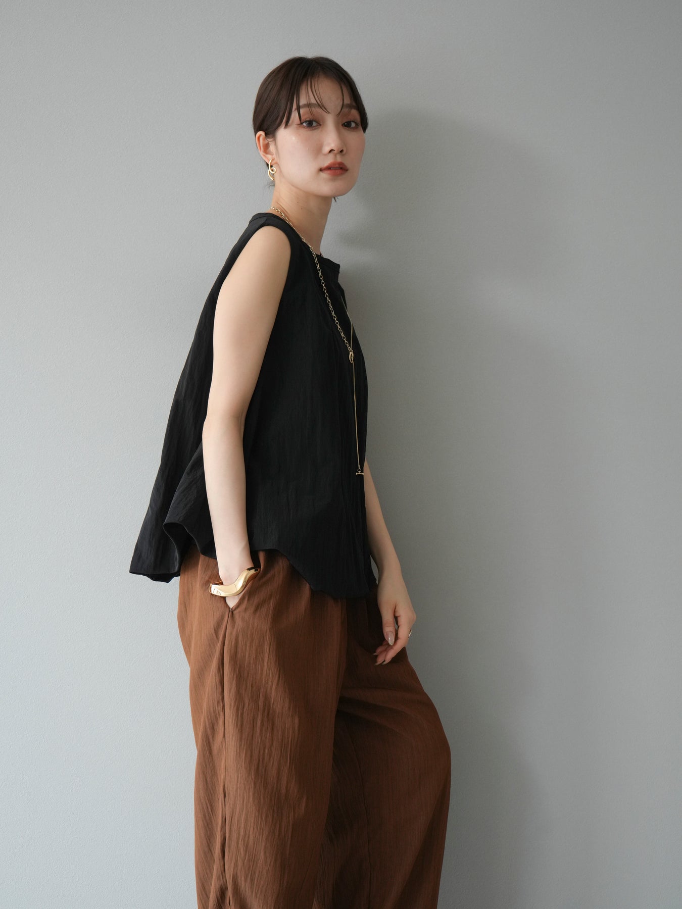 這款水洗塔夫綢燈籠袖襯衫採用結實的塔夫綢布料製成,並經過水洗處理,呈現出自然的立體感。圓潤的輪廓柔和地展開,展現出女性柔美的氣質。簡潔而醒目的設計,使其成為百搭單品。後背採用水滴形開口設計,方便穿脫。它可與牛仔褲、休閒褲和裙子完美搭配,從休閒裝扮到優雅裝扮,各種場合都能輕鬆駕馭。 ※除下裝、吊帶背心(內衣)以外的商品均不含內衣。