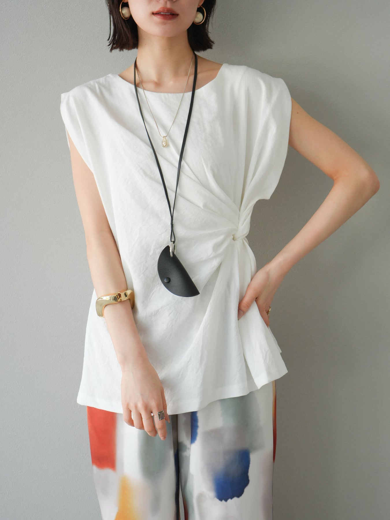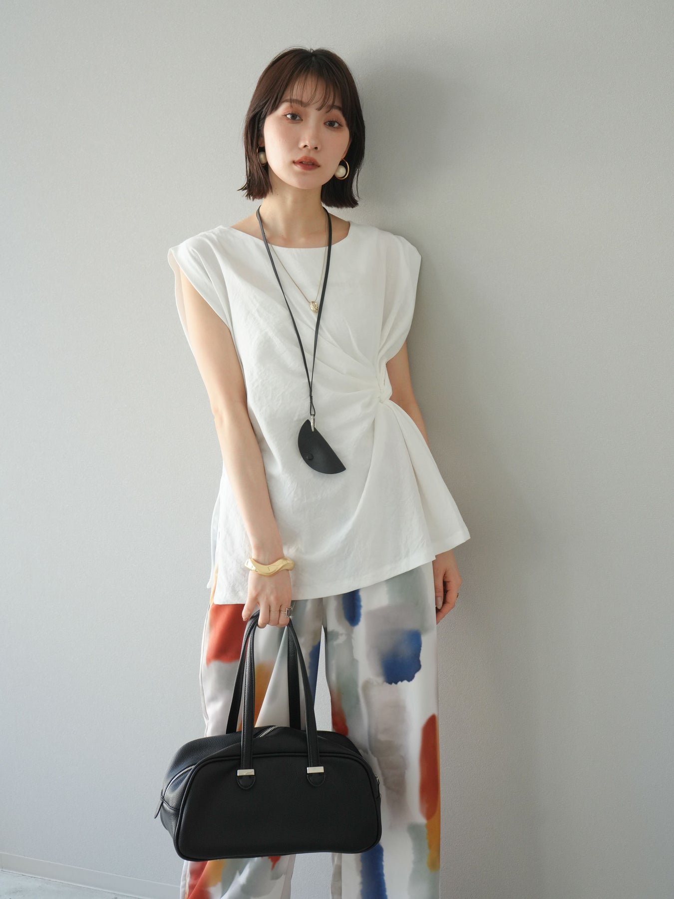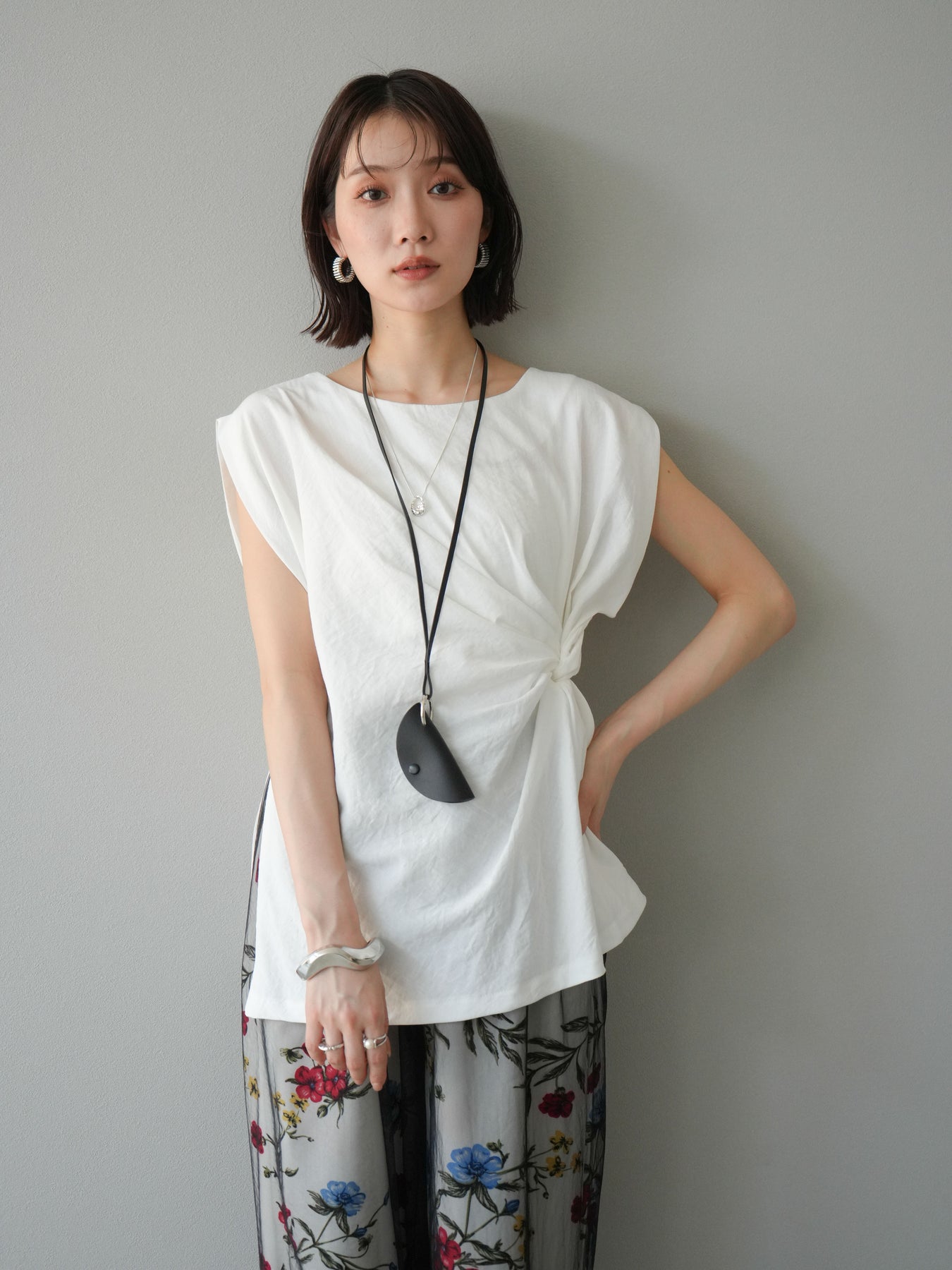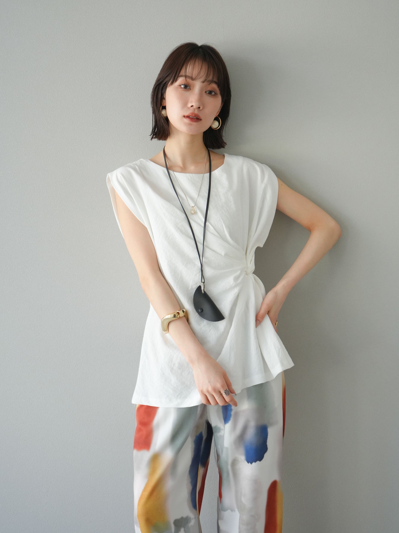 腰部飾有扭紋設計的側扭法式上衣。立體細節設計,簡約而不失優雅。法式袖恰到好處地遮蓋肩部,使上臂顯得乾淨俐落。柔軟的布料穿著舒適,非常適合日常穿著。百搭單品,無論搭配褲裝或裙裝,無論塞進褲腰或露出褲腰,都能保持均衡的穿著效果。 *除下裝和吊帶背心(內衣)外,其他商品均不含內衣。