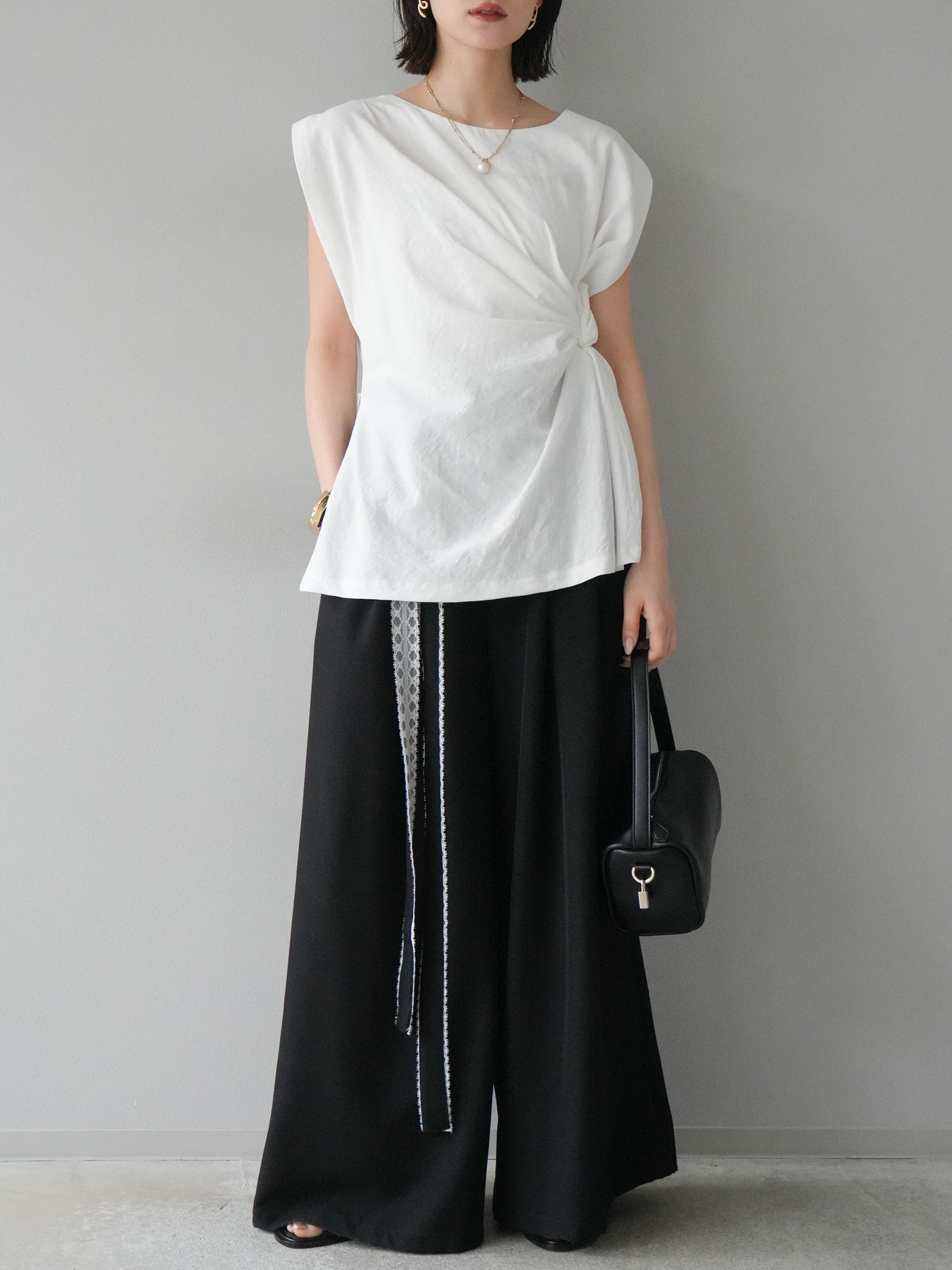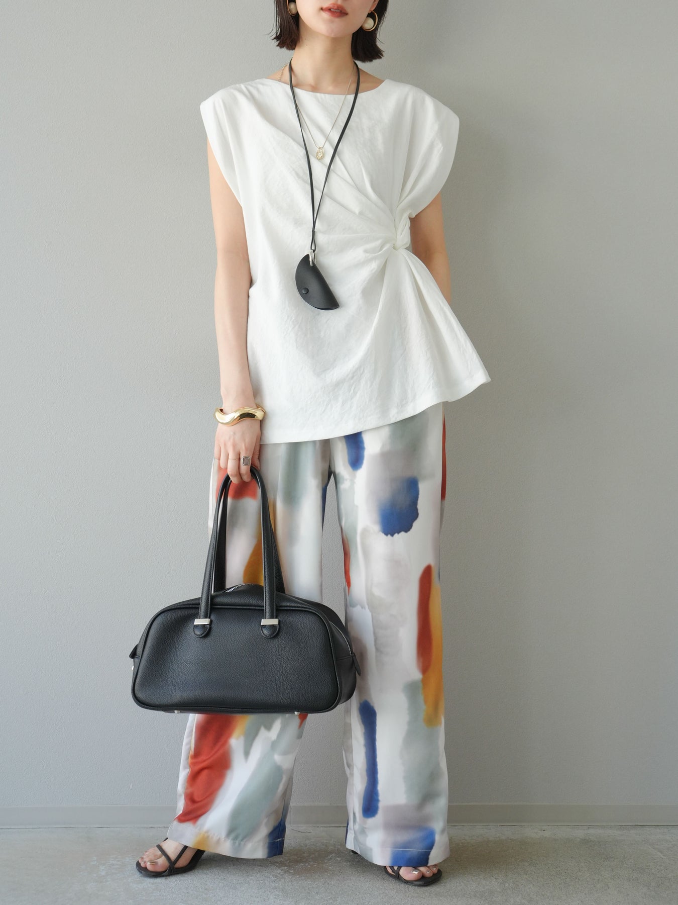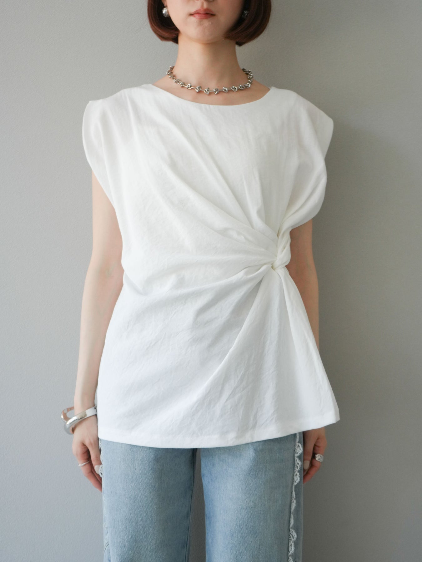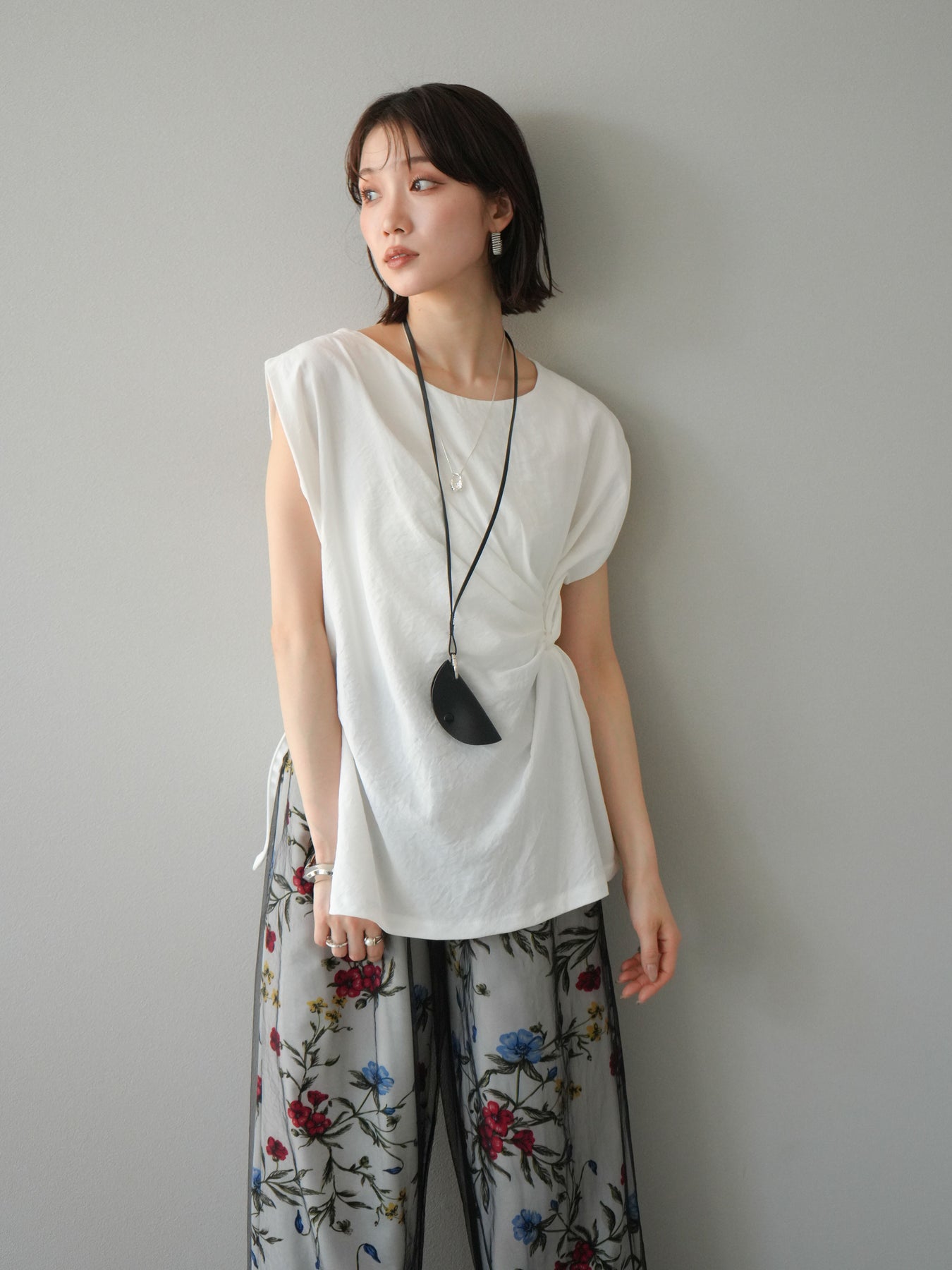 腰部飾有扭紋設計的側扭法式上衣。立體細節設計,簡約而不失優雅。法式袖恰到好處地遮蓋肩部,使上臂顯得乾淨俐落。柔軟的布料穿著舒適,非常適合日常穿著。百搭單品,無論搭配褲裝或裙裝,無論塞進褲腰或露出褲腰,都能保持均衡的穿著效果。 *除下裝和吊帶背心(內衣)外,其他商品均不含內衣。