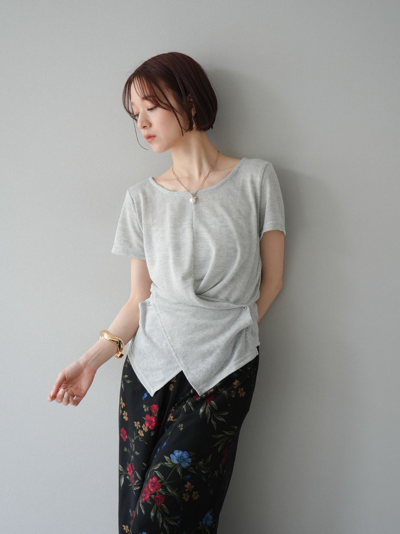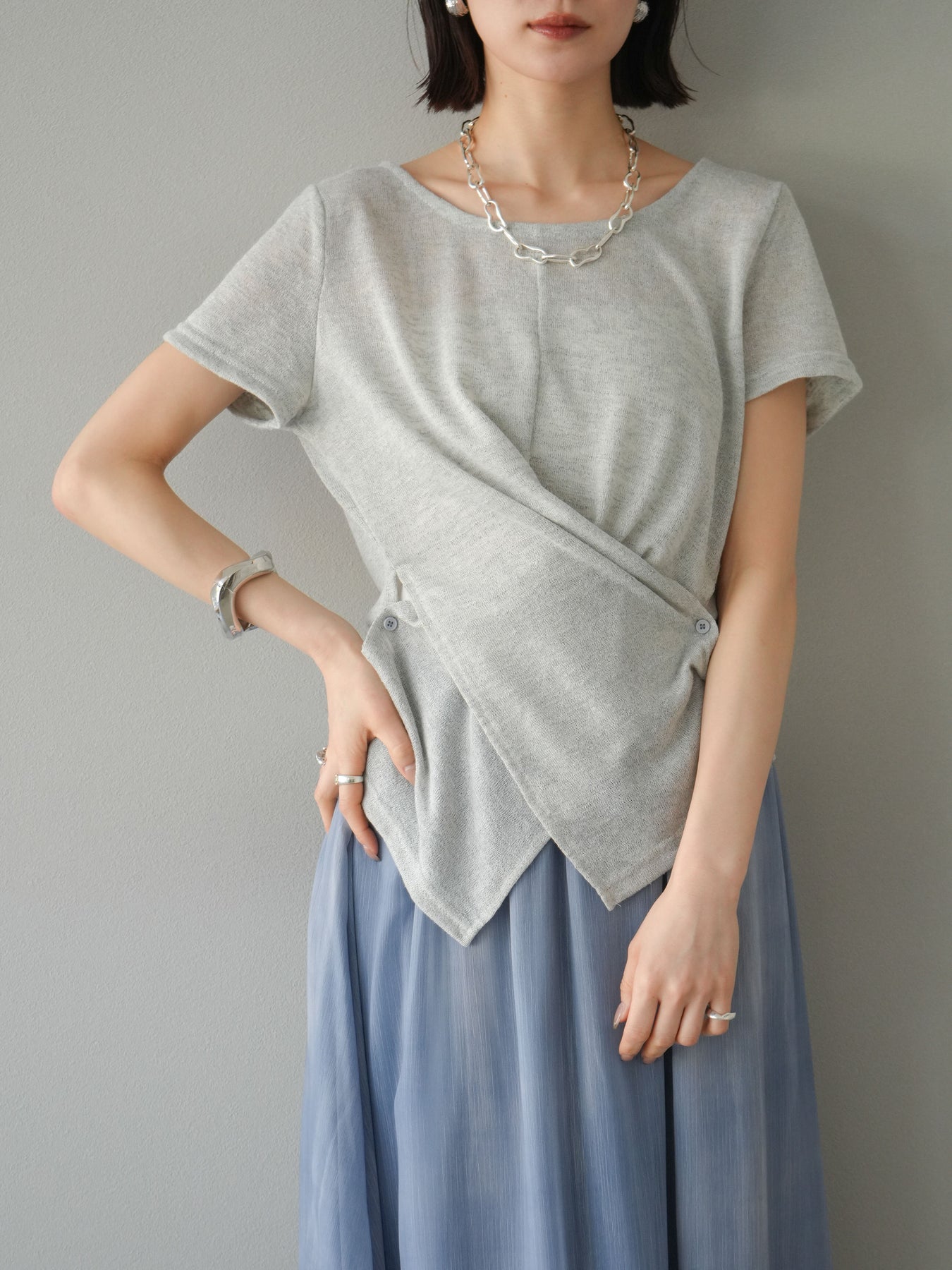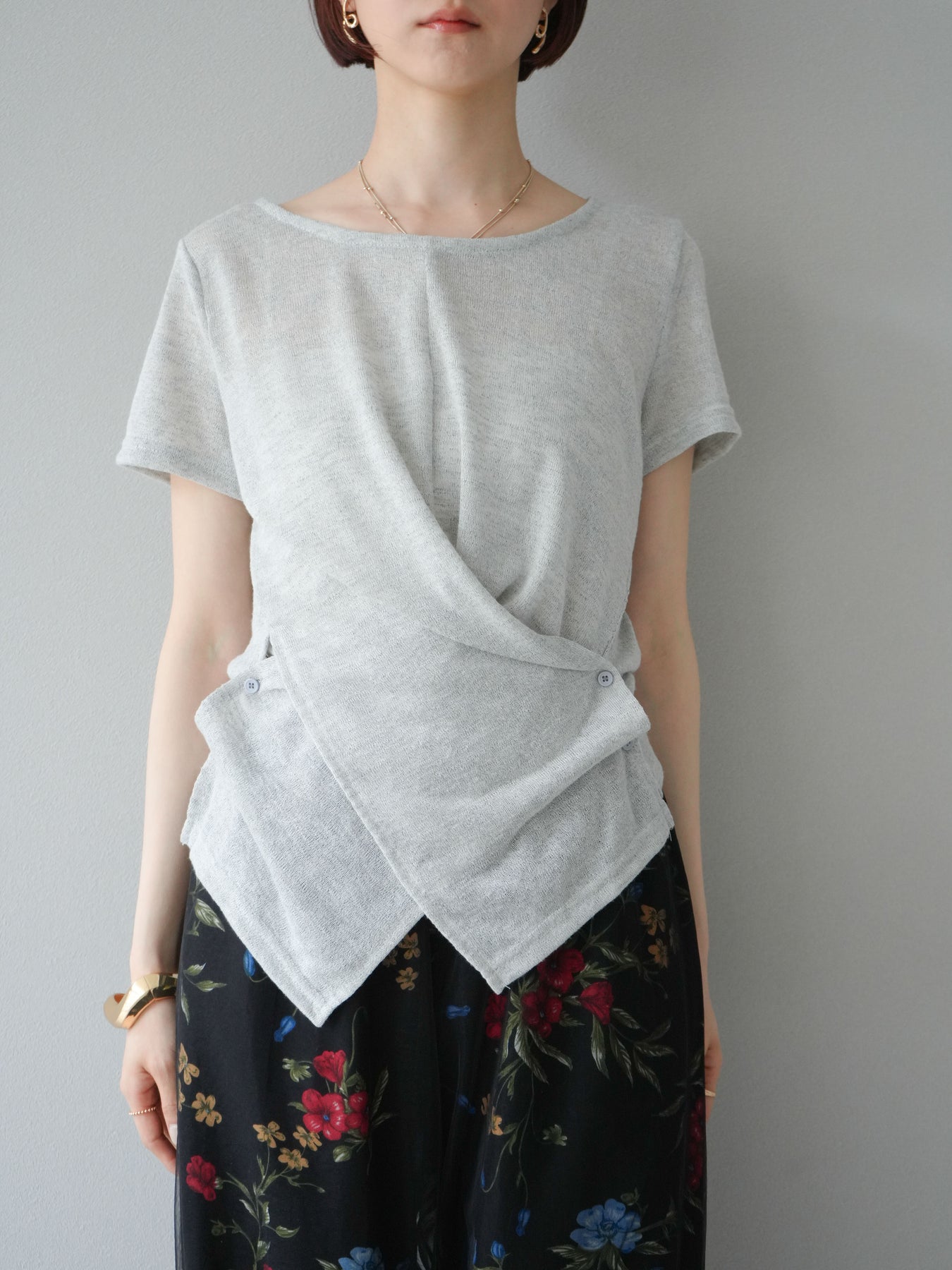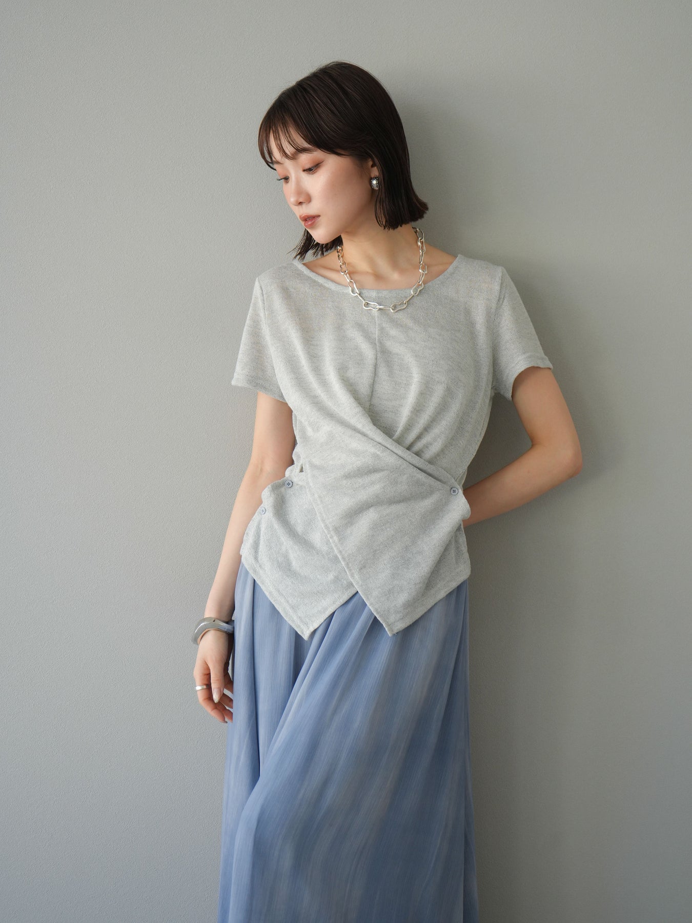 這款針織套頭衫採用卡其設計,輕盈的透明度令人驚艷。採用柔軟富有彈性的針織布料,穿著舒適,散發出女性慵懶的氣息。前襟的垂墜自然包裹腰線,營造出幹練而不失優雅的氣質。它易於搭配褲裝或半身裙,也可作為內搭。這是一款優雅的休閒單品,非常適合春季和夏季的日常穿著。 ※除下裝、吊帶背心(內衣)以外的商品均不含內衣。