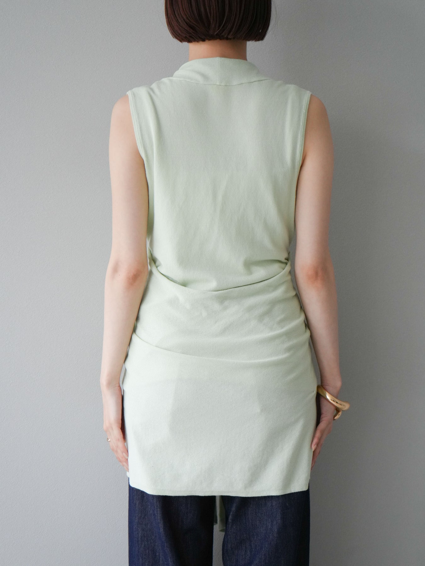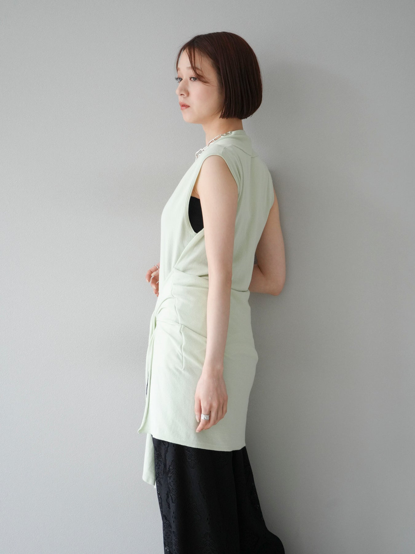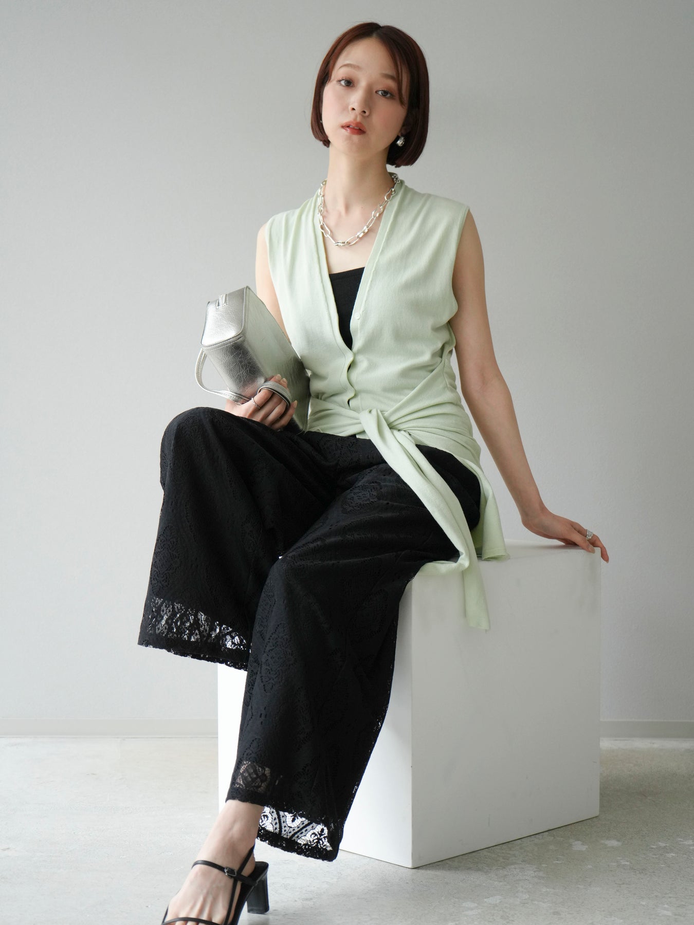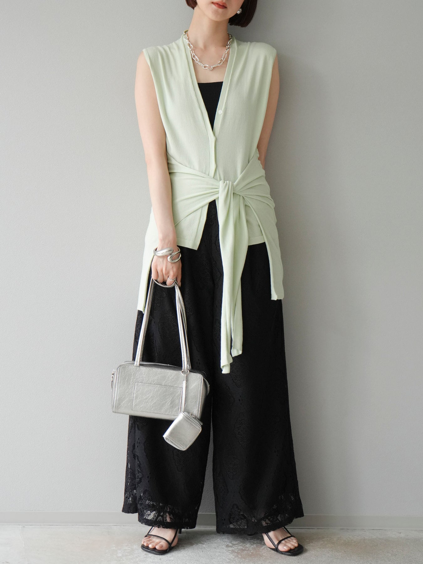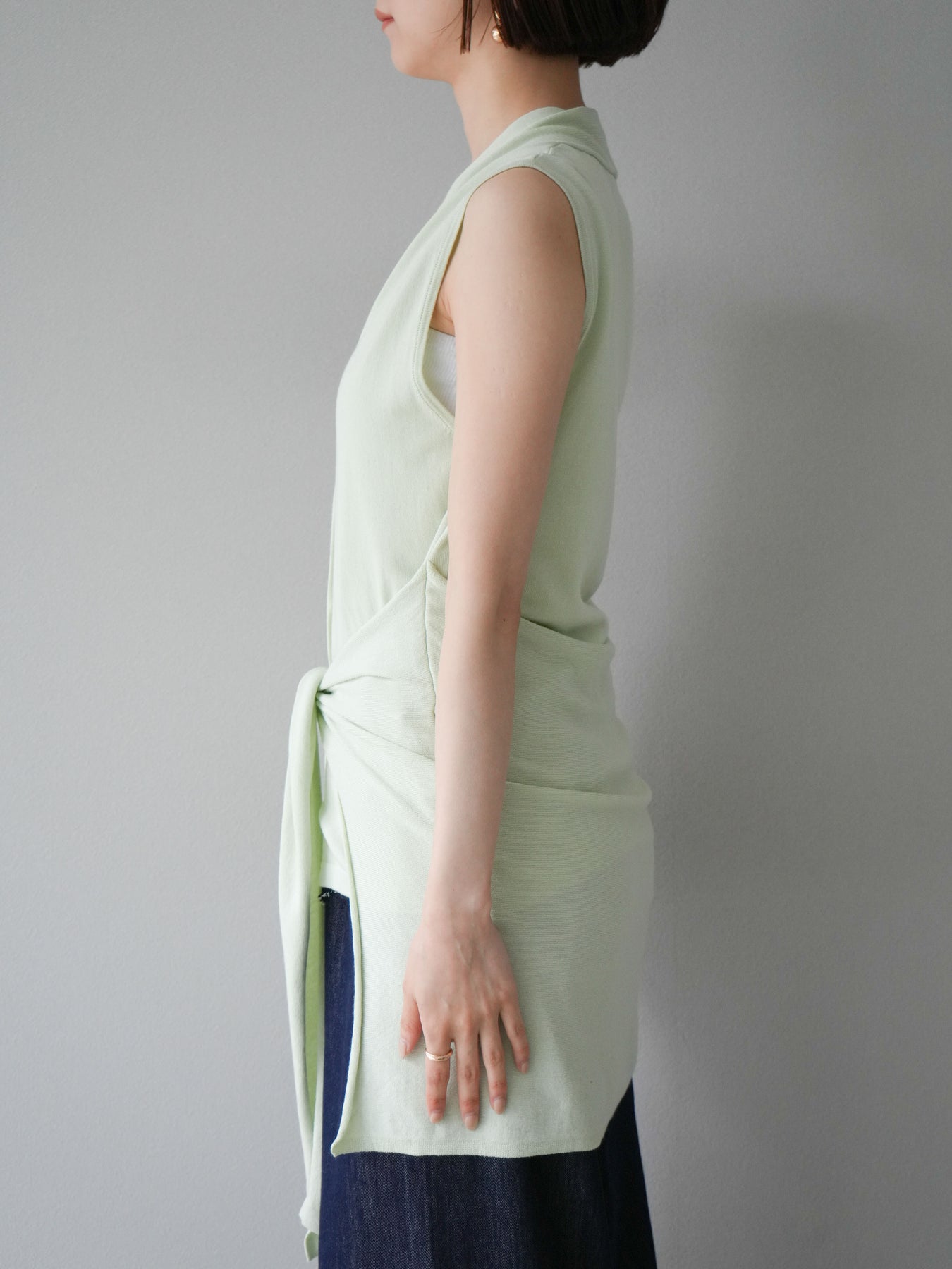 這款無袖針織開襟衫採用令人印象深刻的腰部裹身設計。正面採用簡約的V領開襟衫款式,下擺飾有假袖,獨特的細節設計使其看起來像是裹在腰部一樣。它能為您的造型增添俏皮精緻的感覺,非常適合搭配背心或T卹疊穿。柔軟垂墜的面料使其在春夏季節穿著涼爽舒適。 ※除下裝、吊帶背心(內衣)以外的商品均不含內衣。