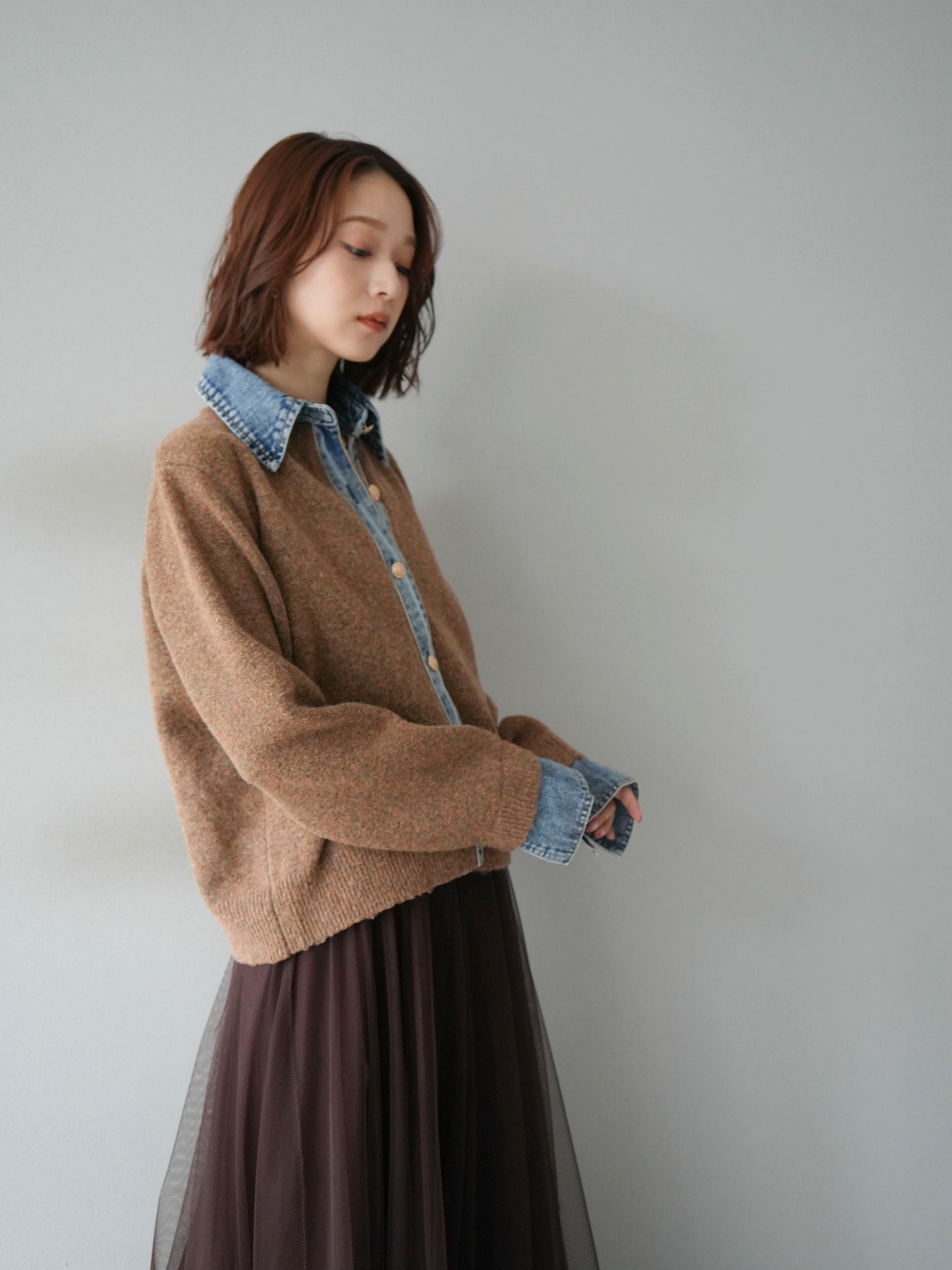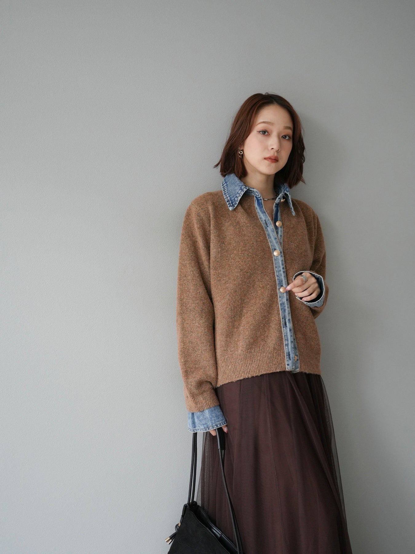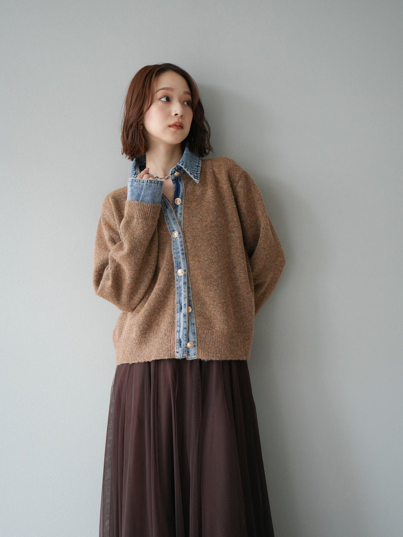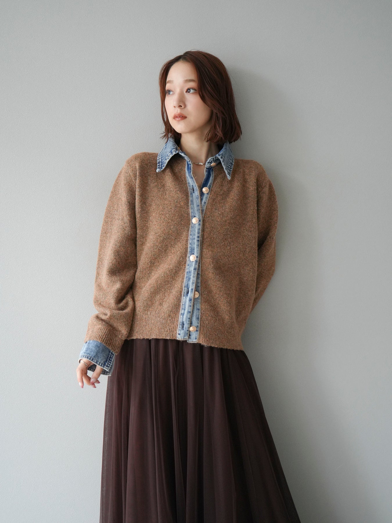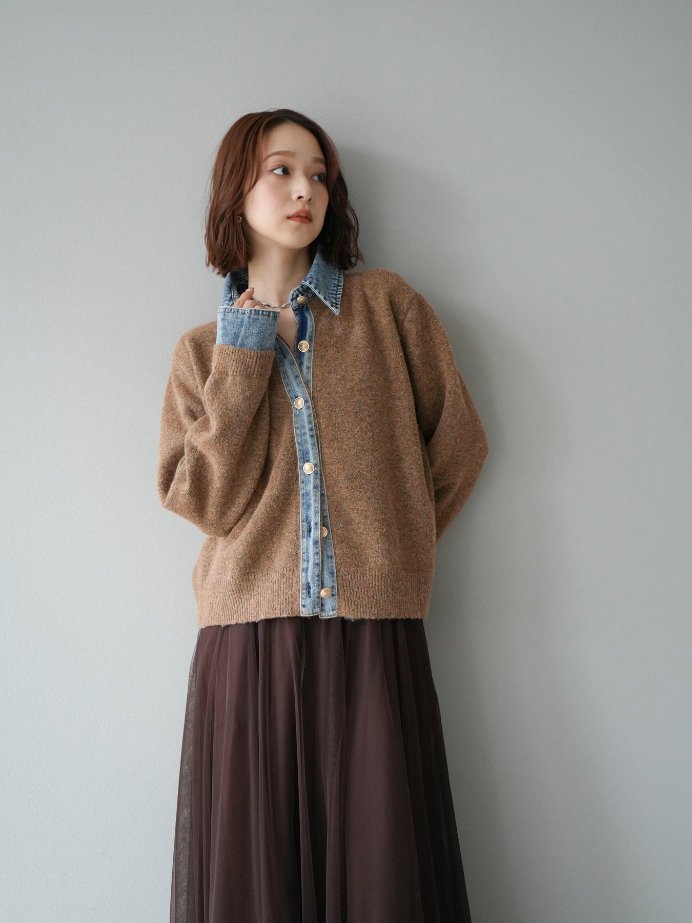 【預購】牛仔領紐扣針織開襟衫/駝色