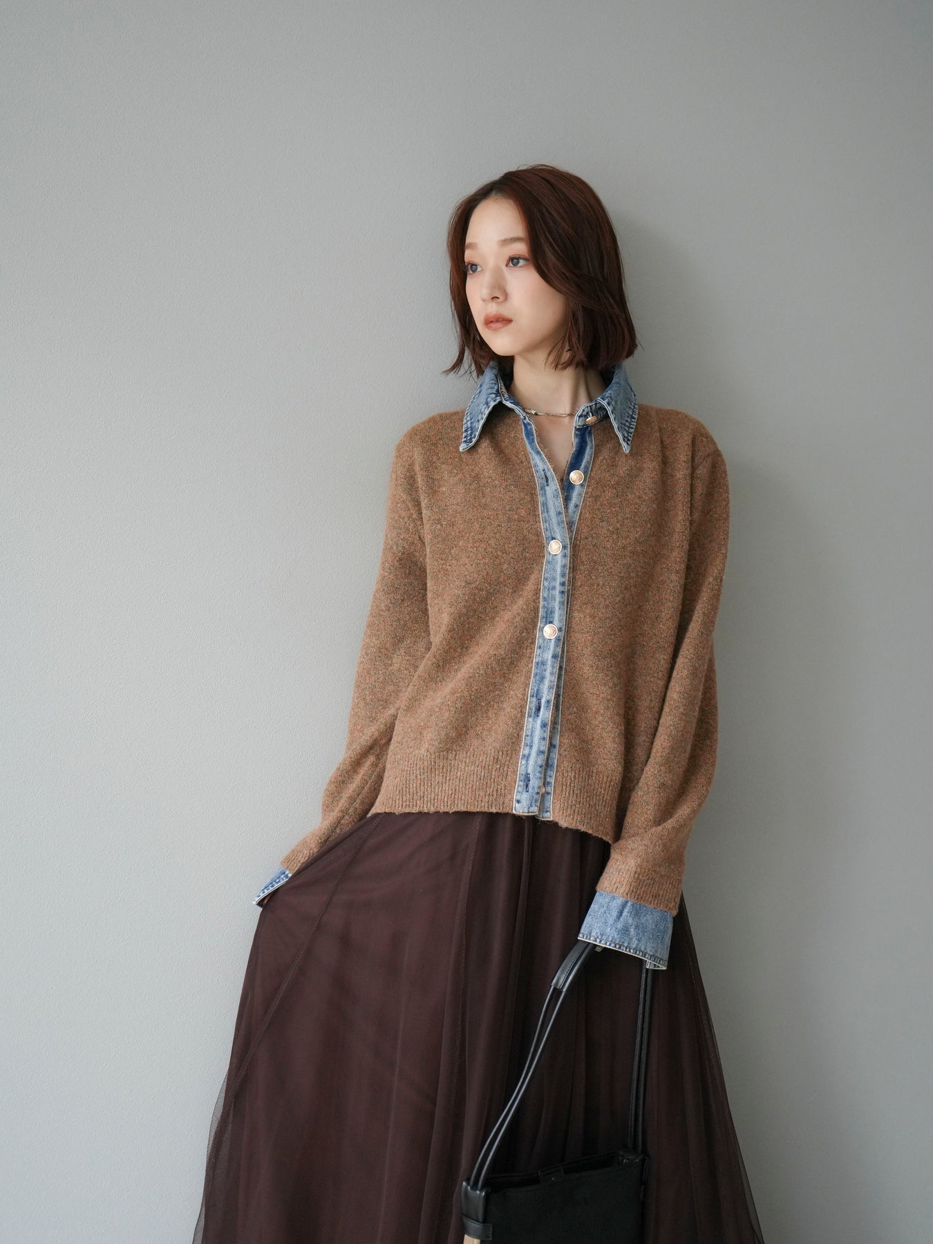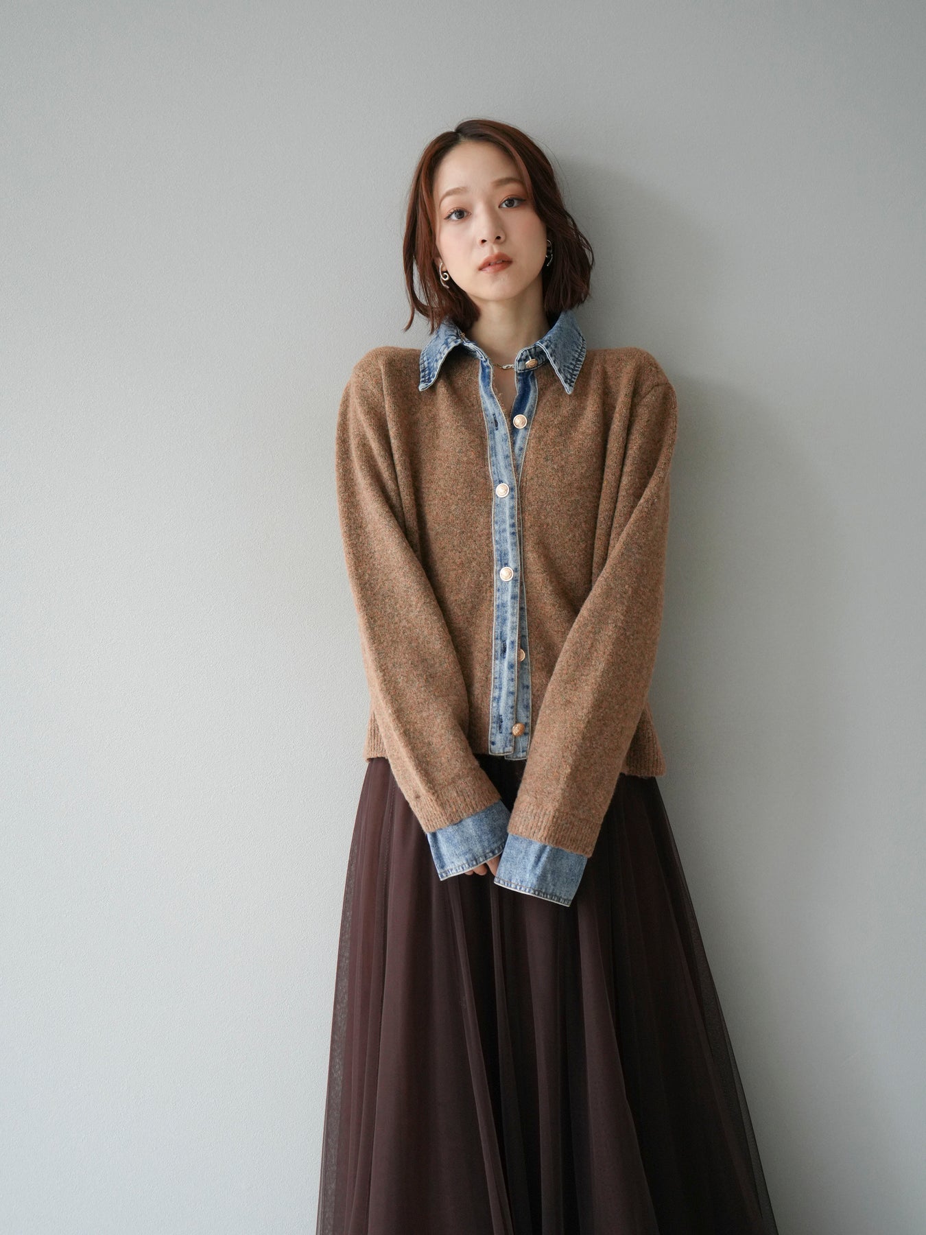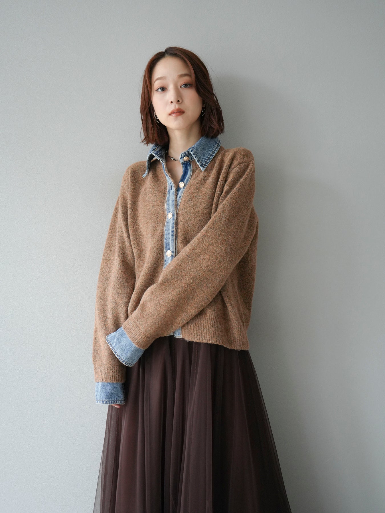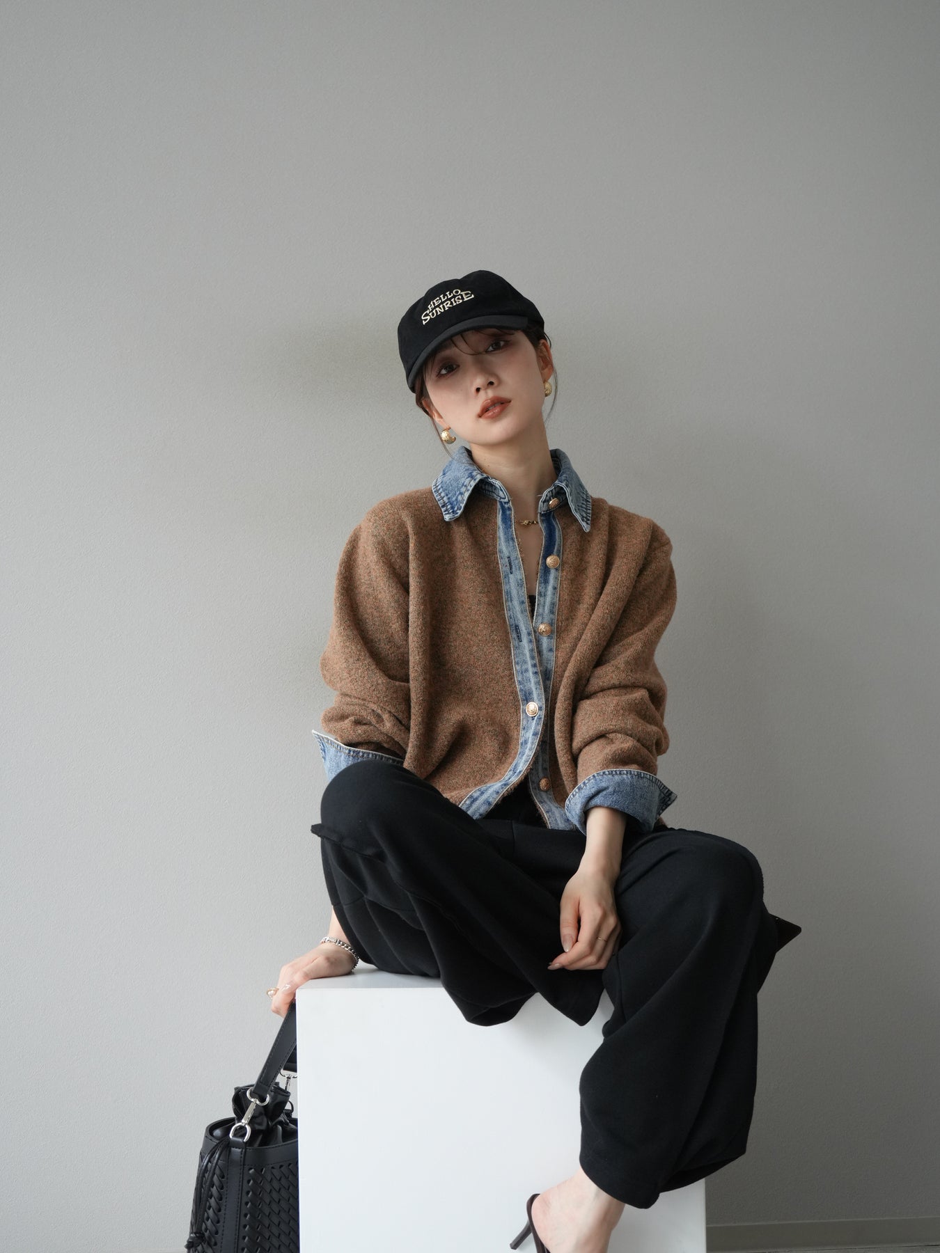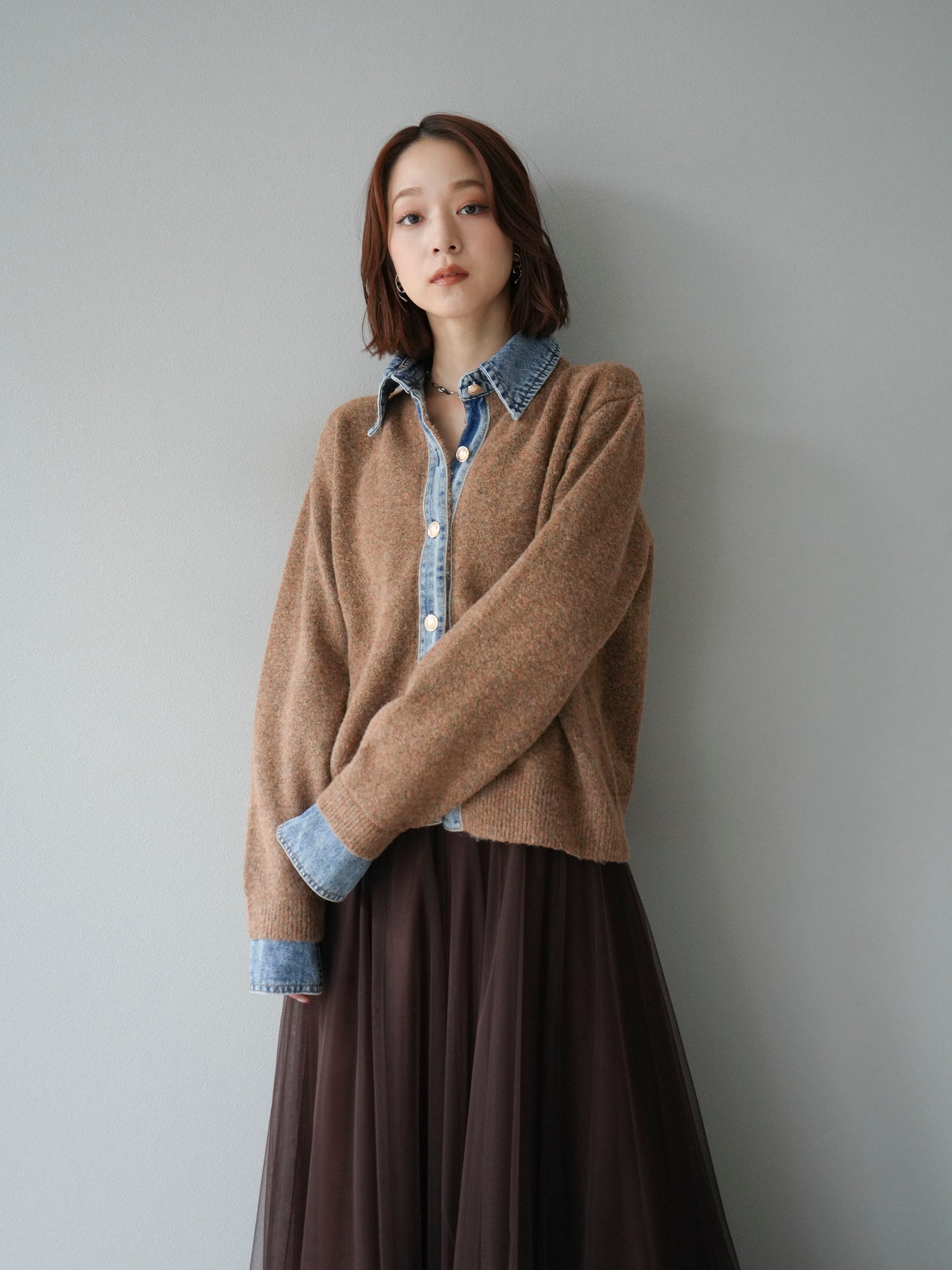 【預購】牛仔領紐扣針織開襟衫/駝色