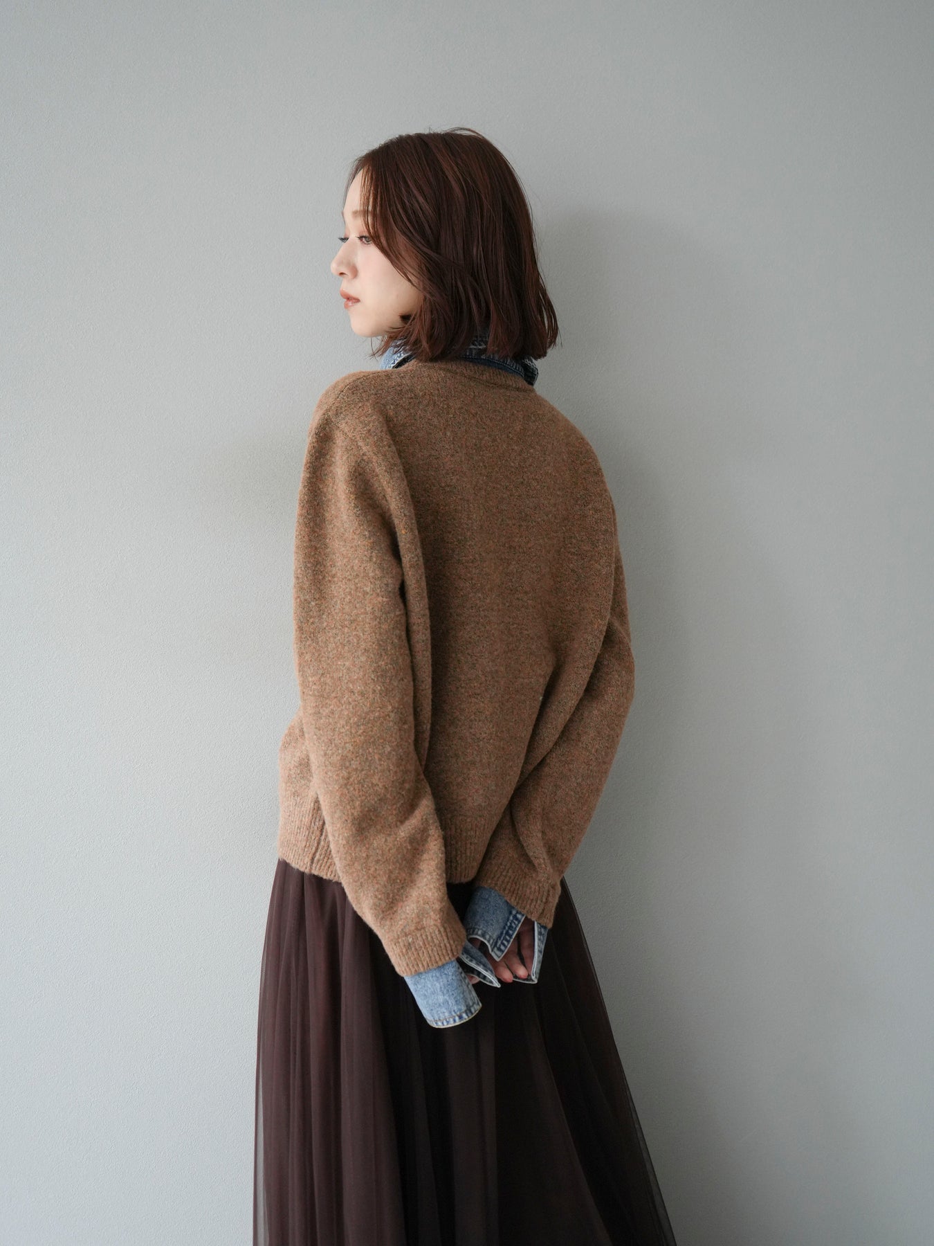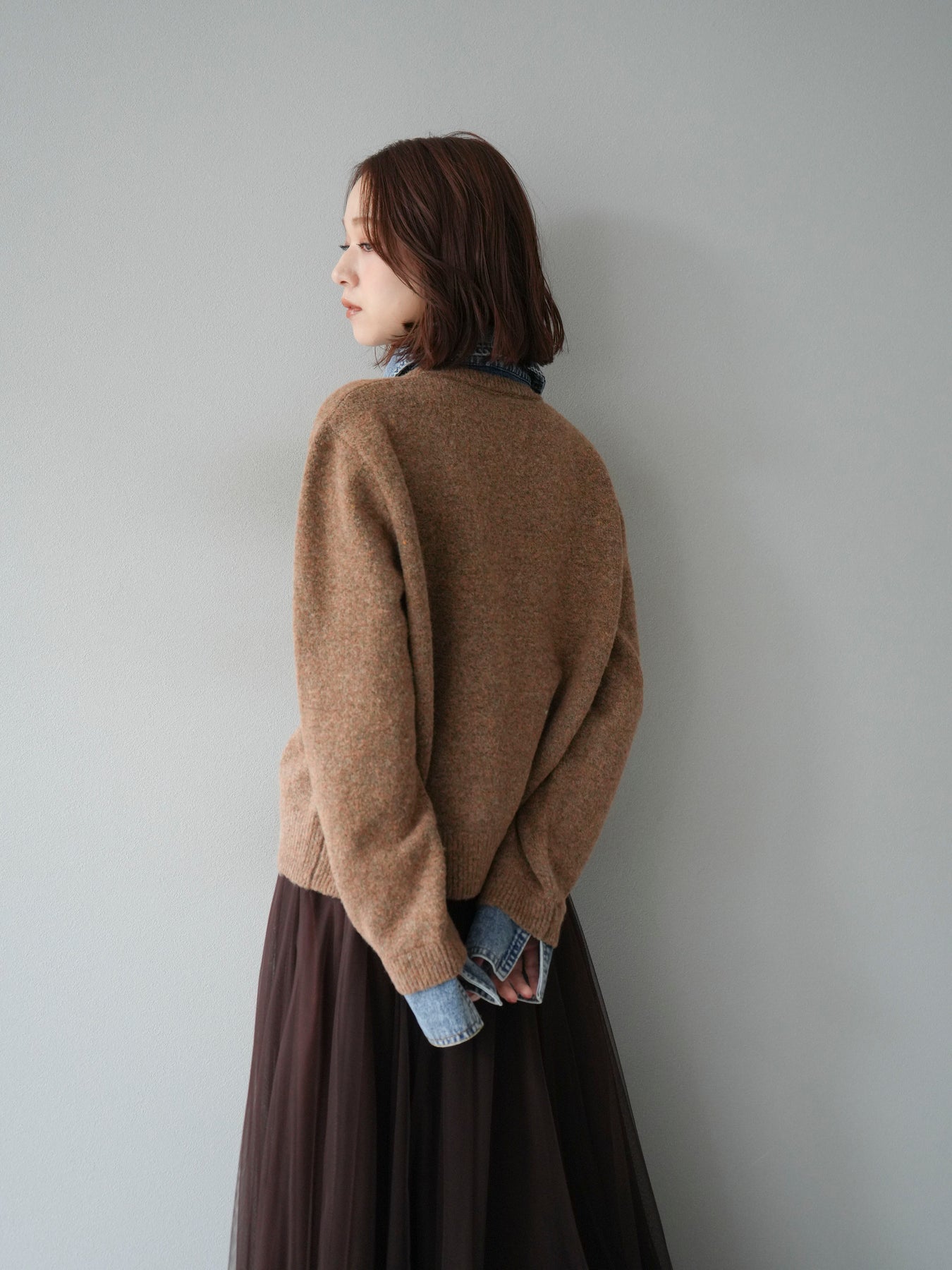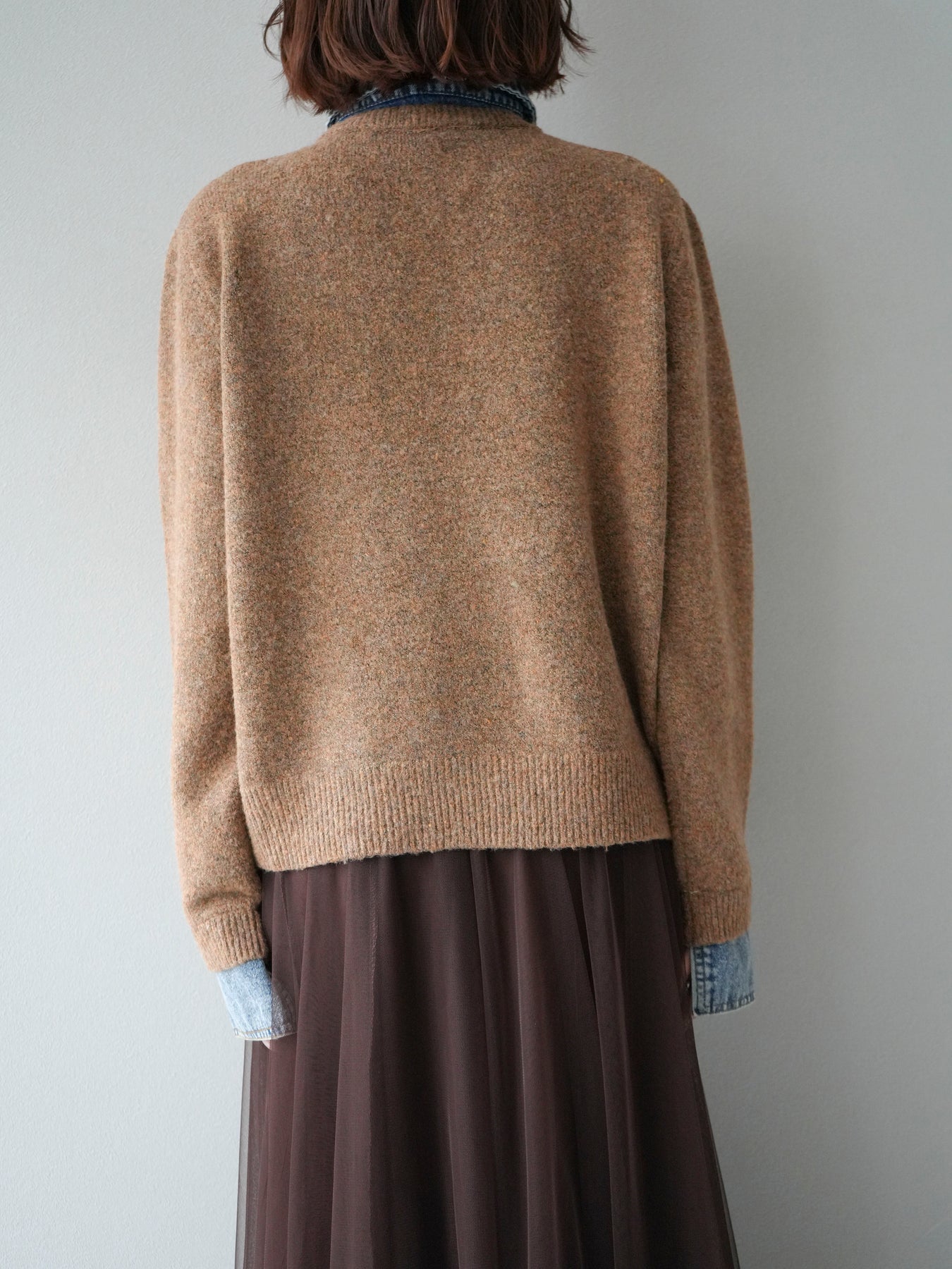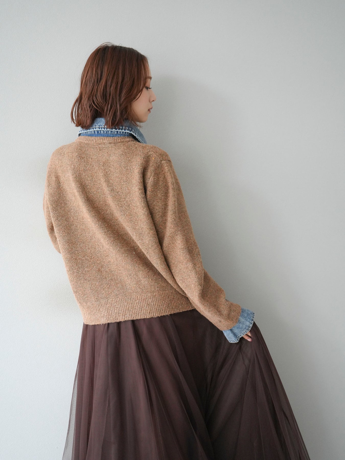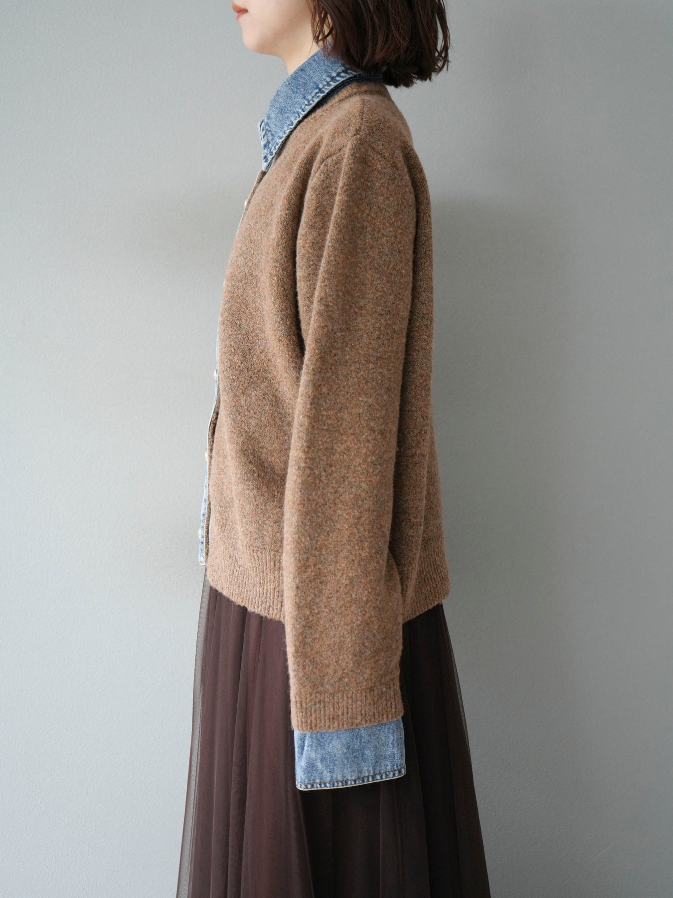 【預購】牛仔領紐扣針織開襟衫/駝色