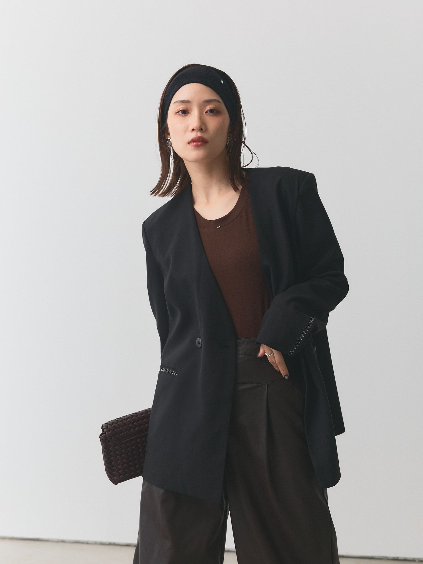 [予約]ノーカラーステッチデザインジャケットに関連する商品を探す↓