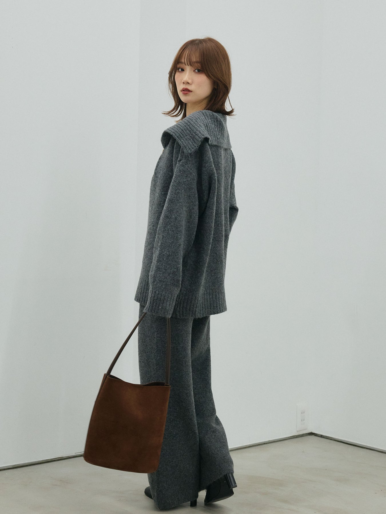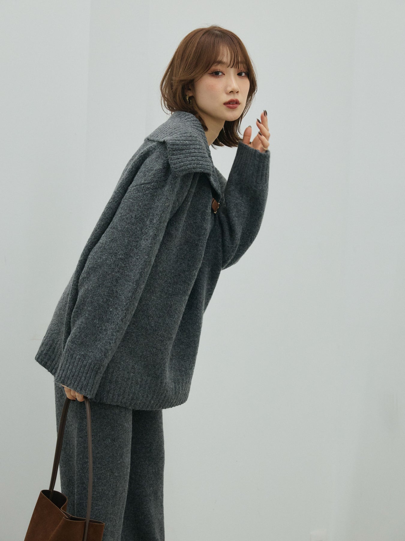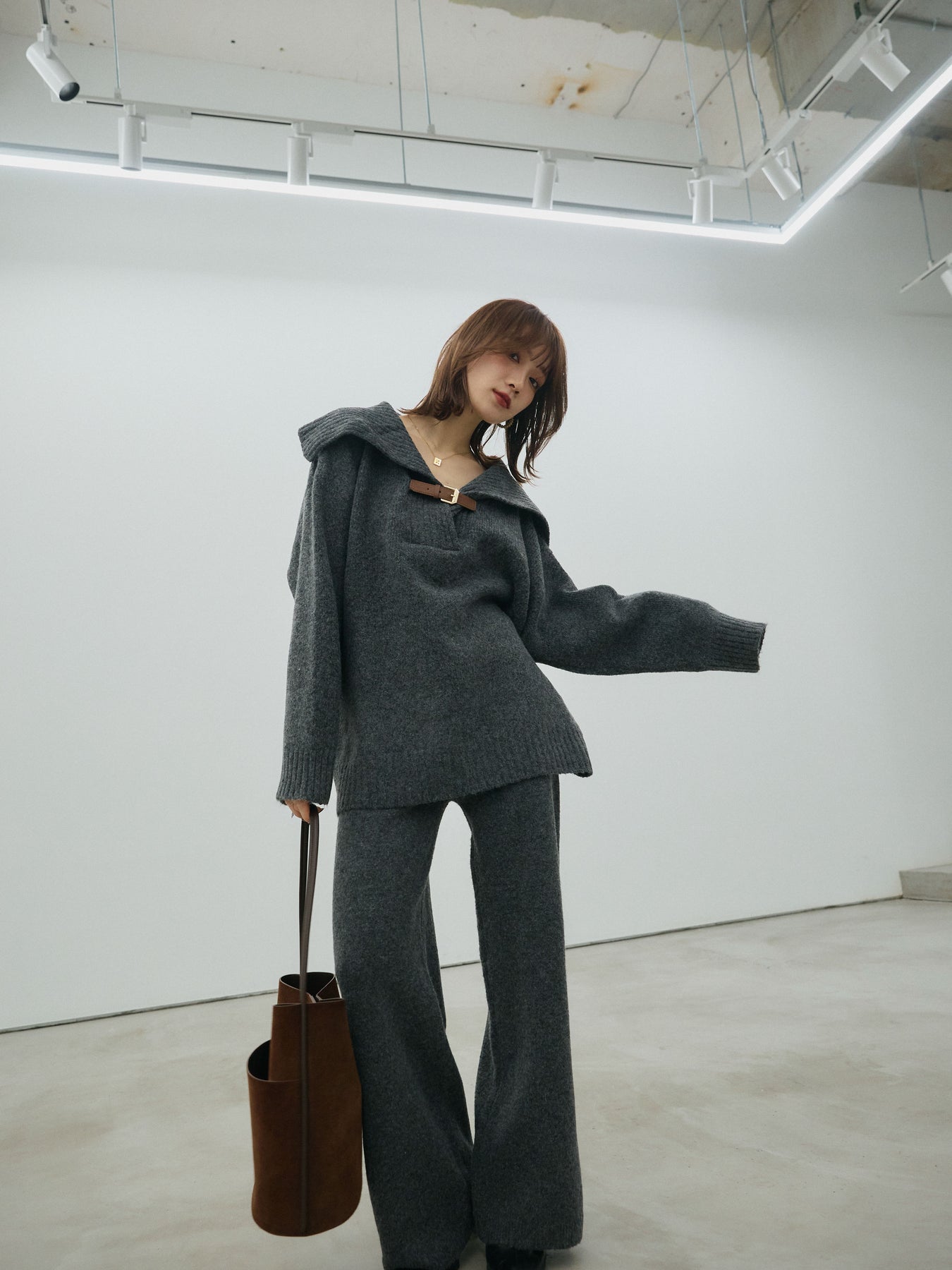 シーズンムード高まる、ベルト付きニットポロとワイドパンツの2点セット。 表情豊かなミックス調ニットで仕上げたセットアップは、リラックス感がありながらも都会的な印象に。トップスは抜け感のあるポロデザインに、レザー調ベルトをアクセントとしてプラス。 ゆったりとしたシルエットが、身体を包み込むような心地よさを叶えてくれます。ボトムスはウエストゴム仕様のストレスフリーな穿き心地で、単品使いでも活躍。 セットで着るだけで簡単にこなれたスタイリングが完成します。