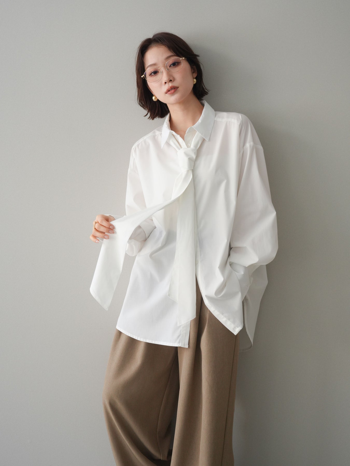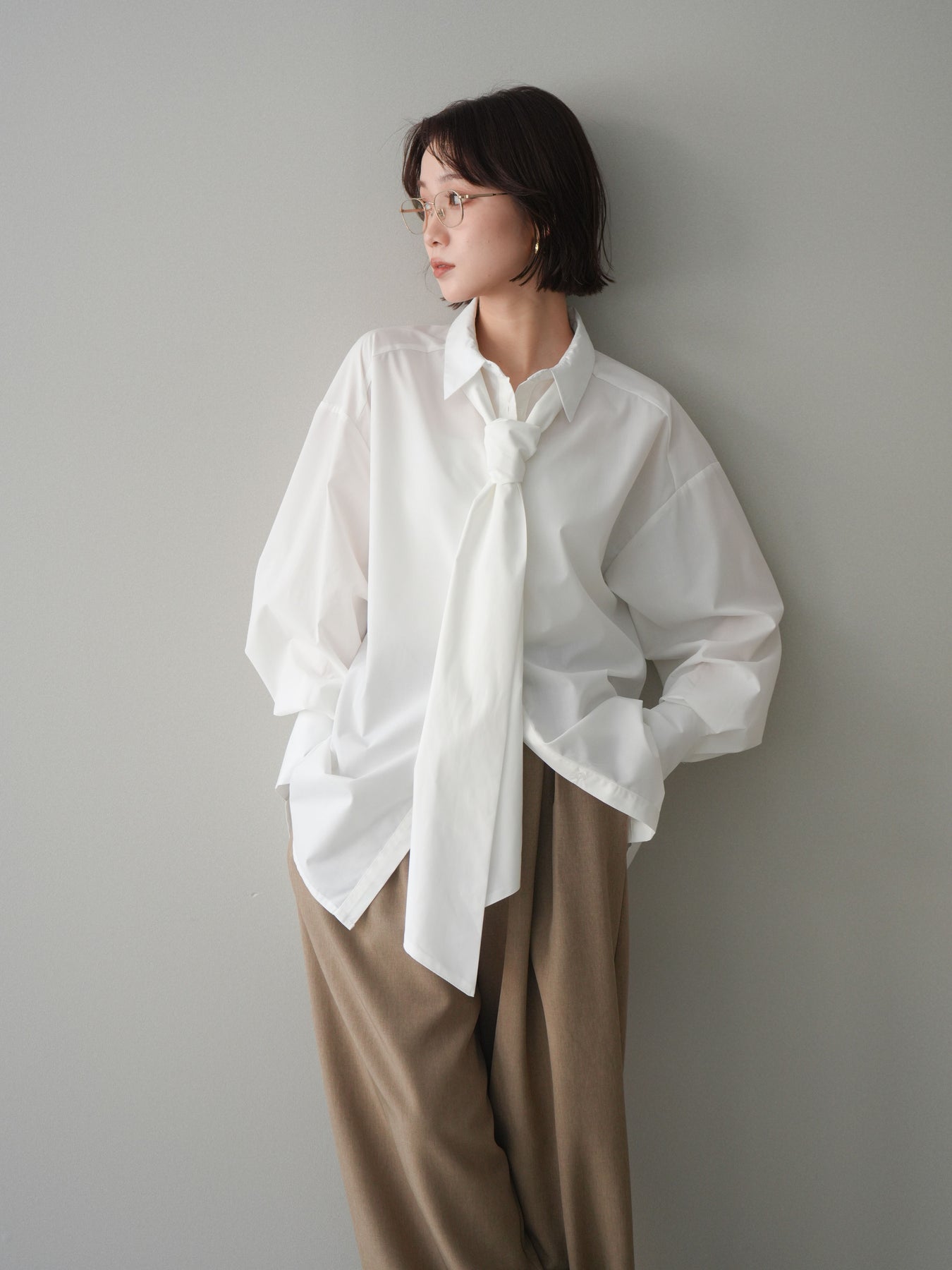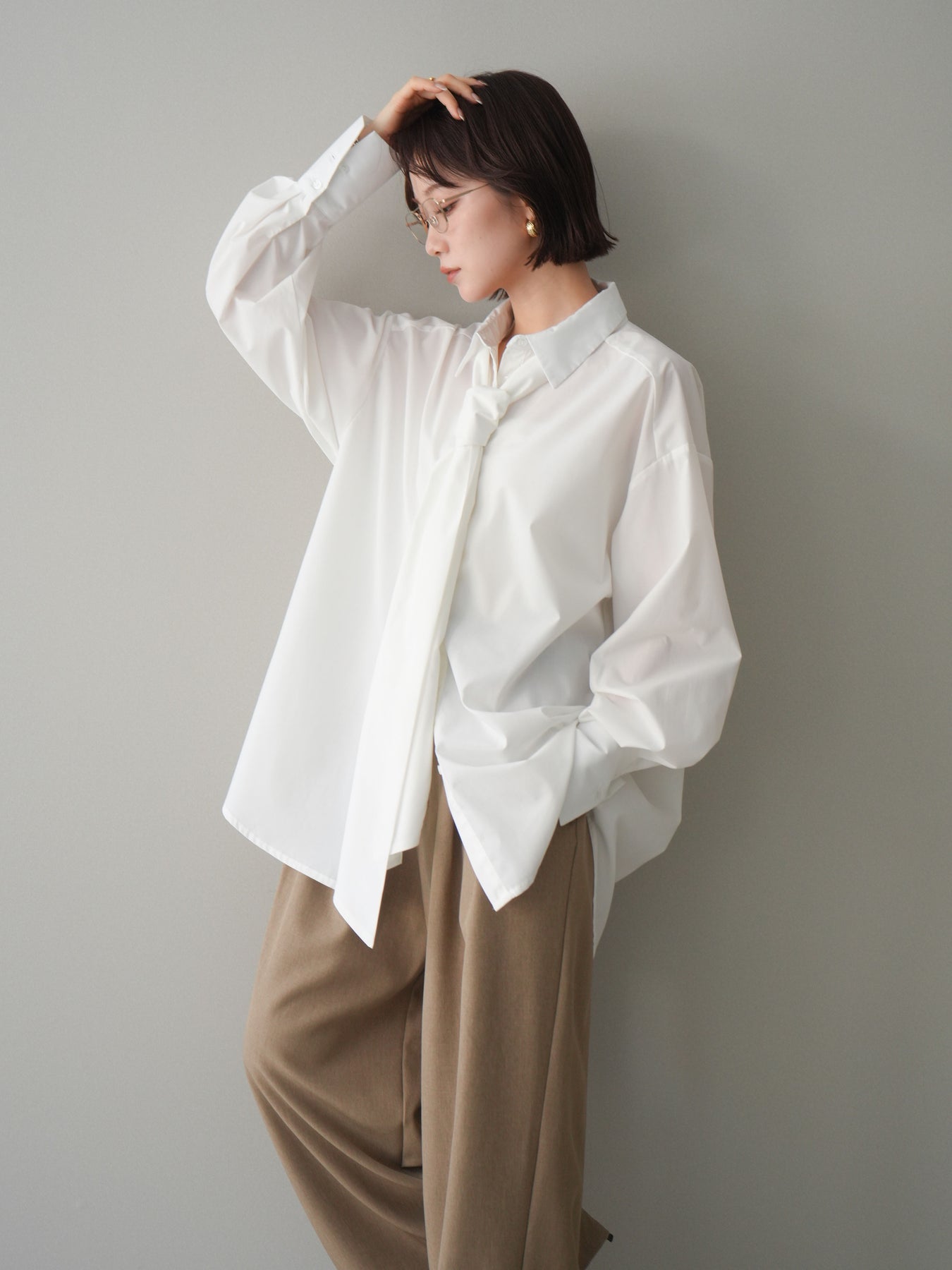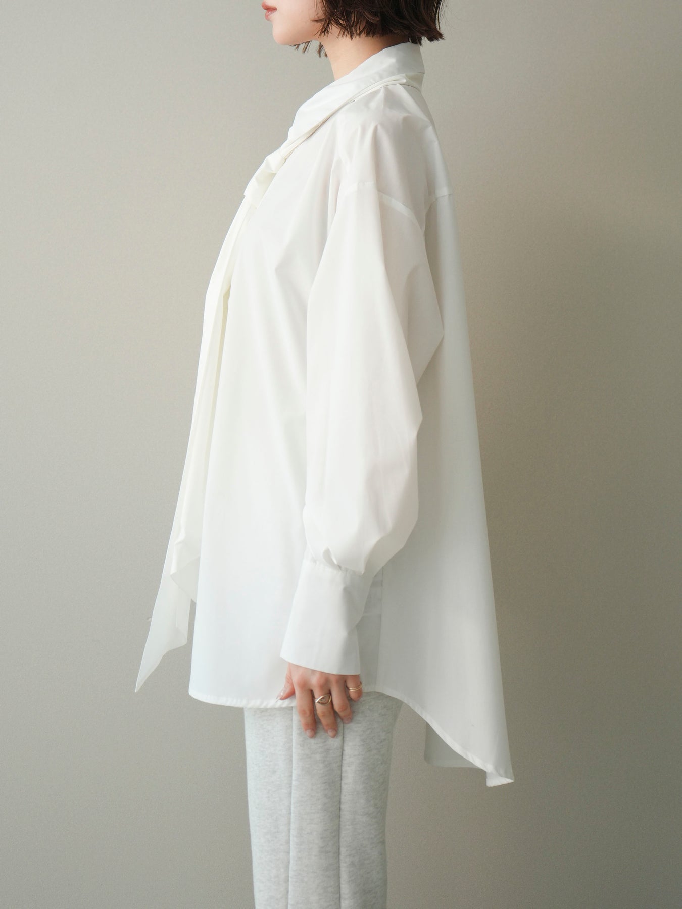 [予約]ボウタイ付オーバーシャツ/white