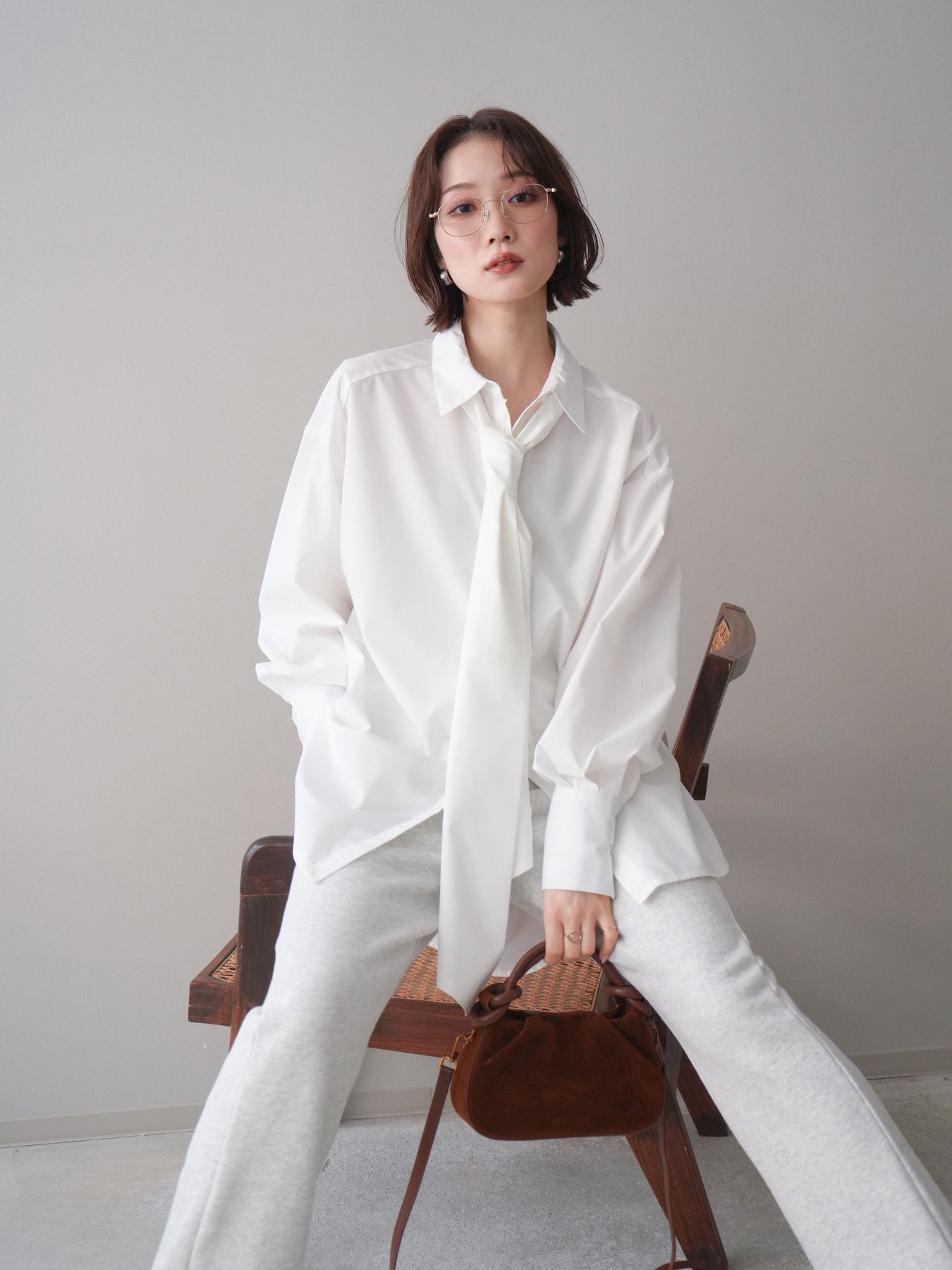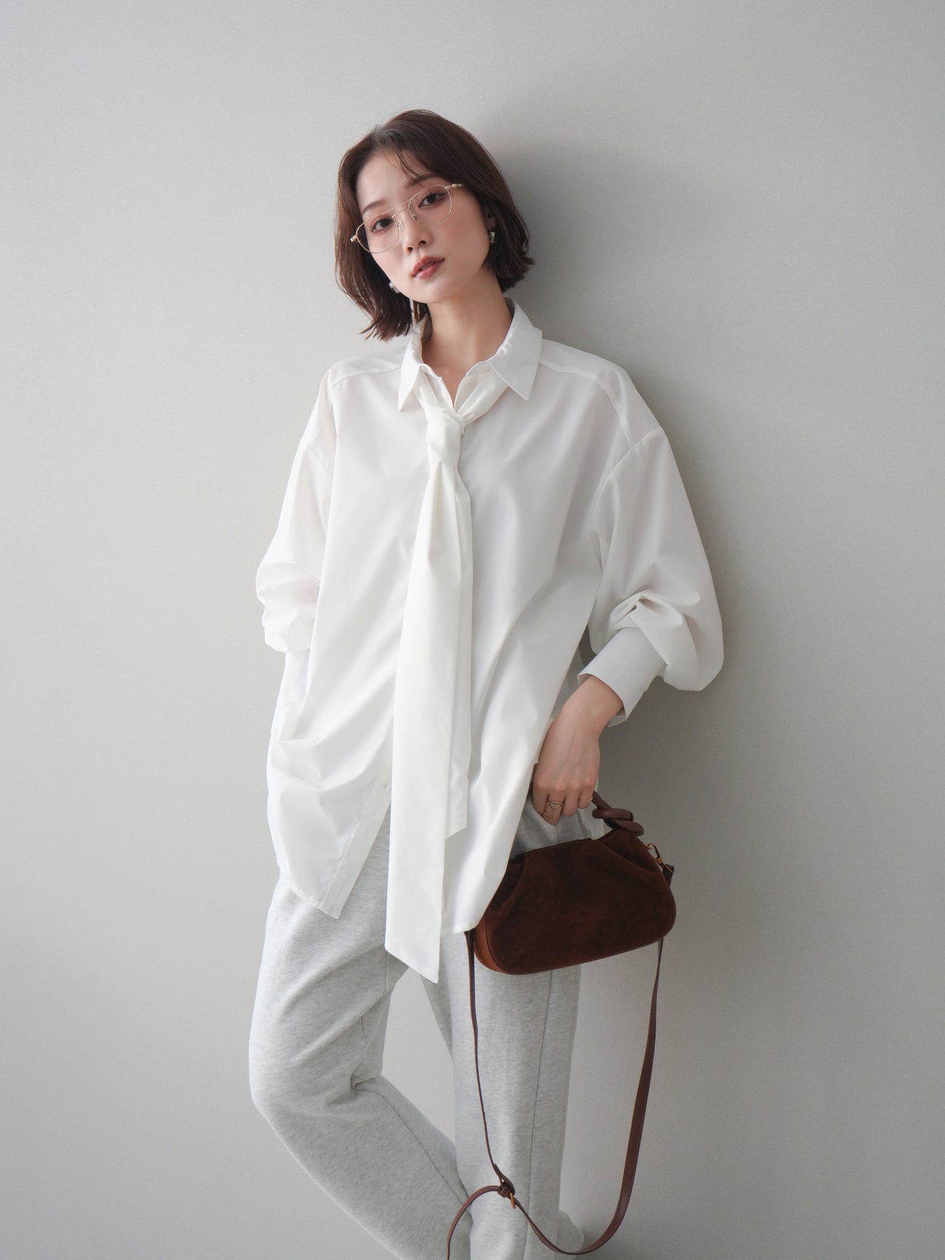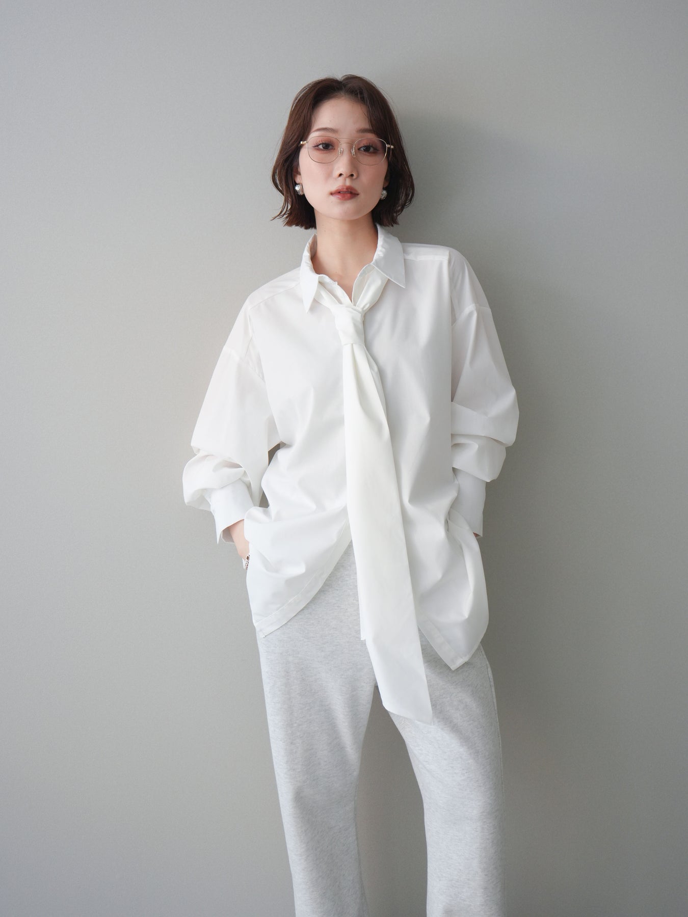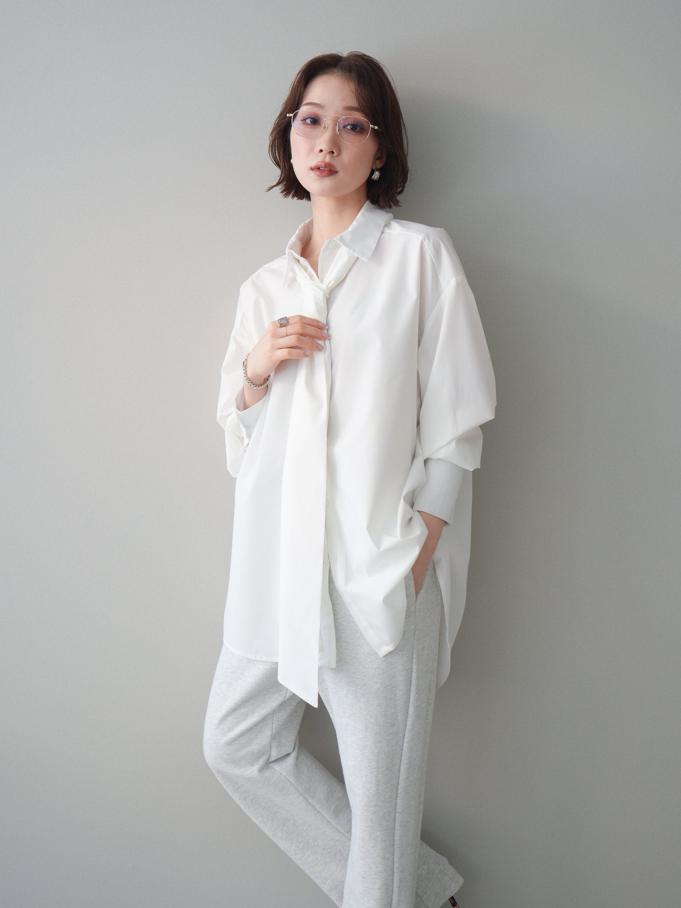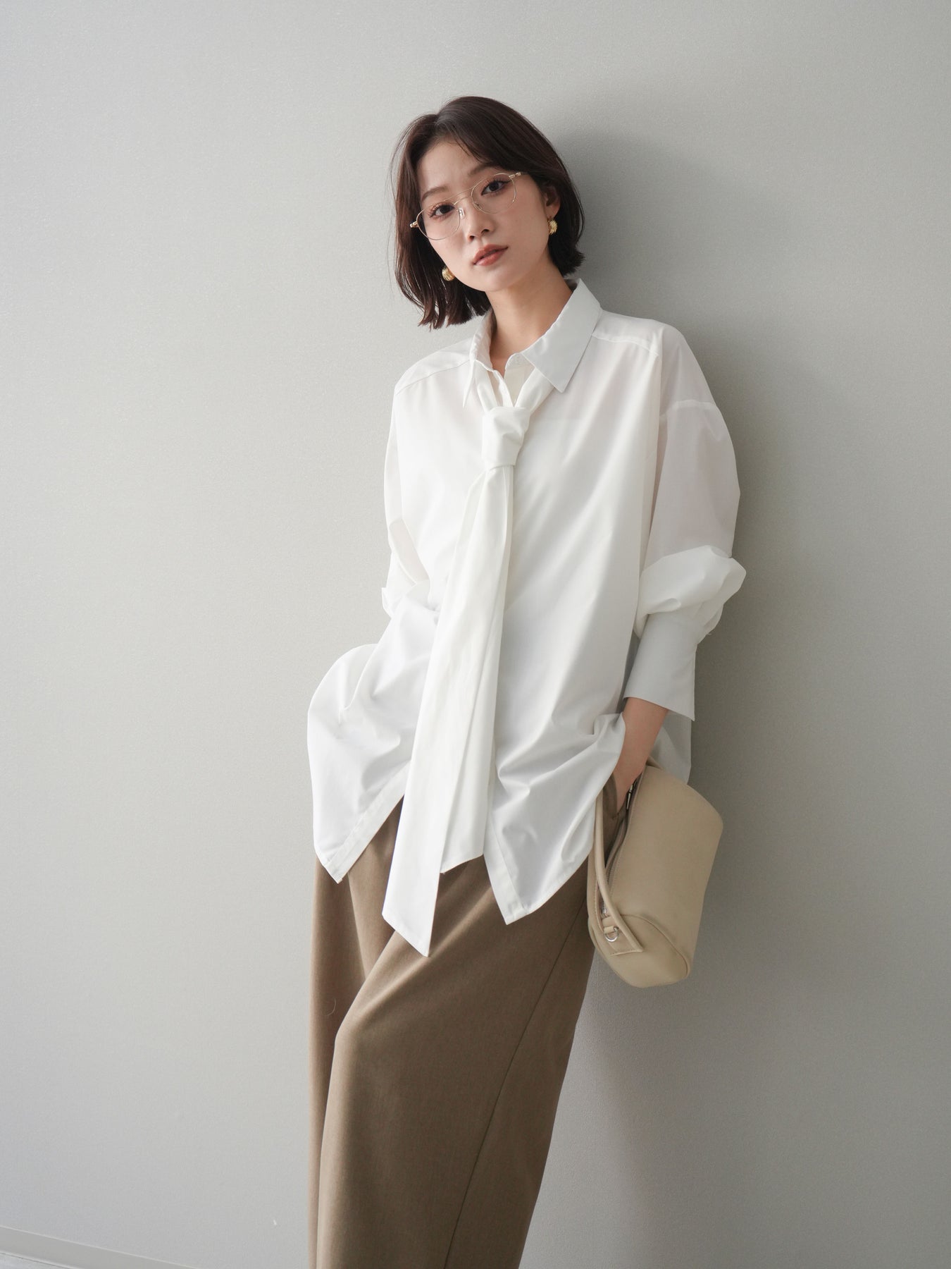 [予約]ボウタイ付オーバーシャツ/white