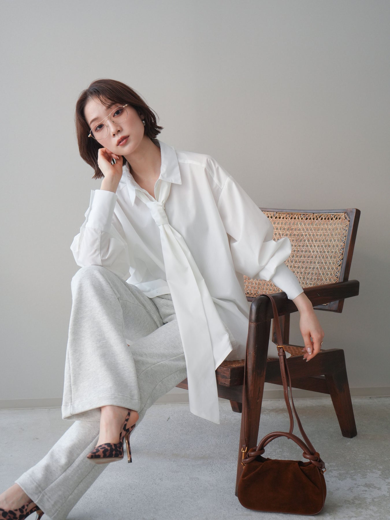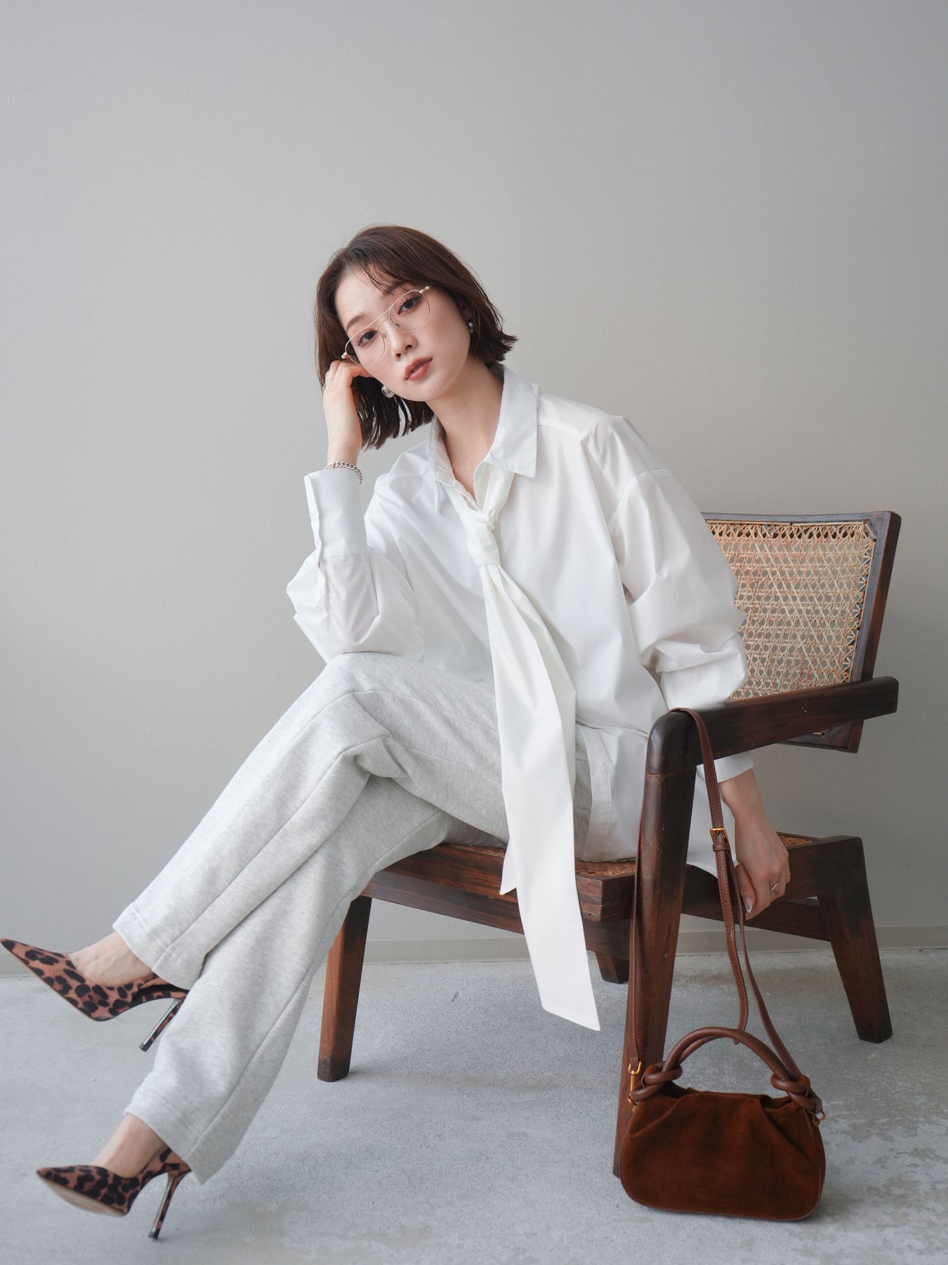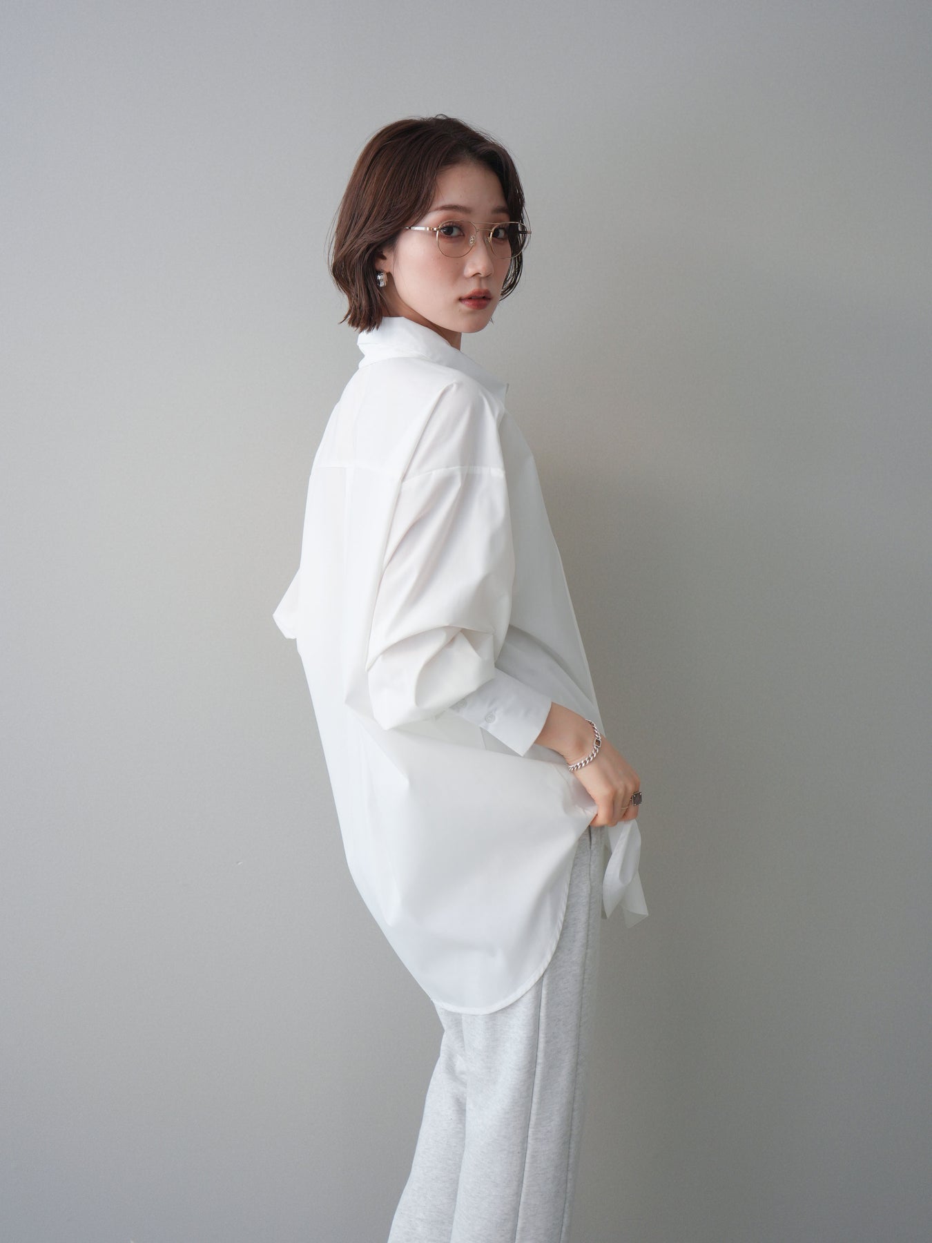 程よいハリ感のある素材が印象的な、ボウタイ付きオーバーシャツ。 ゆったりとしたシルエットに仕上げることで、肩の力を抜いた着こなしが叶う一枚です。 ボウタイは結び方次第で印象を変えられ、きちんと感のあるスタイルからラフなアレンジまで幅広く対応。 前を開けて羽織として着用するのもおすすめで、スタイリングに自然な奥行きをプラスします。 ヒップラインを程よくカバーする丈感で、パンツスタイルとの相性も良く、デイリーに取り入れやすいデザイン。 シンプルながらも着こなしにニュアンスを与えてくれる、着回し力の高いシャツアイテムです。 ※ボトムス、キャミソール(インナー)以外の商品は一律でインナーは付属していません。