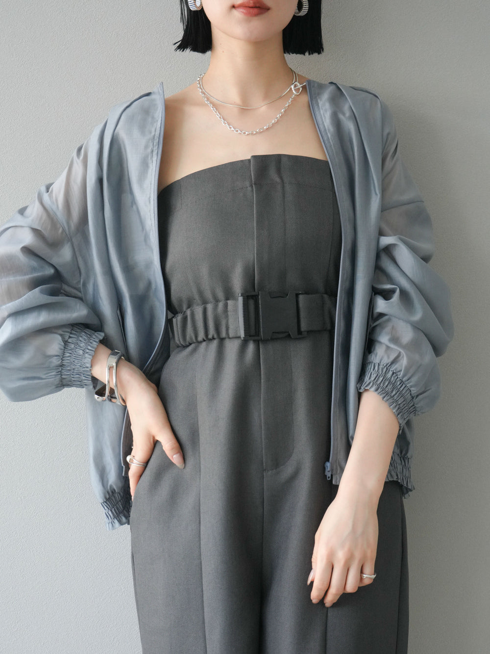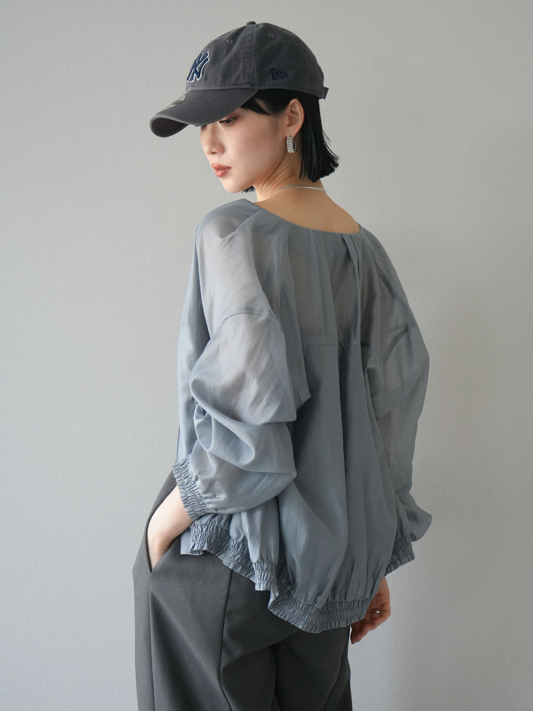 【預購】薄紗對接透視條紋大袖口oversized襯衫/藍色
