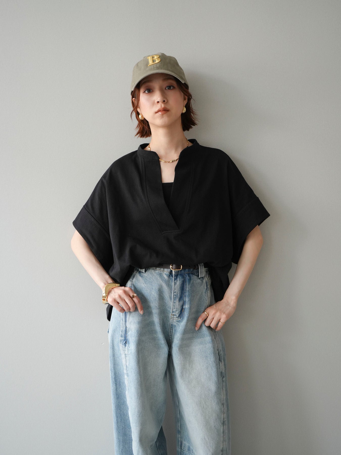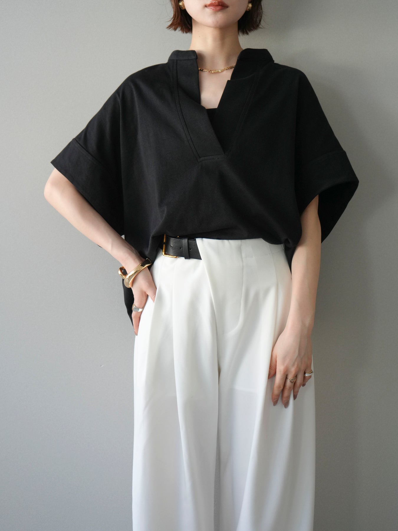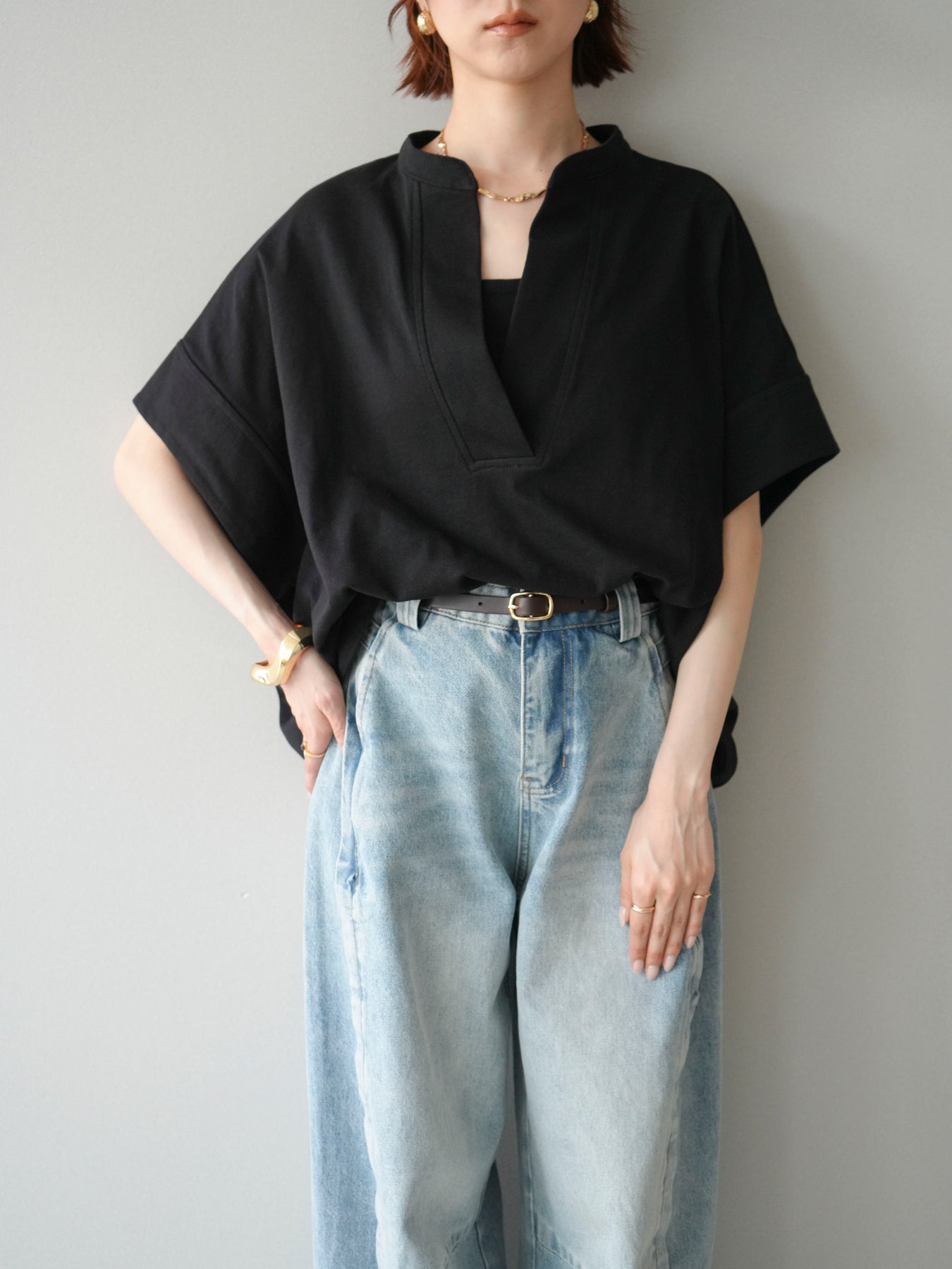 【預購】Skipper 寬袖短袖上衣 / 黑色