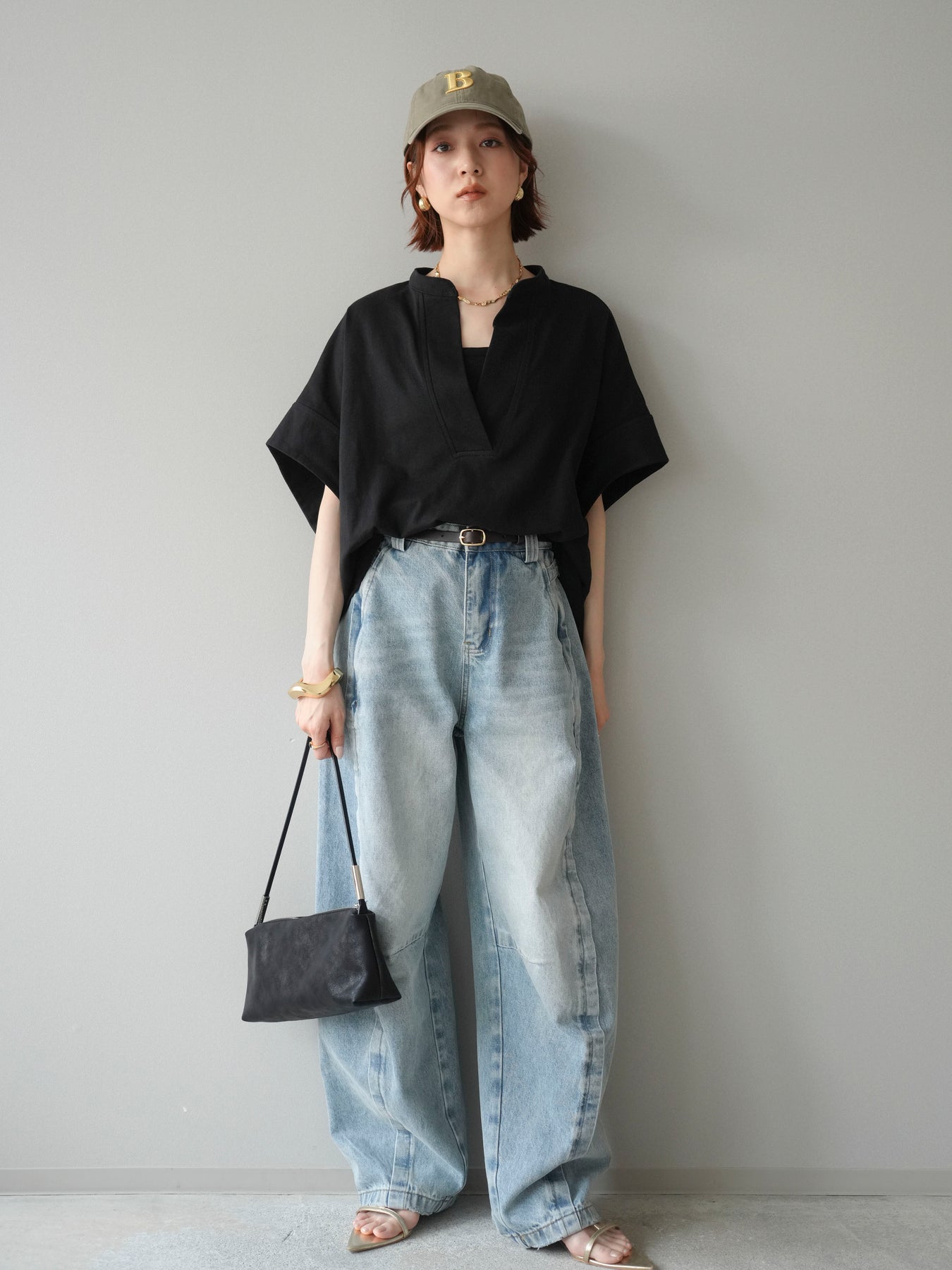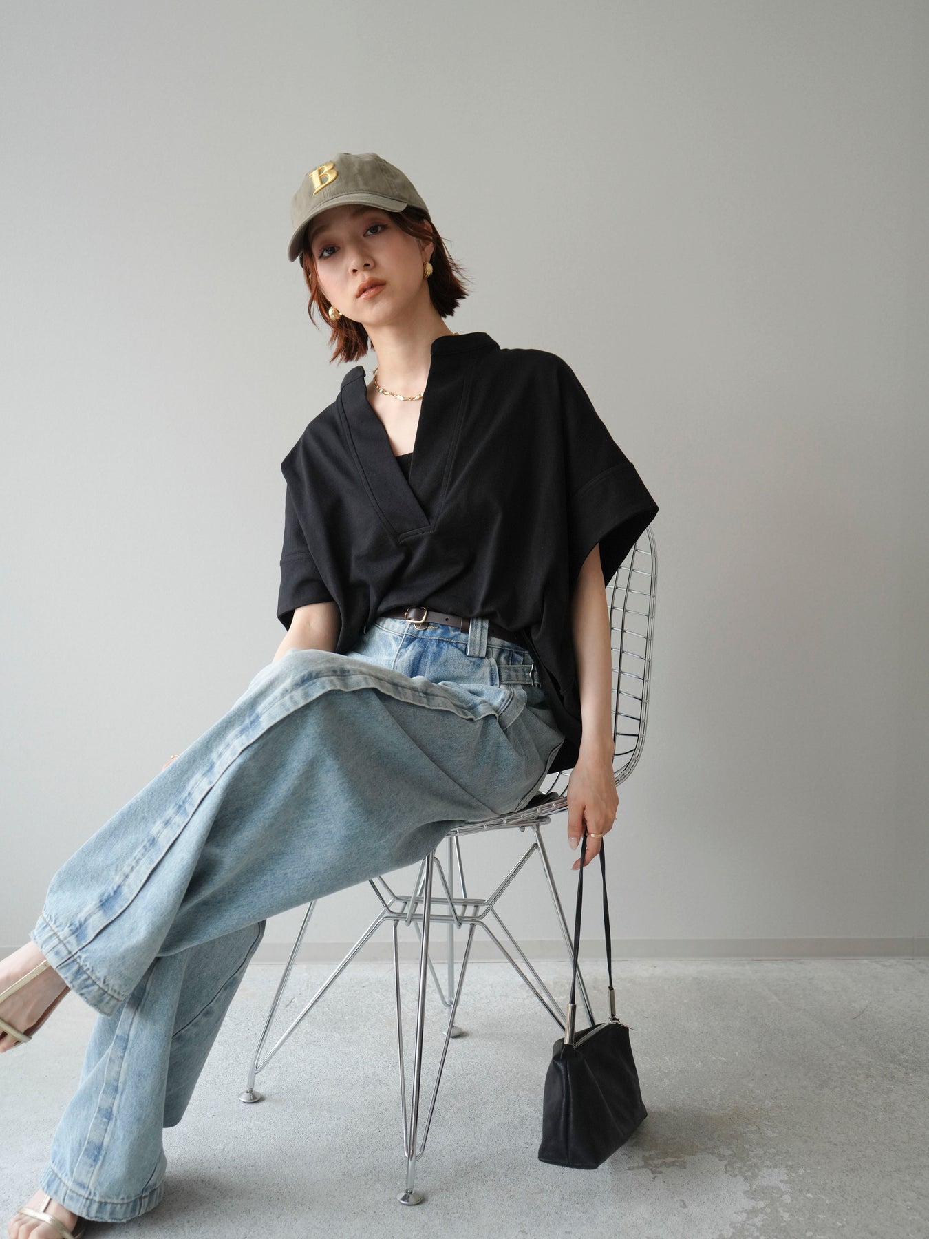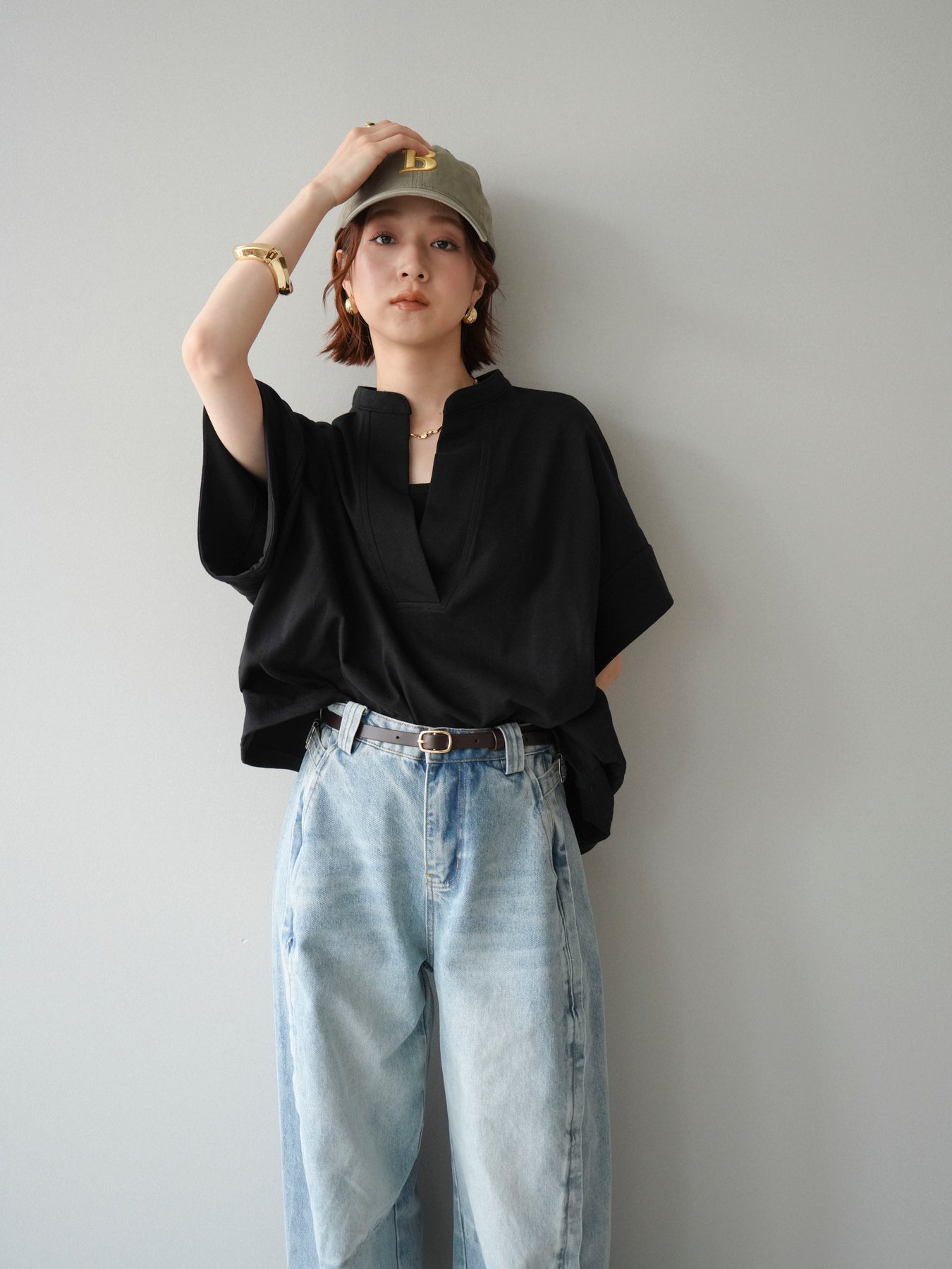 【預購】Skipper 寬袖短袖上衣 / 黑色