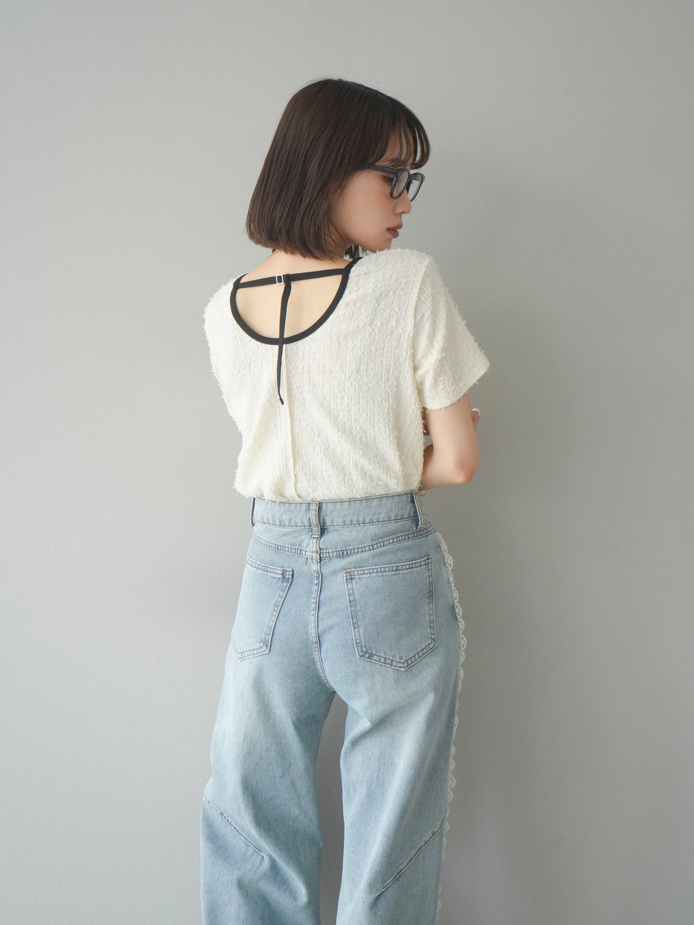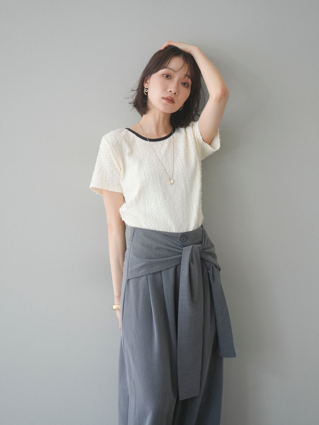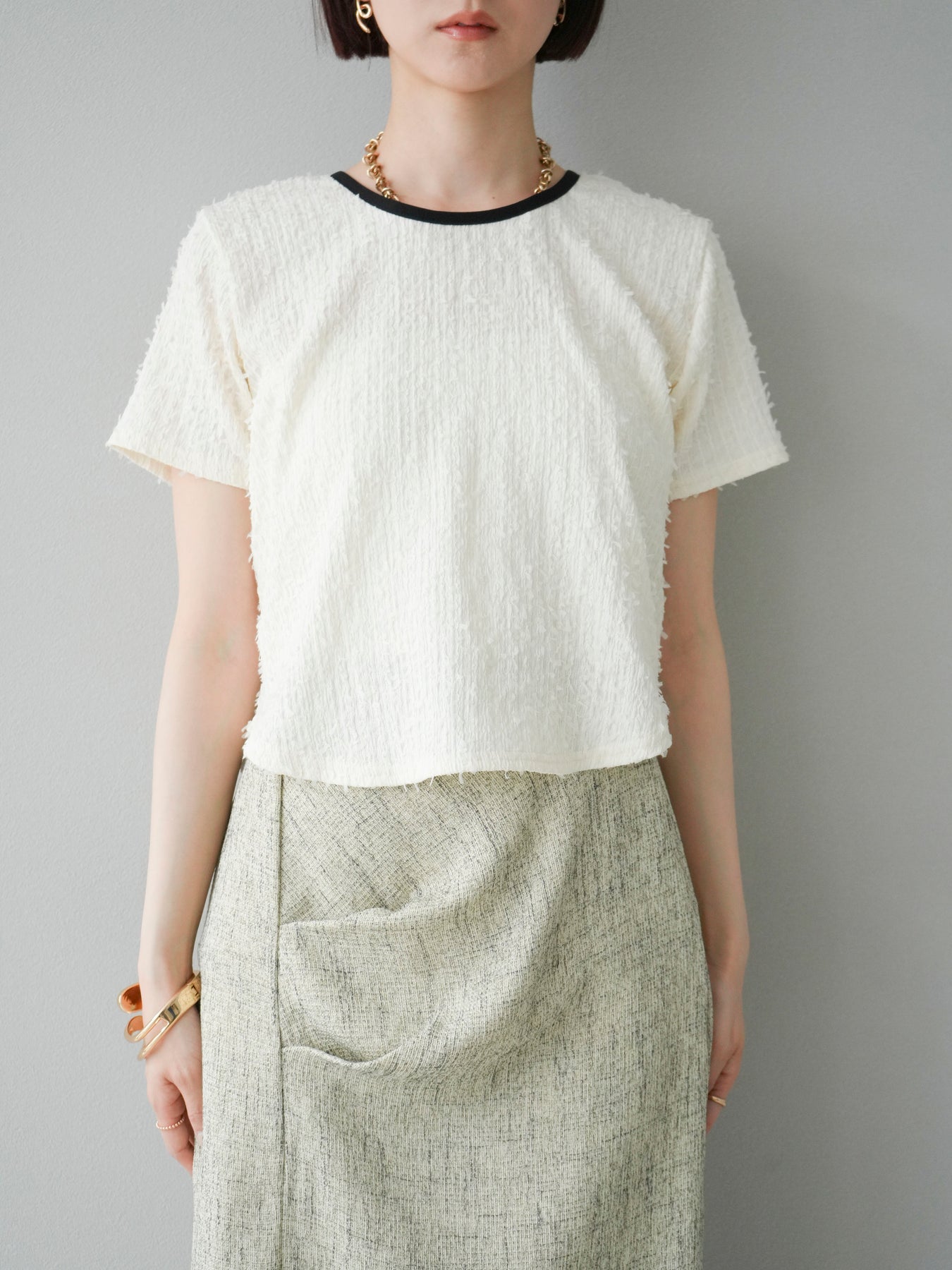 【預訂】顏色協調的滾邊蓬鬆剪裁上衣/象牙白