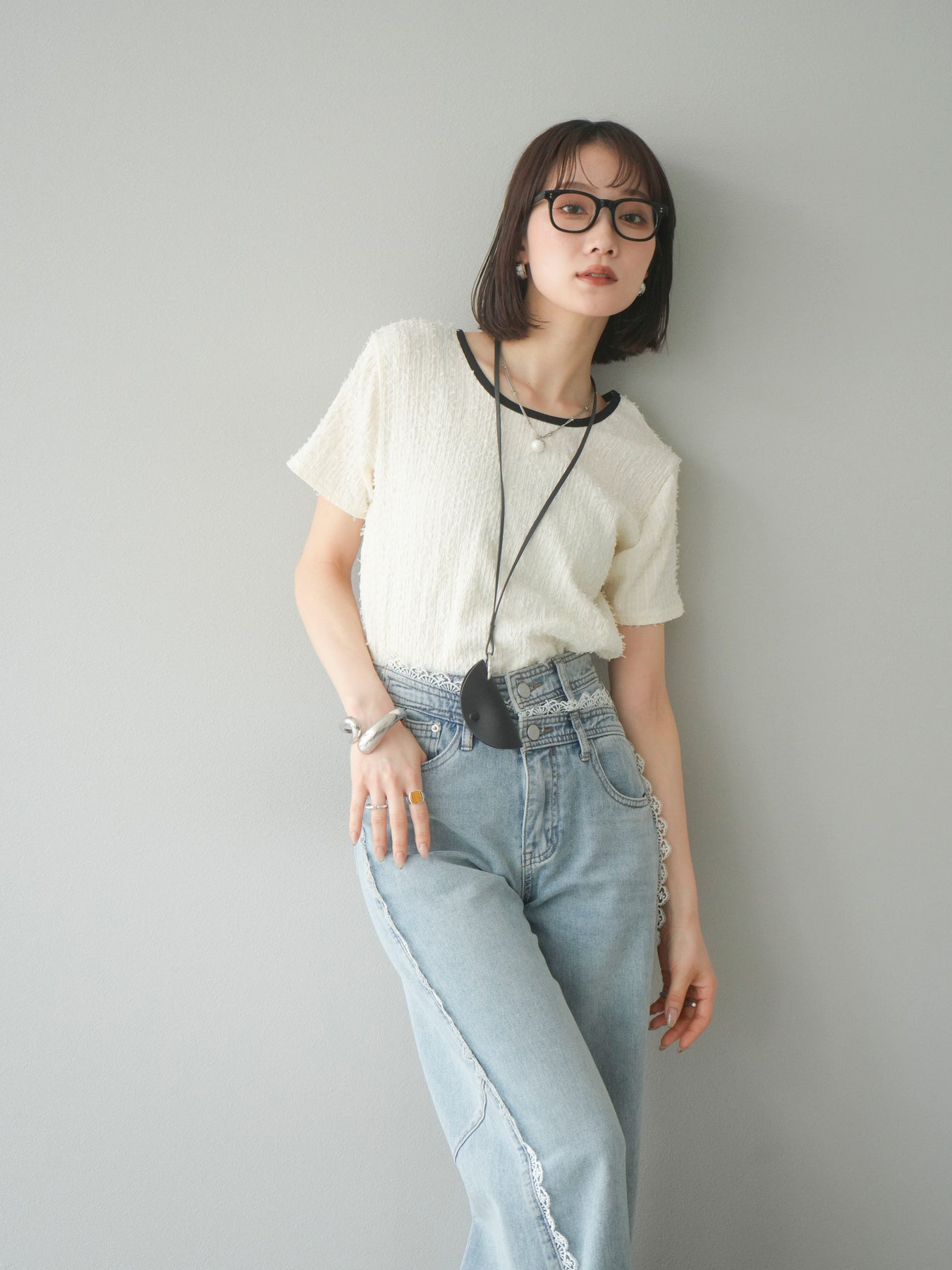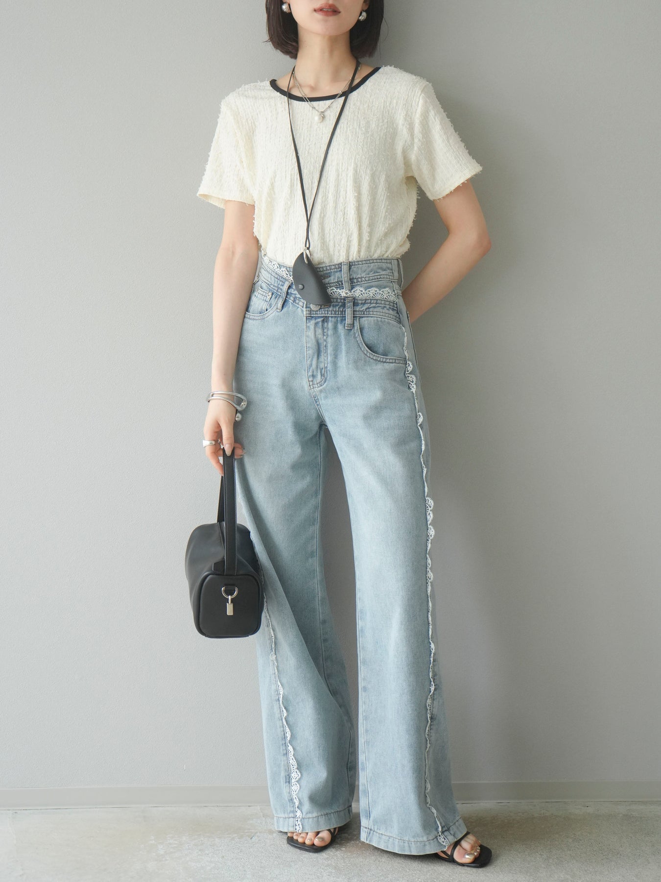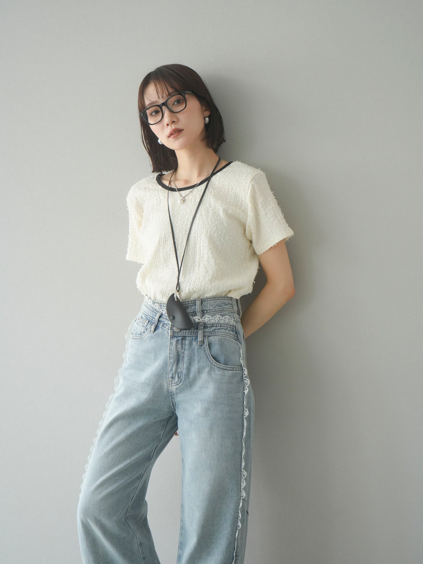 【預訂】顏色協調的滾邊蓬鬆剪裁上衣/象牙白