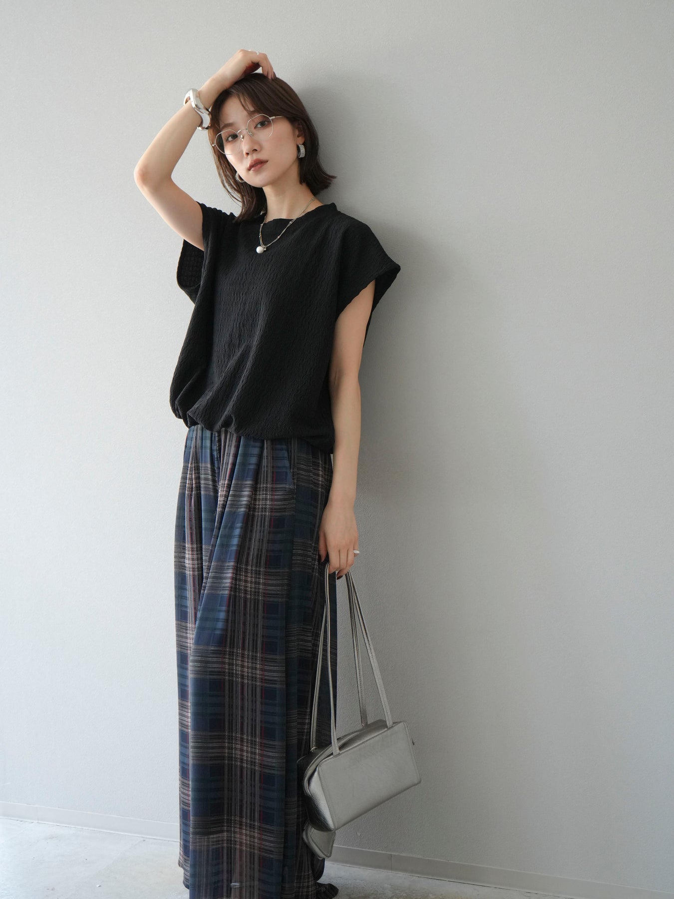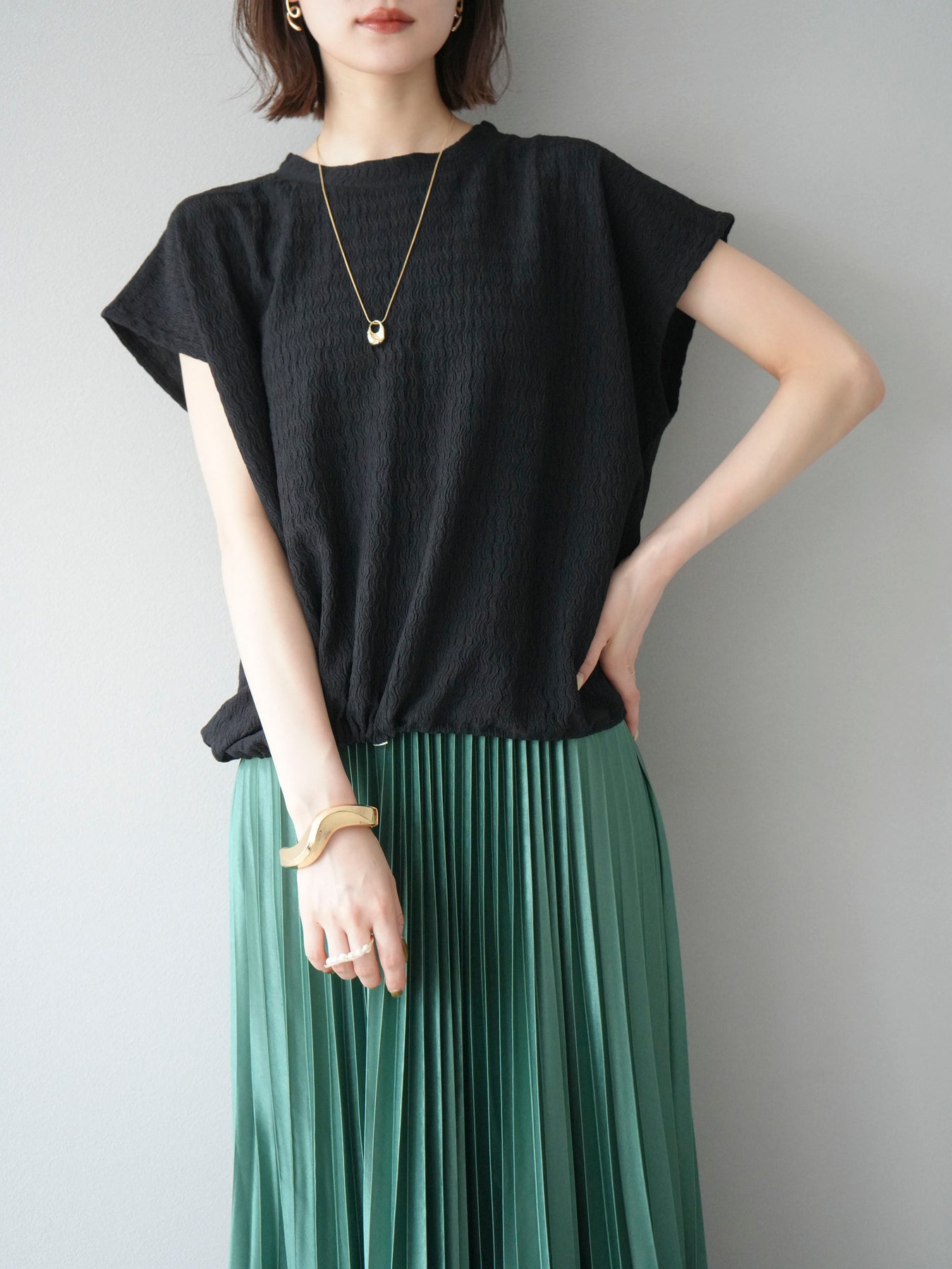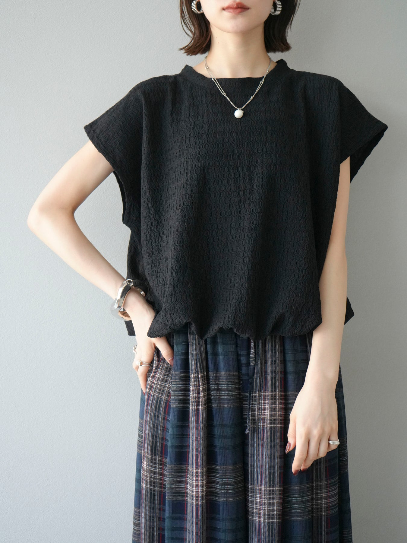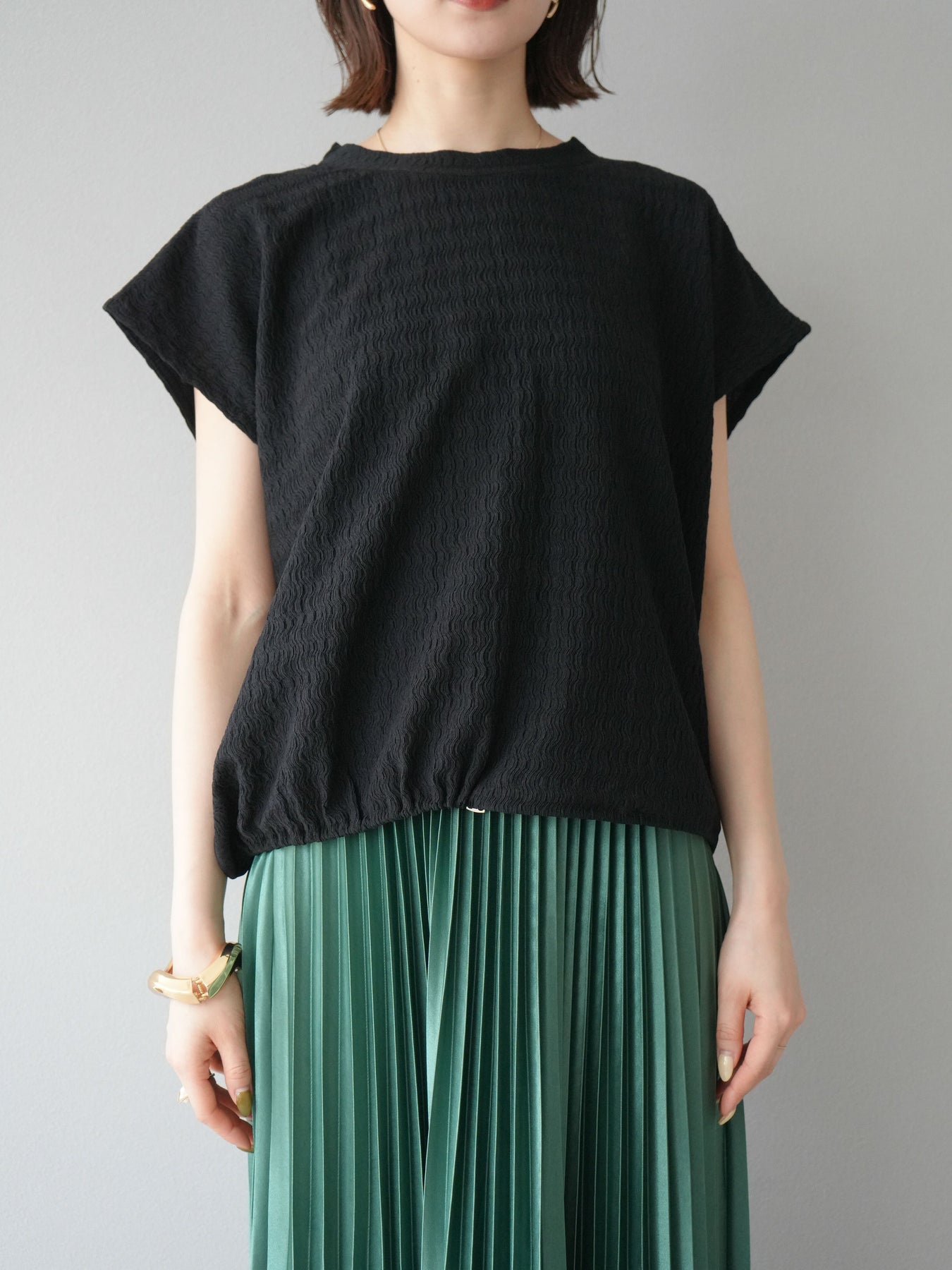 這款套頭衫採用波浪紋提花布料製成,表面帶有紋理,簡約卻又引人注目。下擺配有抽繩,方便變換輪廓。寬鬆的尺寸和法式袖子營造出輕鬆的造型,既休閒又優雅。它既像T卹一樣易於搭配,又能為您的穿搭增添獨特的魅力。 它可以輕鬆搭配褲子和裙子,使其成為可以在工作和休閒時穿著的多功能單品。 ※除下裝、吊帶背心(內衣)以外的商品均不含內衣。