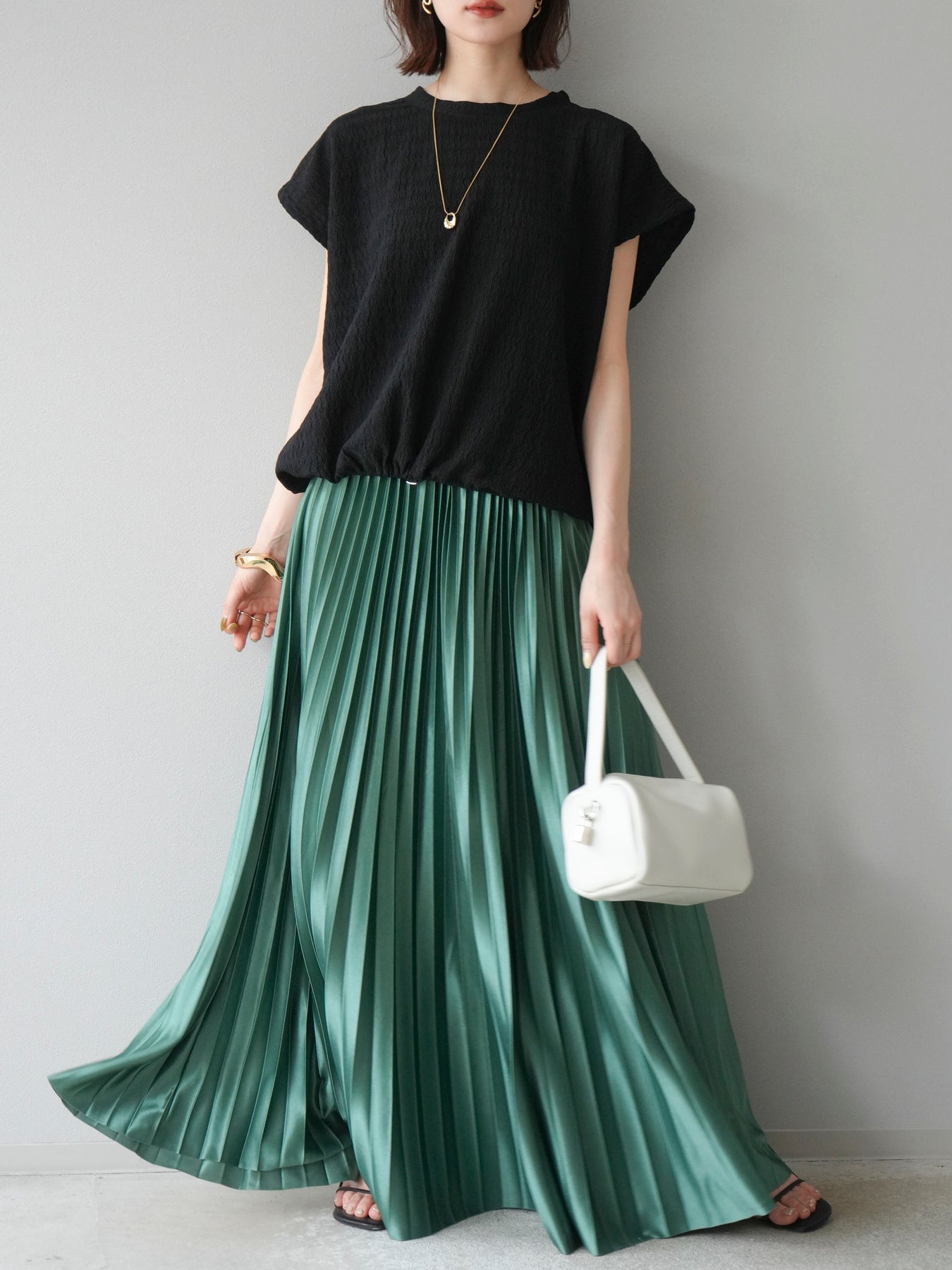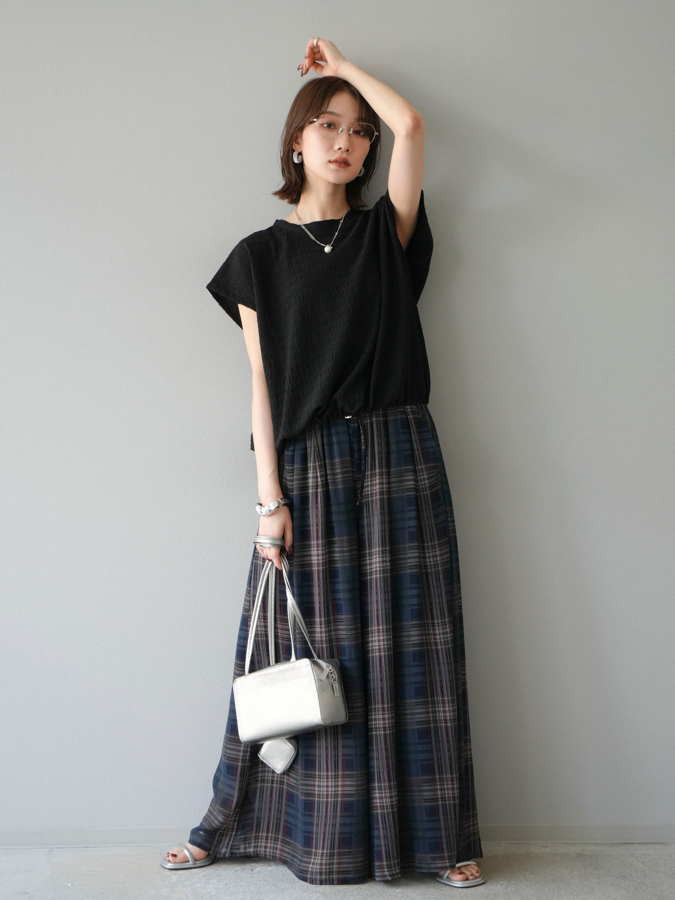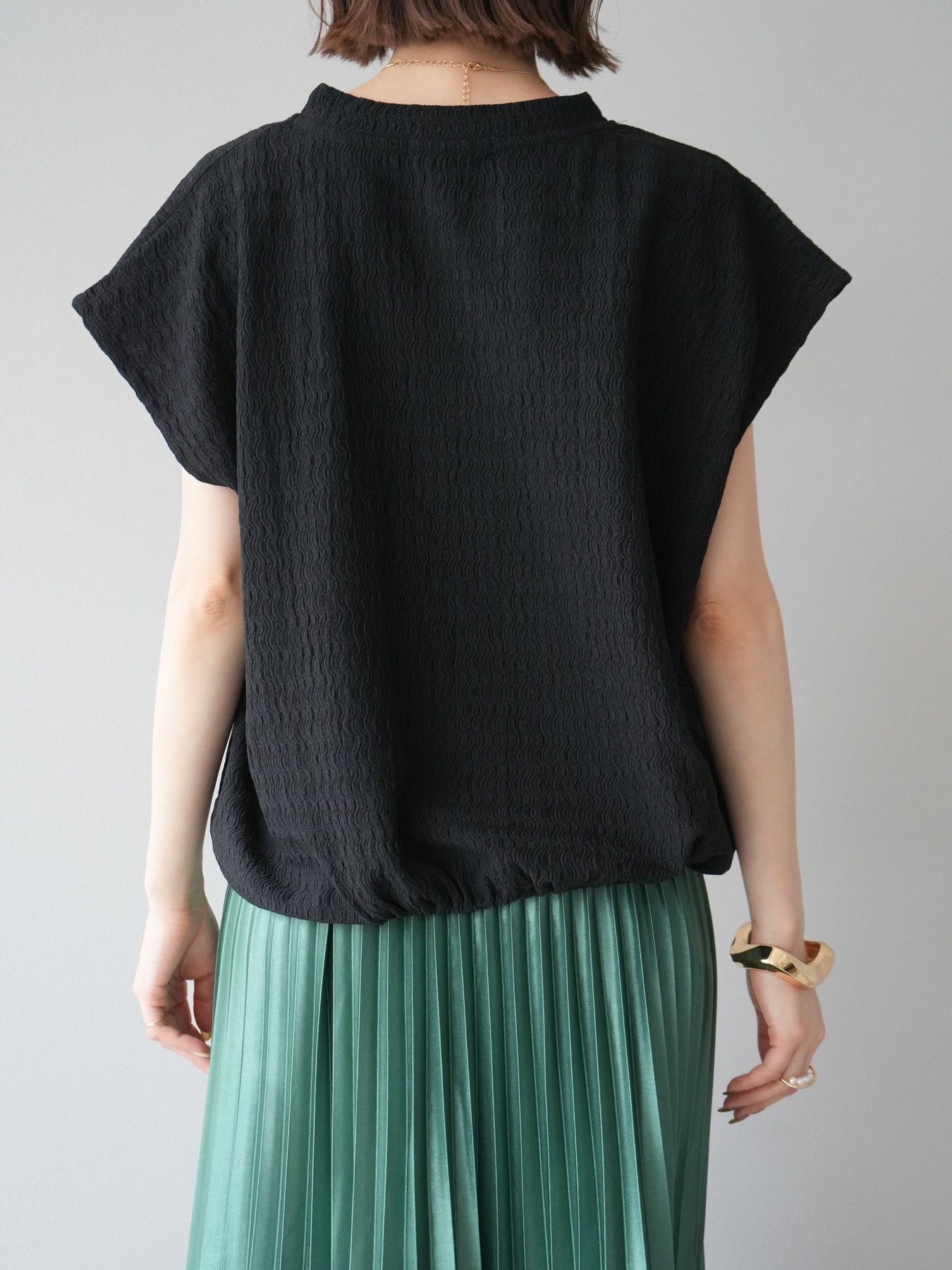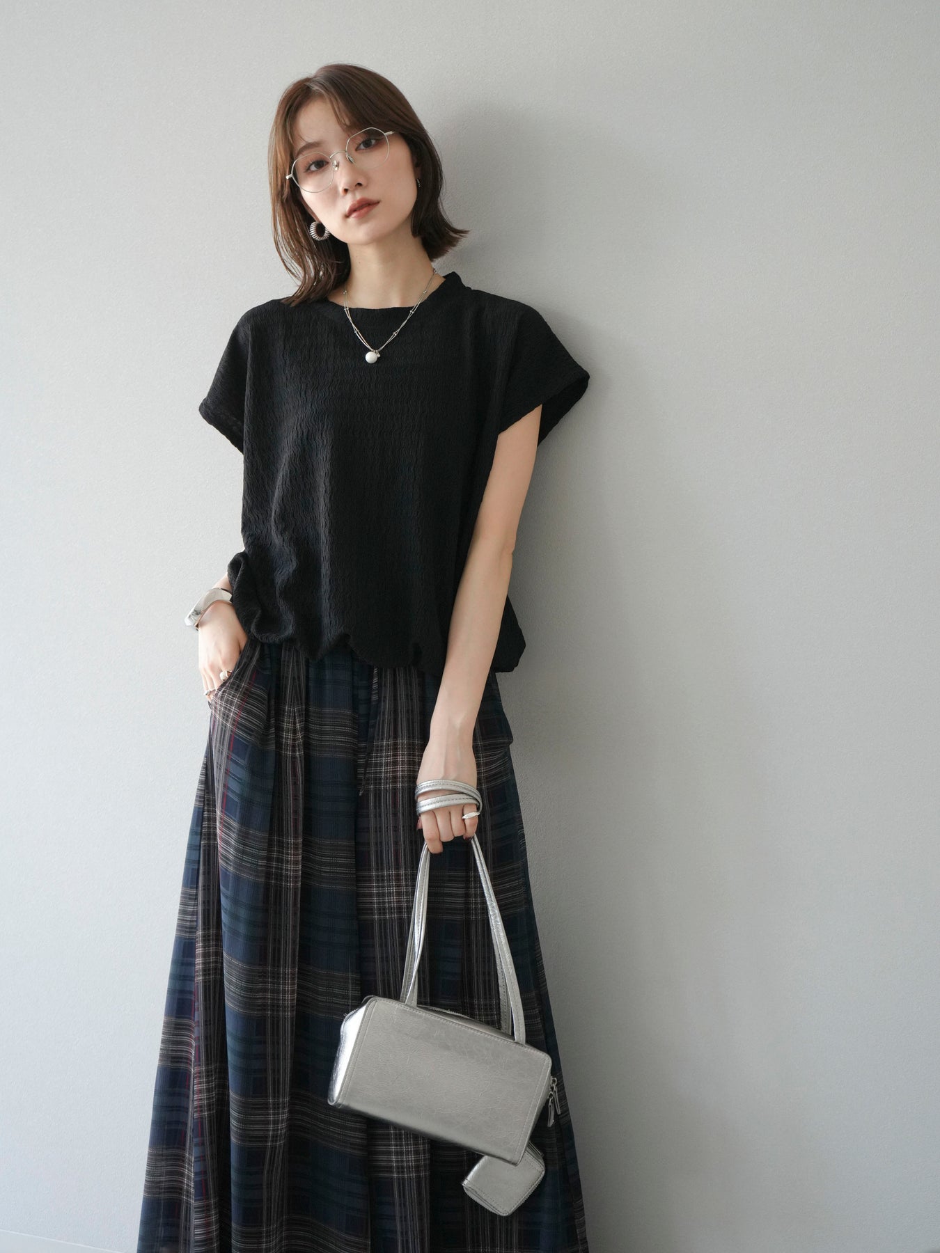 這款套頭衫採用波浪紋提花布料製成,表面帶有紋理,簡約卻又引人注目。下擺配有抽繩,方便變換輪廓。寬鬆的尺寸和法式袖子營造出輕鬆的造型,既休閒又優雅。它既像T卹一樣易於搭配,又能為您的穿搭增添獨特的魅力。 它可以輕鬆搭配褲子和裙子,使其成為可以在工作和休閒時穿著的多功能單品。 ※除下裝、吊帶背心(內衣)以外的商品均不含內衣。