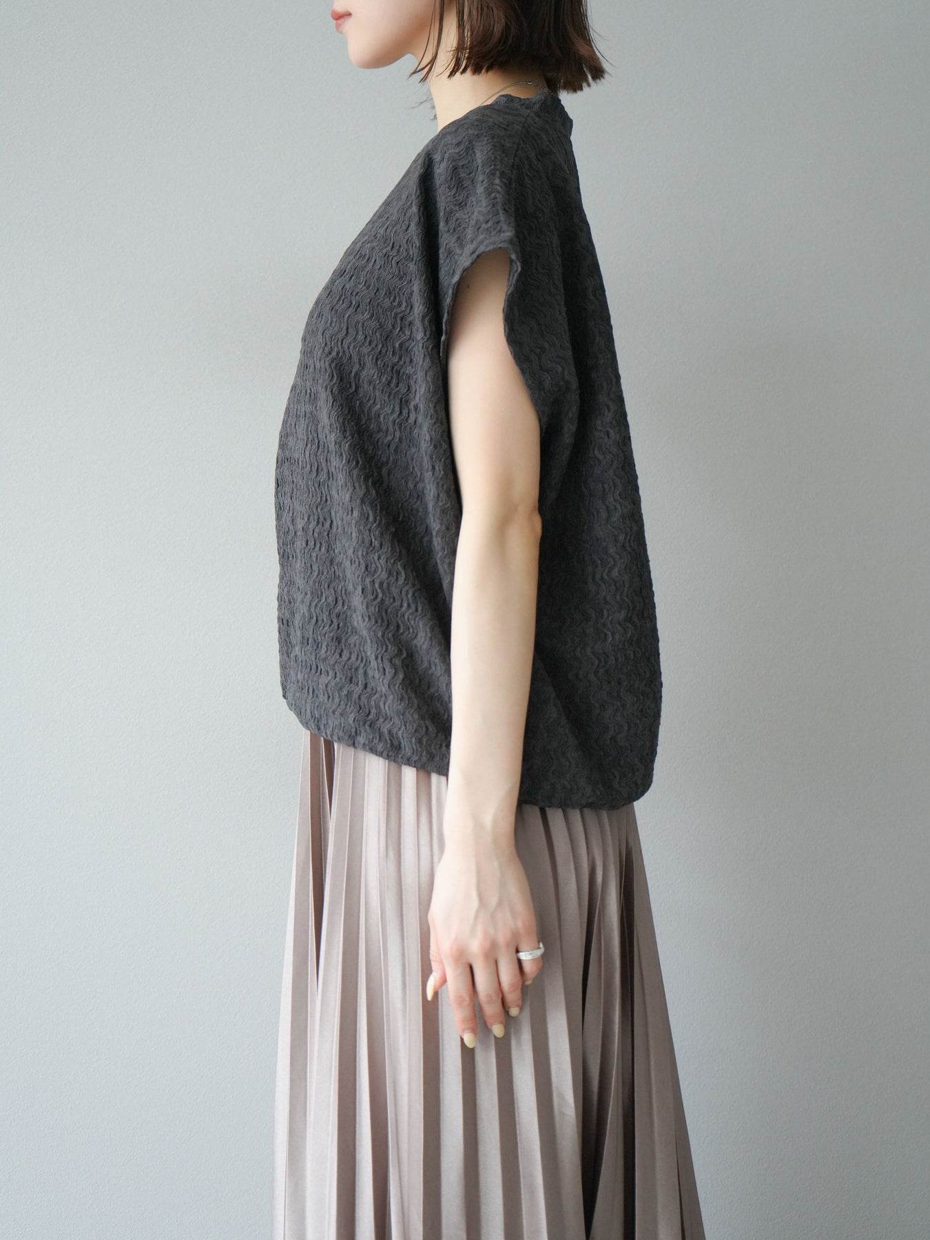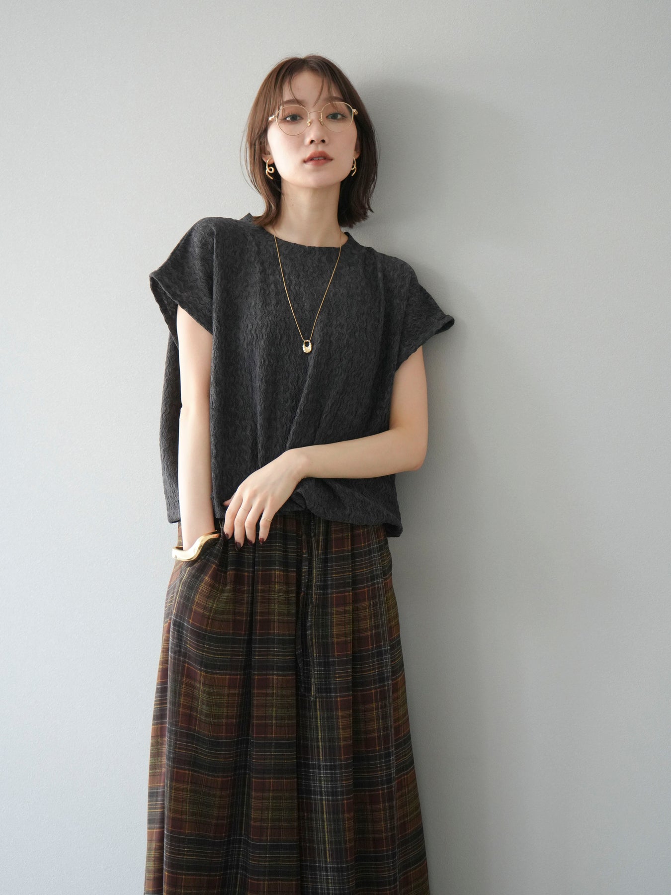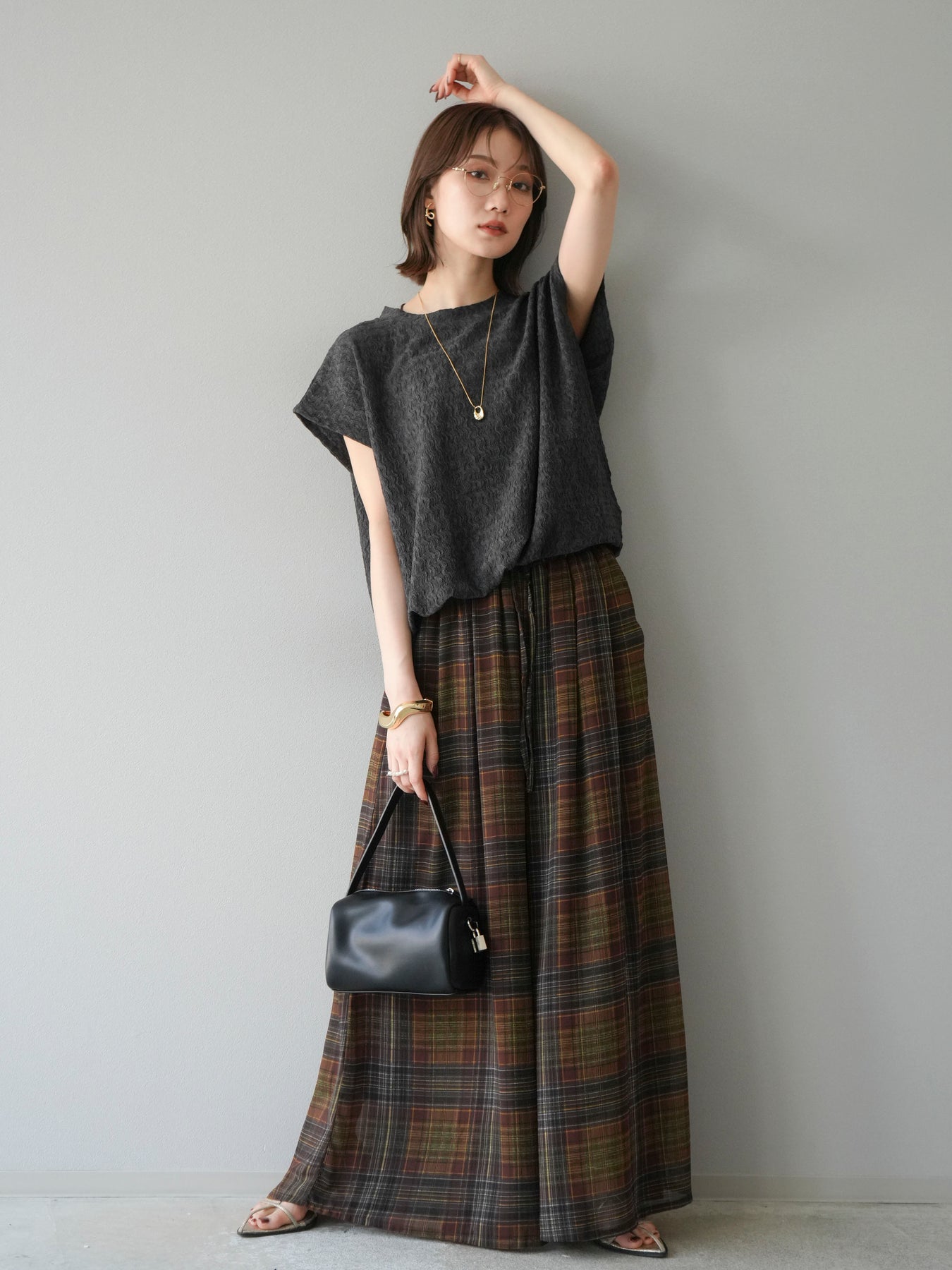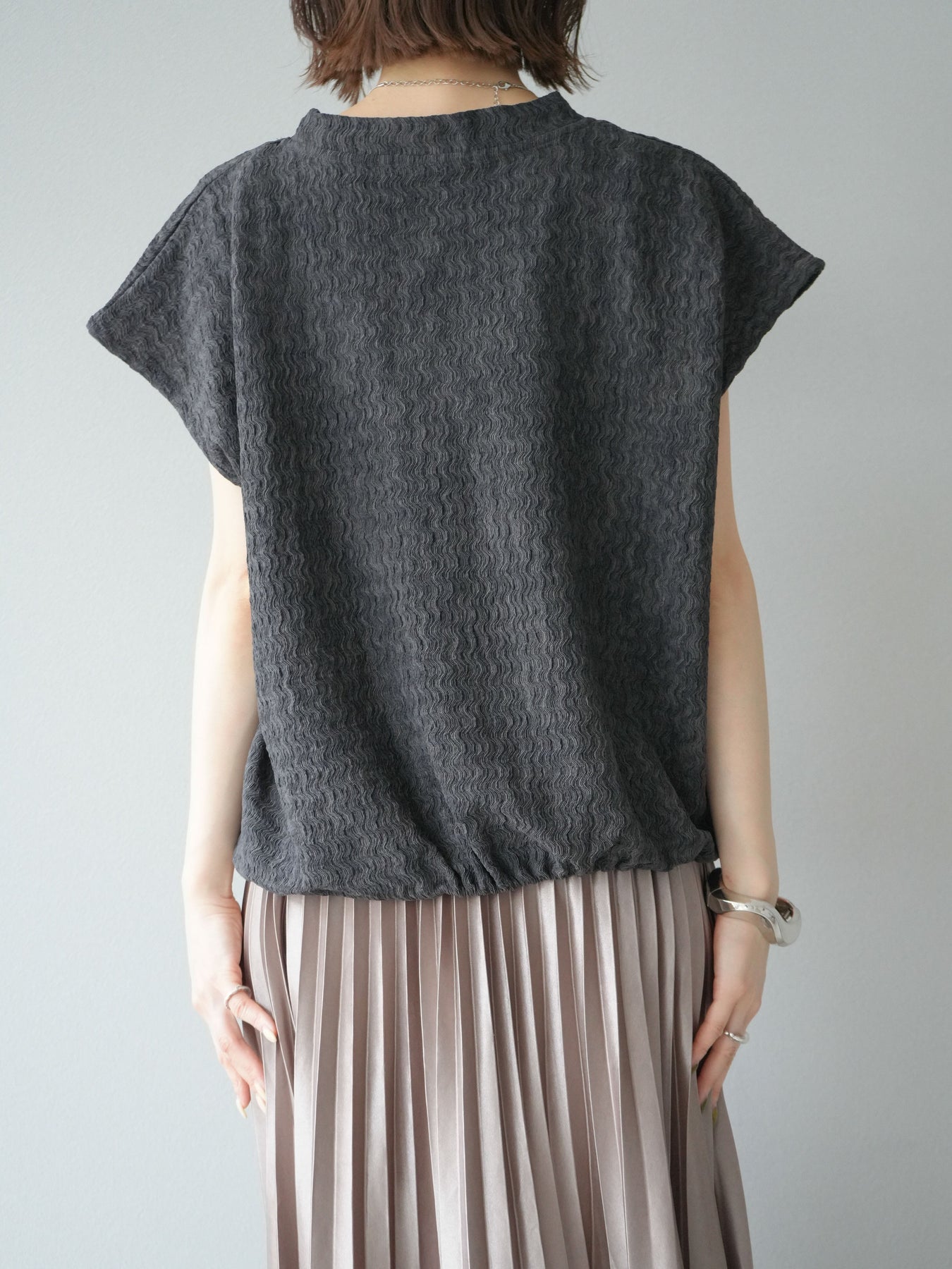 這款套頭衫採用波浪紋提花布料製成,表面帶有紋理,簡約卻又引人注目。下擺配有抽繩,方便變換輪廓。寬鬆的尺寸和法式袖子營造出輕鬆的造型,既休閒又優雅。它既像T卹一樣易於搭配,又能為您的穿搭增添獨特的魅力。 它可以輕鬆搭配褲子和裙子,使其成為可以在工作和休閒時穿著的多功能單品。 ※除下裝、吊帶背心(內衣)以外的商品均不含內衣。