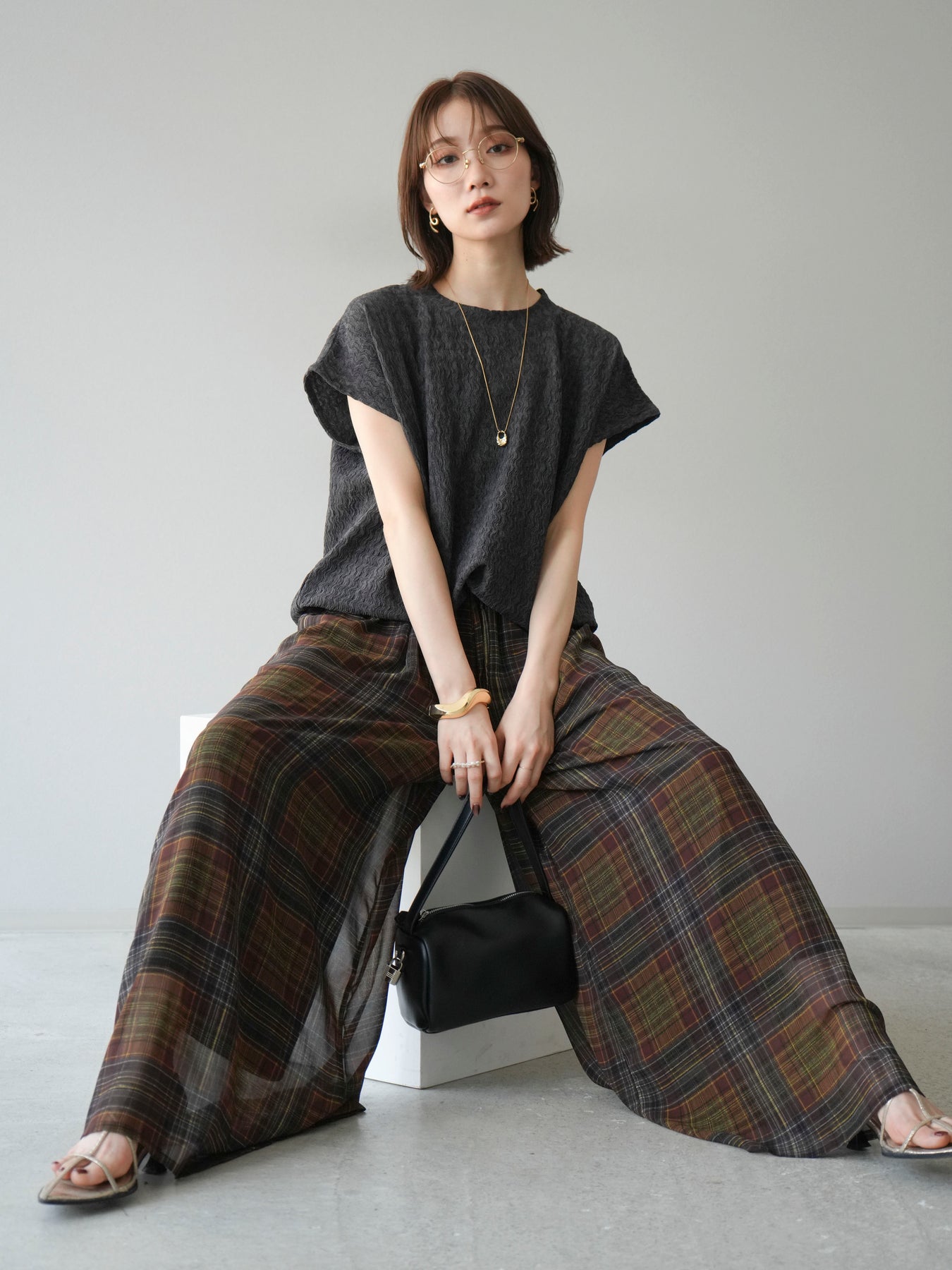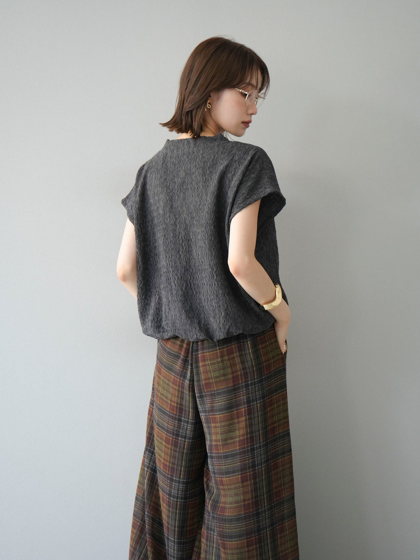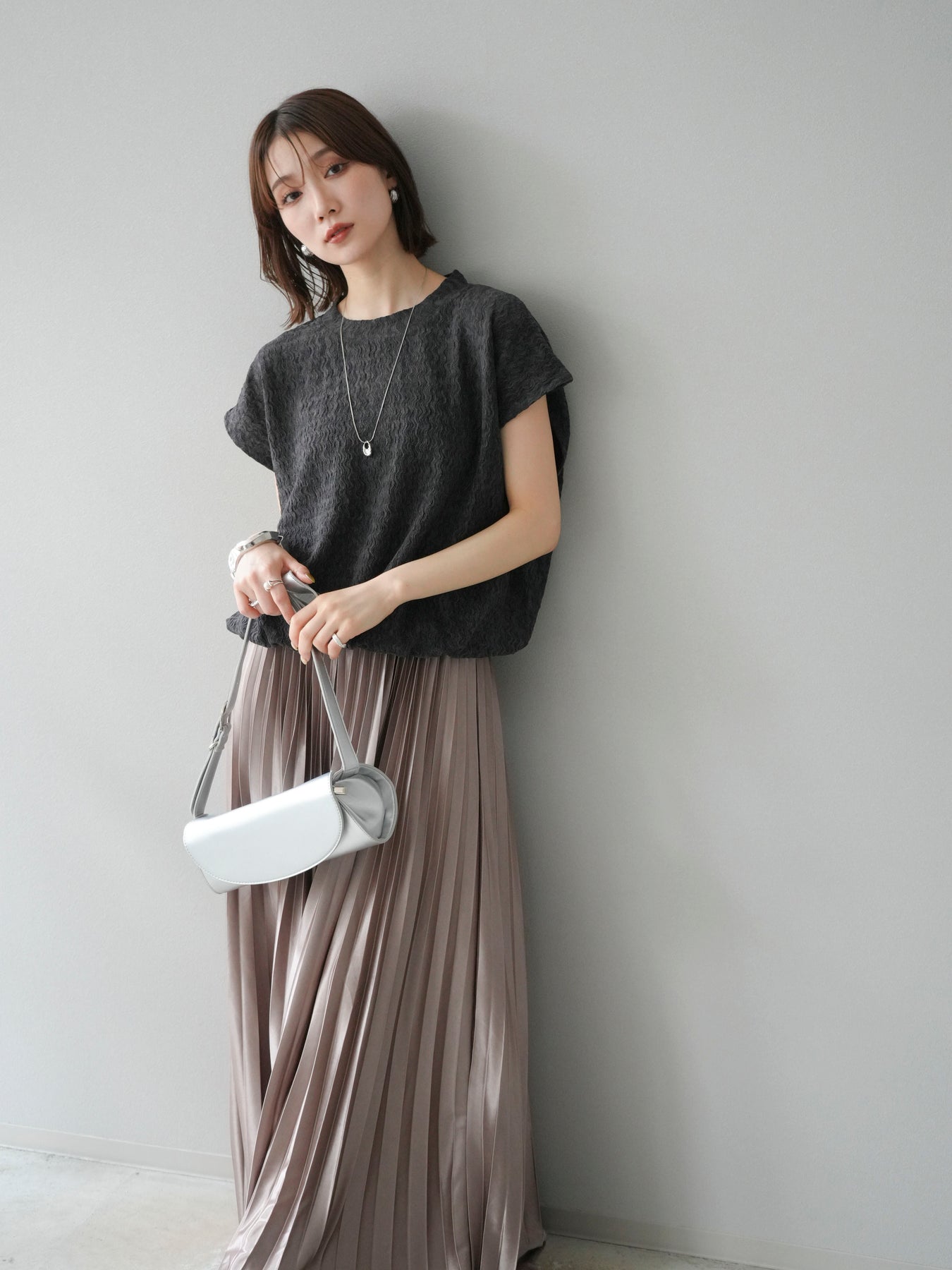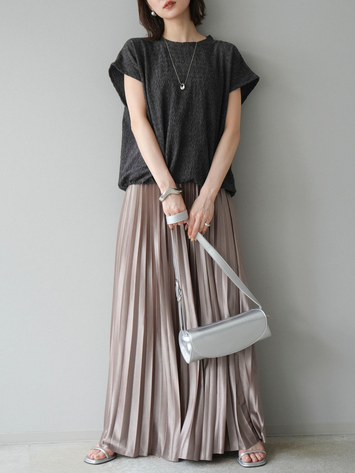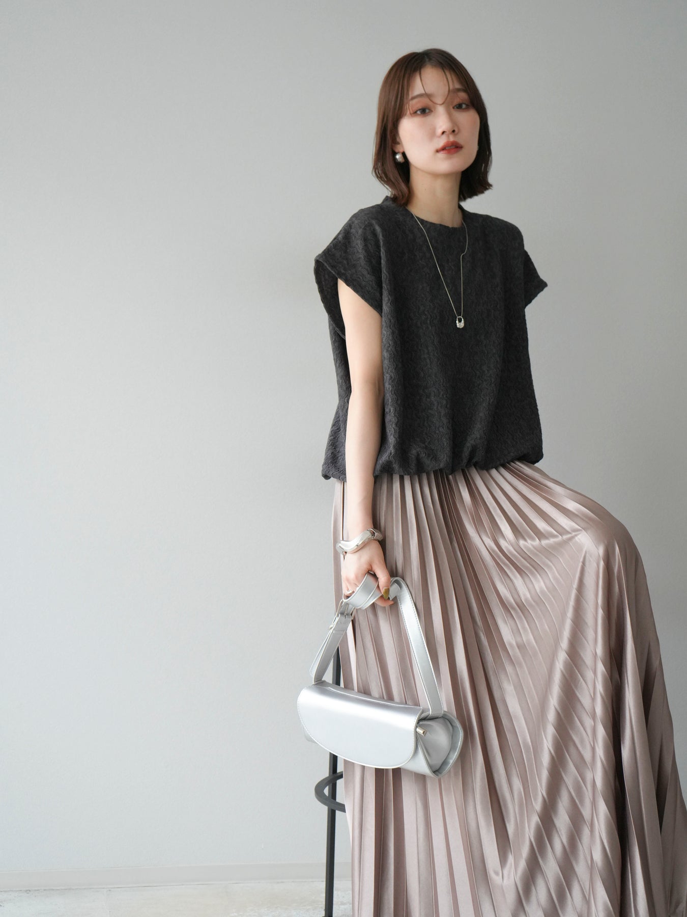 這款套頭衫採用波浪紋提花布料製成,表面帶有紋理,簡約卻又引人注目。下擺配有抽繩,方便變換輪廓。寬鬆的尺寸和法式袖子營造出輕鬆的造型,既休閒又優雅。它既像T卹一樣易於搭配,又能為您的穿搭增添獨特的魅力。 它可以輕鬆搭配褲子和裙子,使其成為可以在工作和休閒時穿著的多功能單品。 ※除下裝、吊帶背心(內衣)以外的商品均不含內衣。