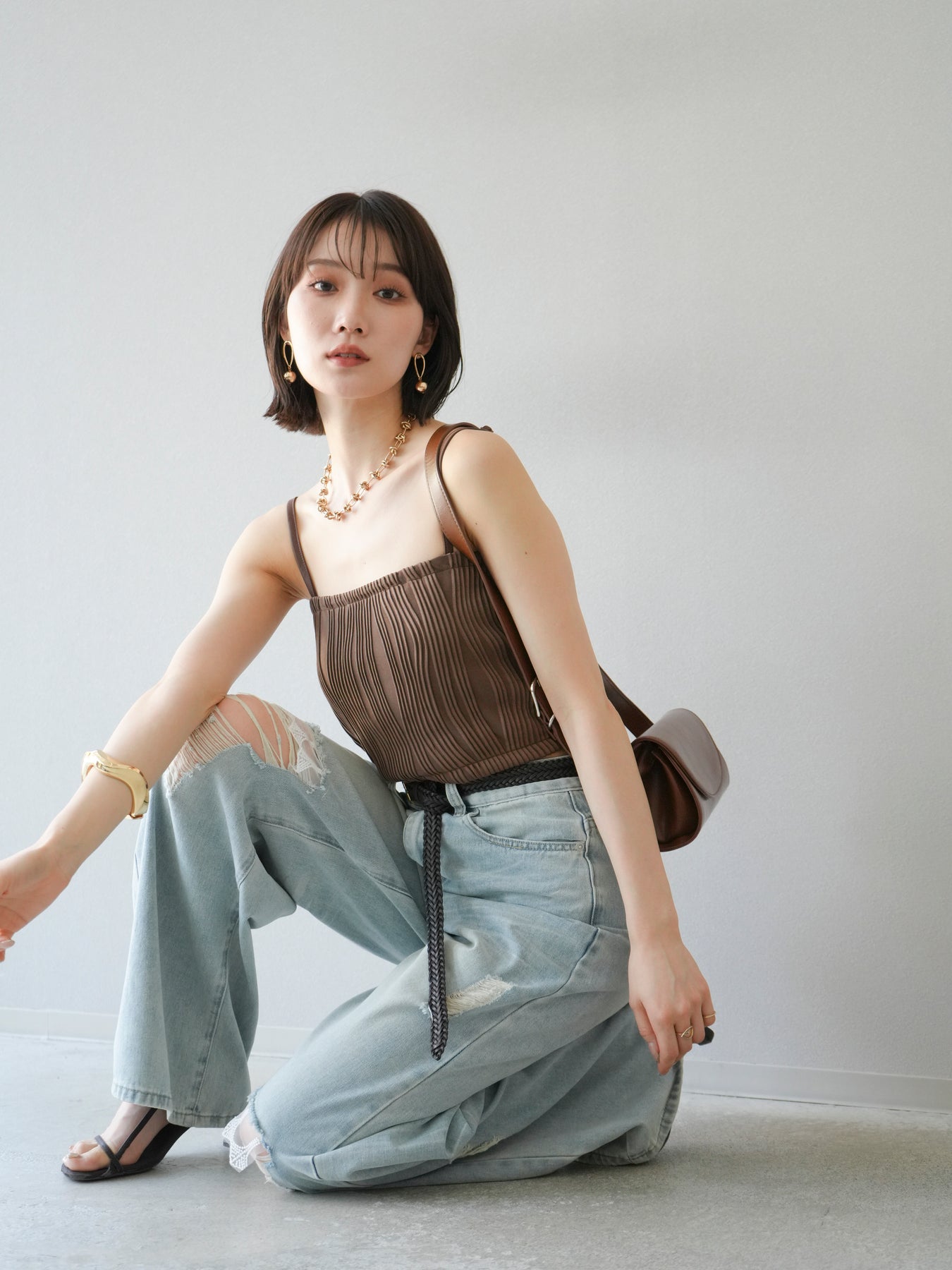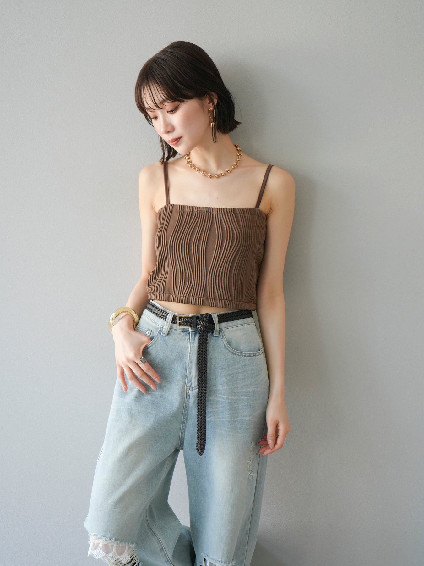 【預購】波浪滾邊杯裸色吊帶背心/棕色