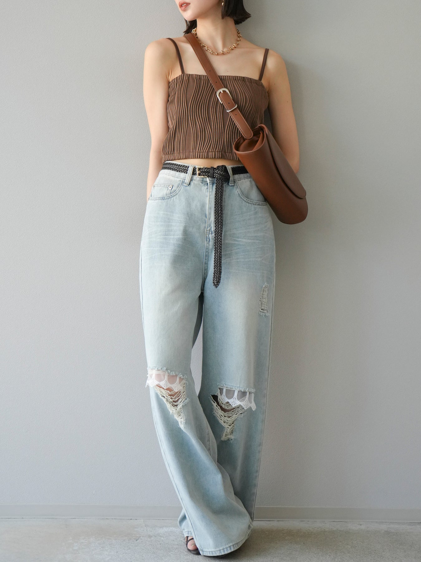 這款裸色吊帶背心,罩杯採用波浪滾邊設計,立體波浪滾邊設計吸睛奪目。富有現代感的紋理布料完美貼合身形,無論是單穿還是內搭都十分出色。罩杯設計方便單穿,背部採彈性設計,穿著舒適不易滑落。精緻的肩帶展現女性柔美氣質,建議搭配吊帶裙和透視上衣。這款單品可作為配件,為您的夏日造型錦上添花。 ※除下裝、吊帶背心(內衣)以外的商品均不含內衣。
