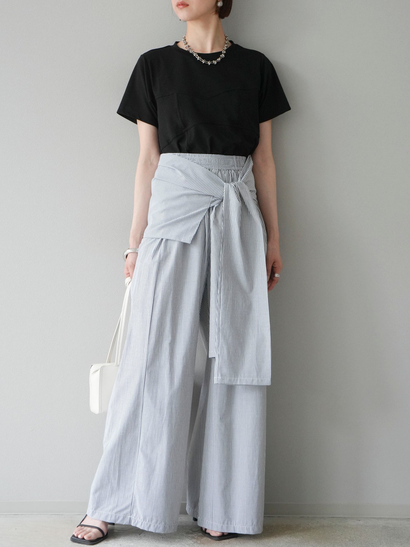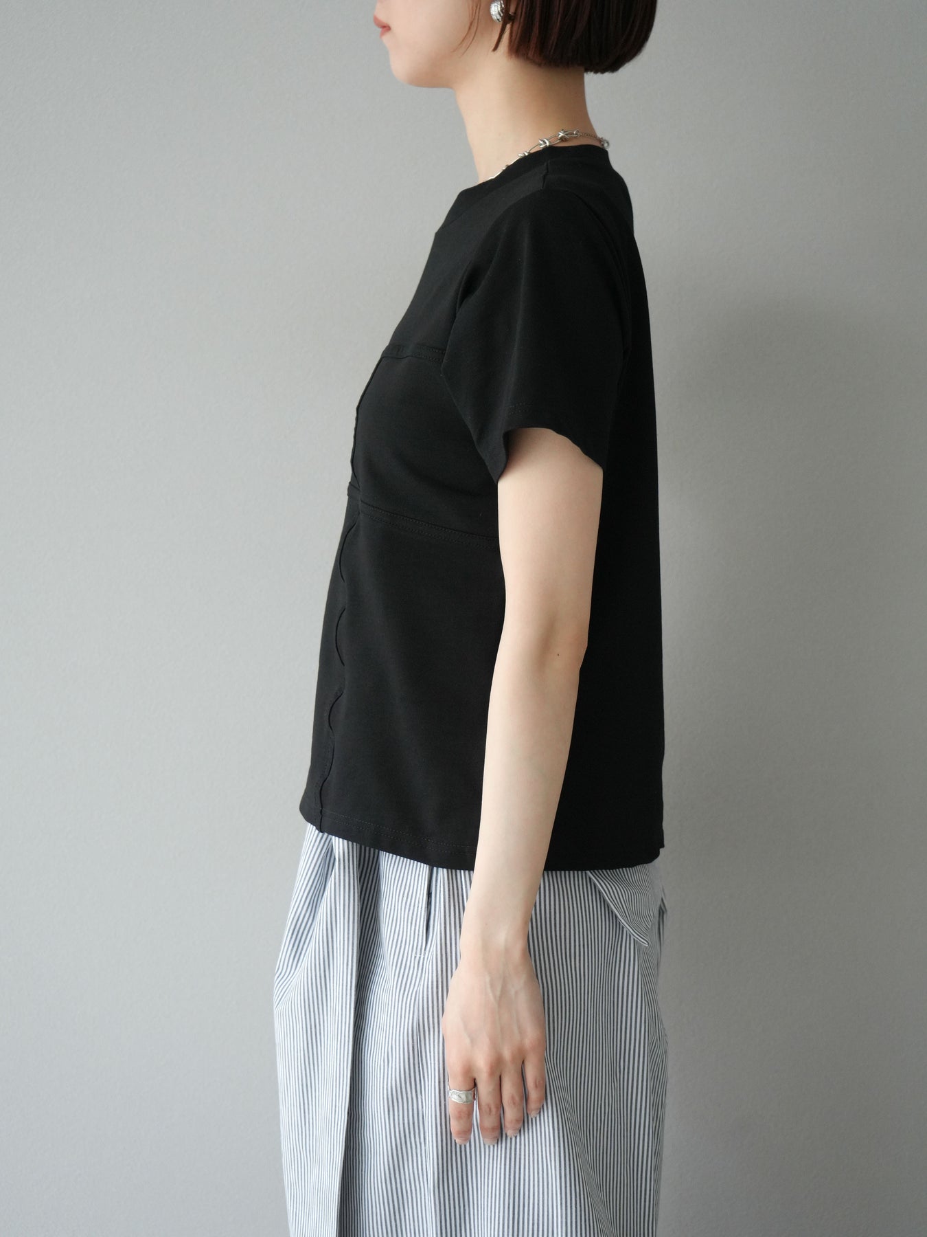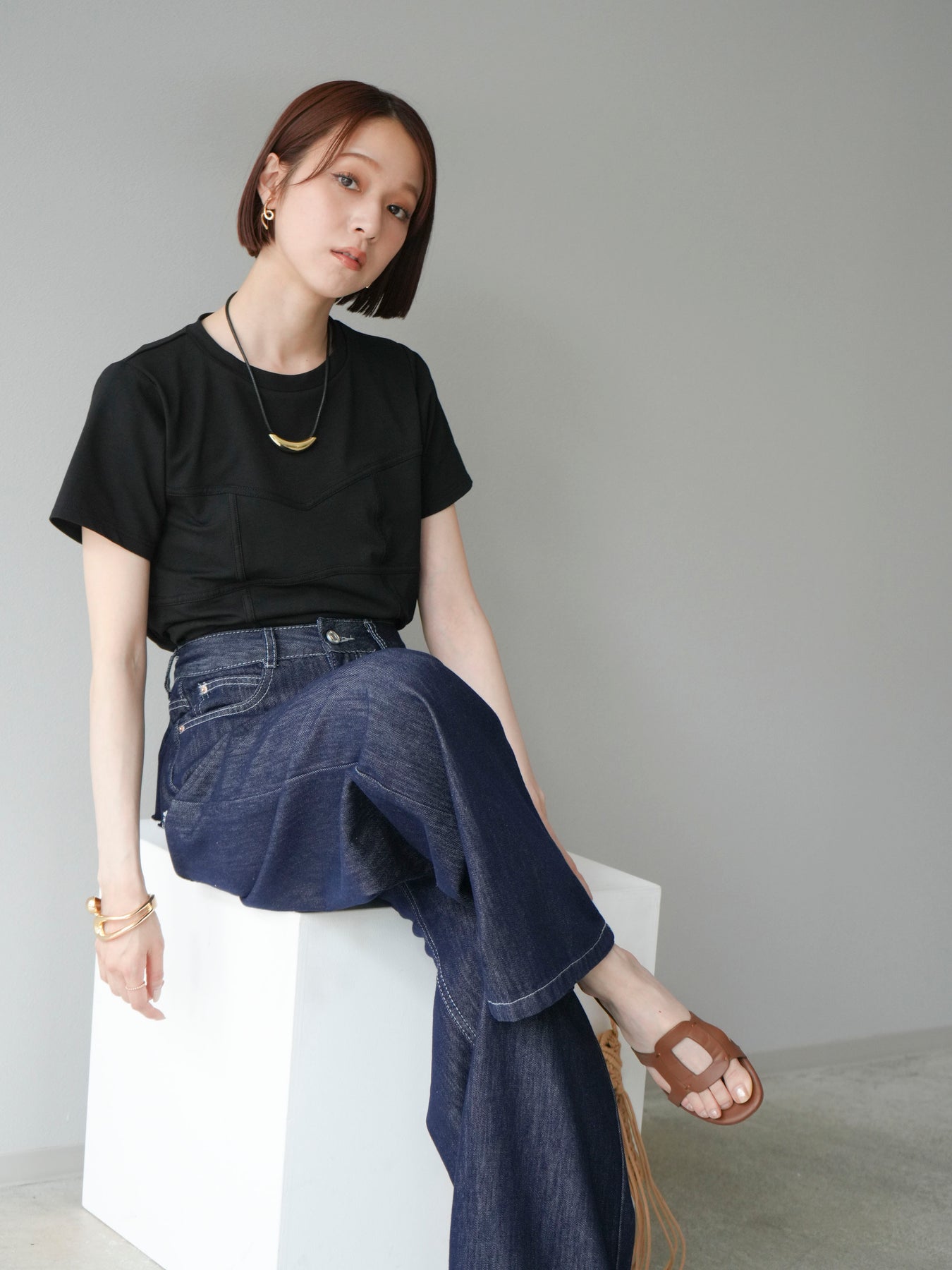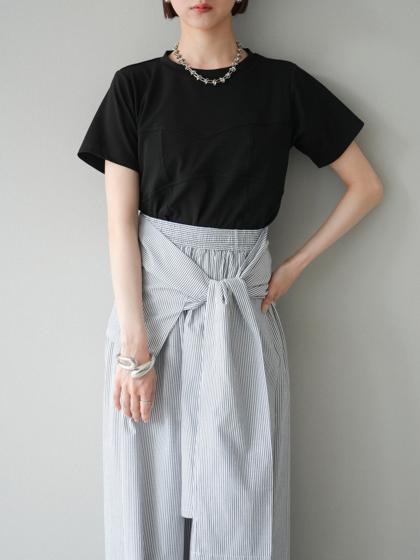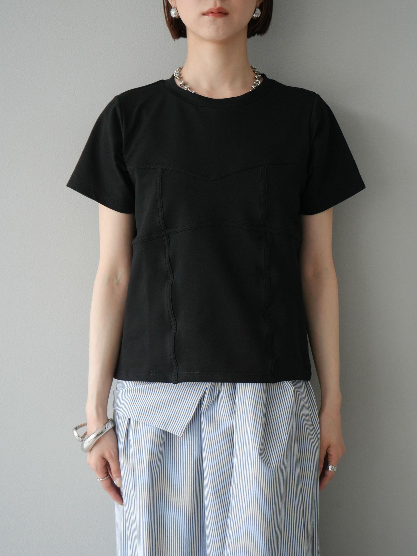胸衣T卹,設計吸睛,宛如在上衣上疊穿緊身胸衣。適度修身的輪廓和剪裁縫製的布料,營造出休閒又不失女性魅力的氛圍。胸部的弧度和垂直拼接線條營造出立體感,簡約卻不失時尚感。單穿也十分出色,內搭夾克或襯衫也能提升整體造型。百搭百搭,可搭配牛仔褲、裙子等多種下裝。 ※除下裝、吊帶背心(內衣)以外的商品均不含內衣。
