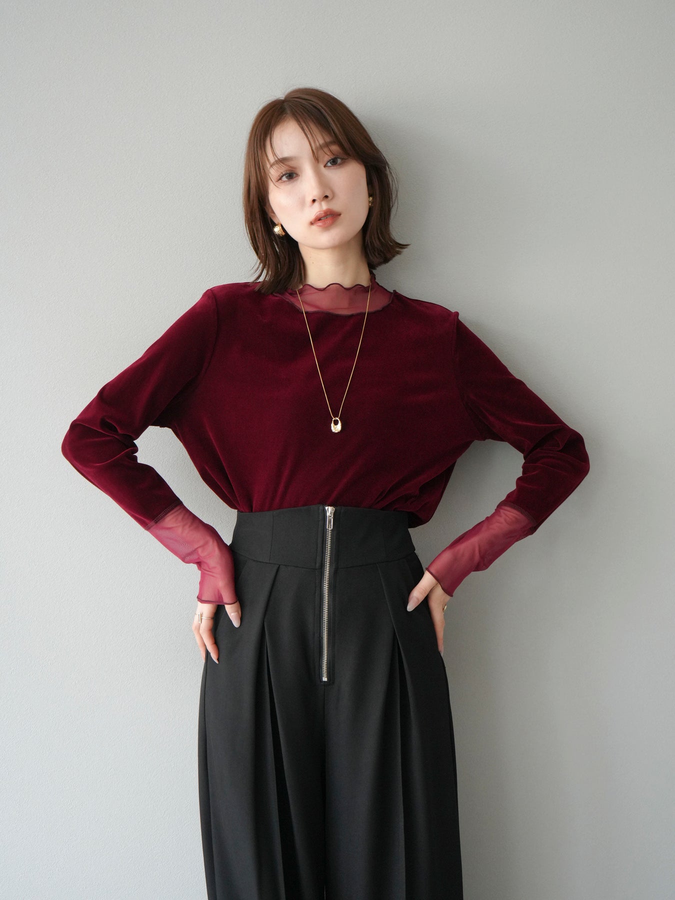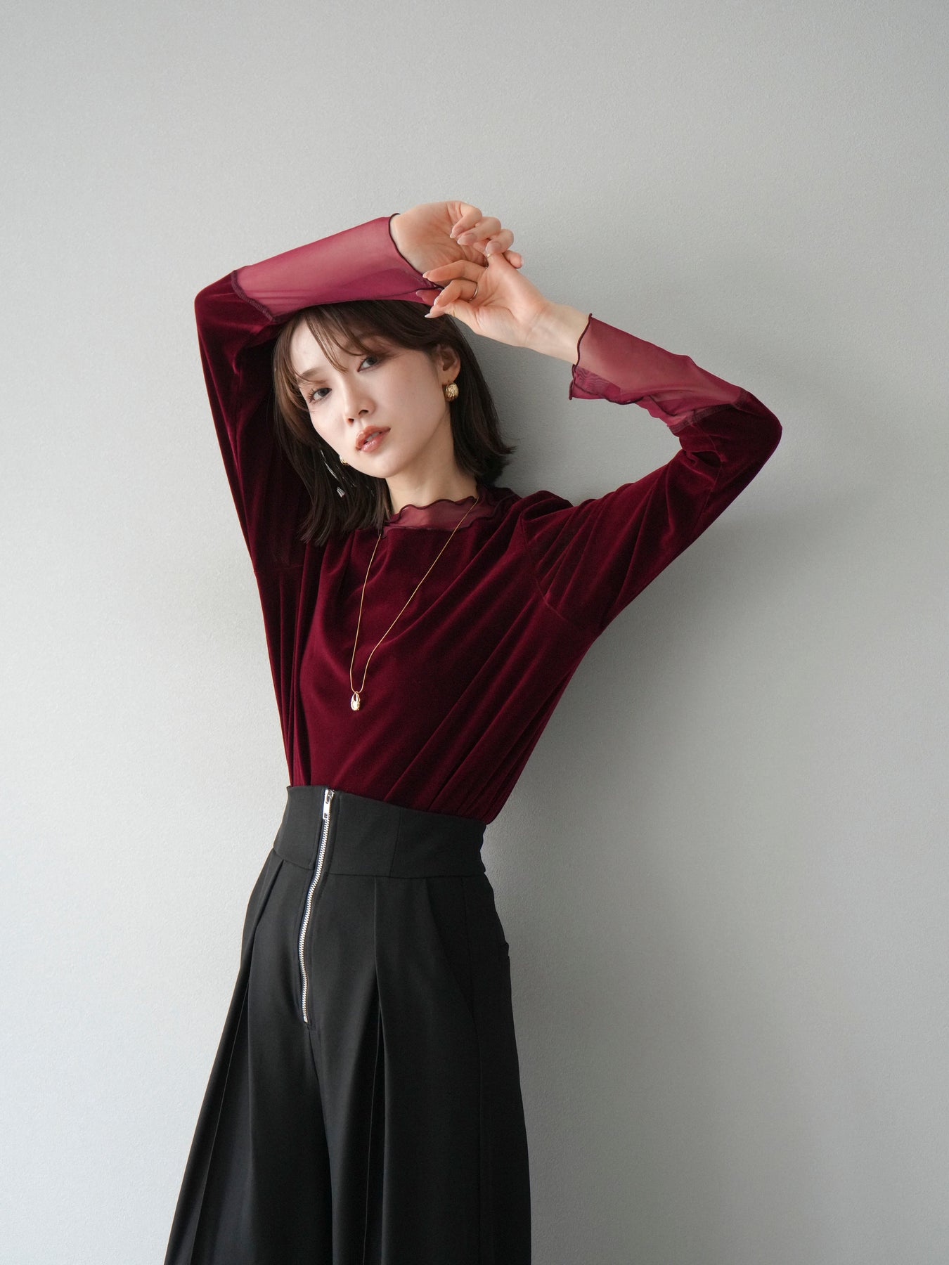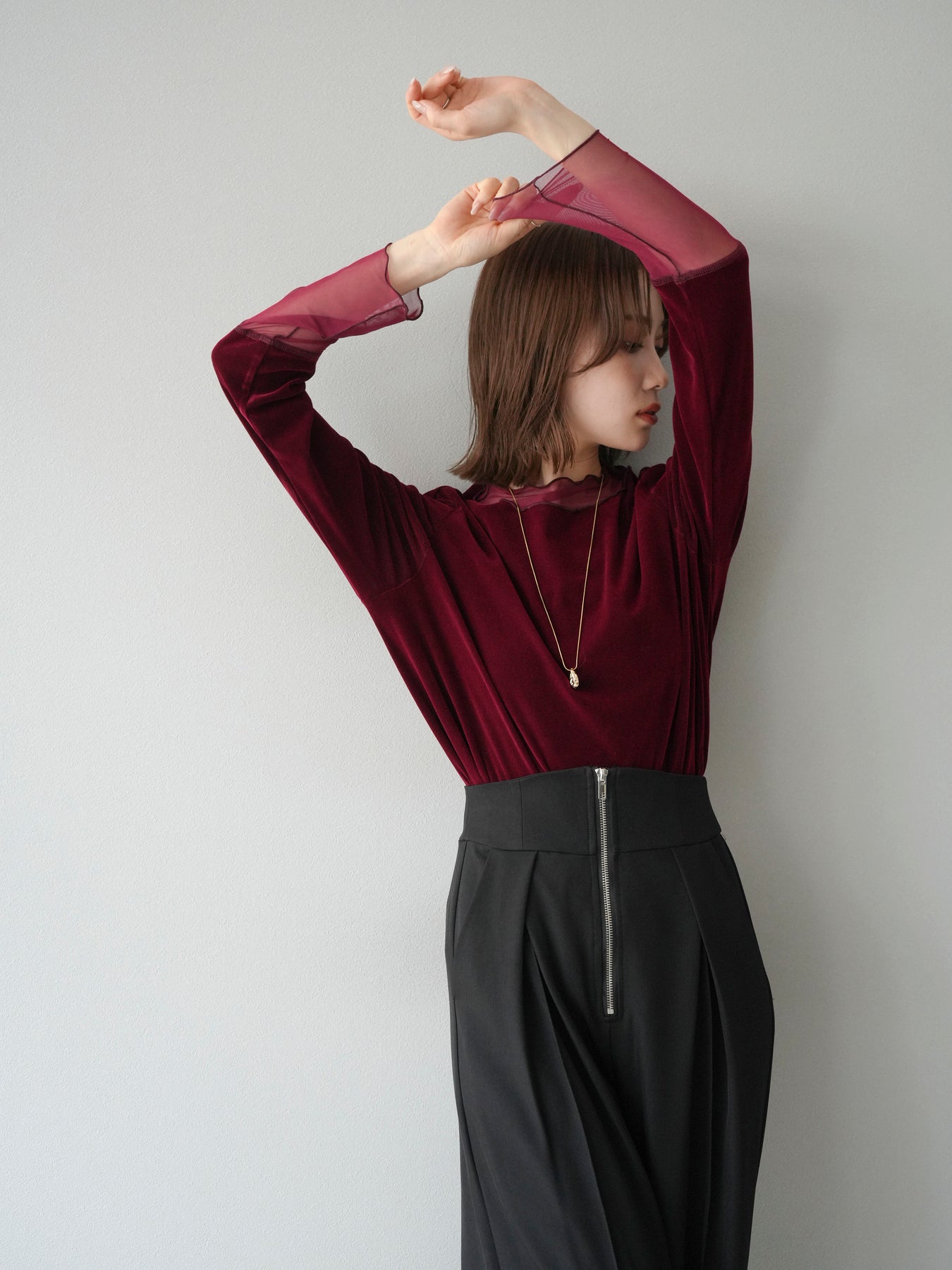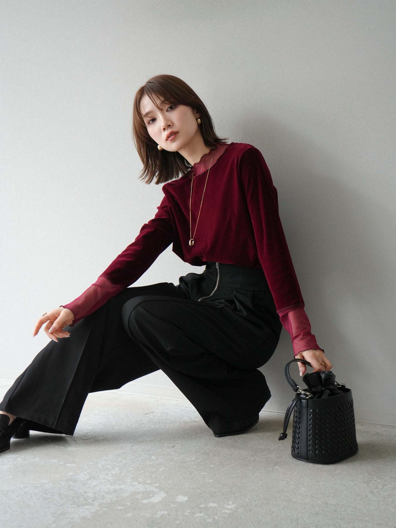 這款上衣採用亮澤天鵝絨與透視布料交替的醒目設計。天鵝絨的柔滑質感提升了季節感,袖口和領口的透視細節則營造出柔美休閒的造型。簡潔的輪廓可與各種下裝搭配,從半身裙到長褲,百搭百搭。它是百搭單品,單穿即可驚艷亮相,內搭夾克或開襟衫也同樣出色。 ※除下裝、吊帶背心(內衣)以外的商品均為標準品,不含內衣。