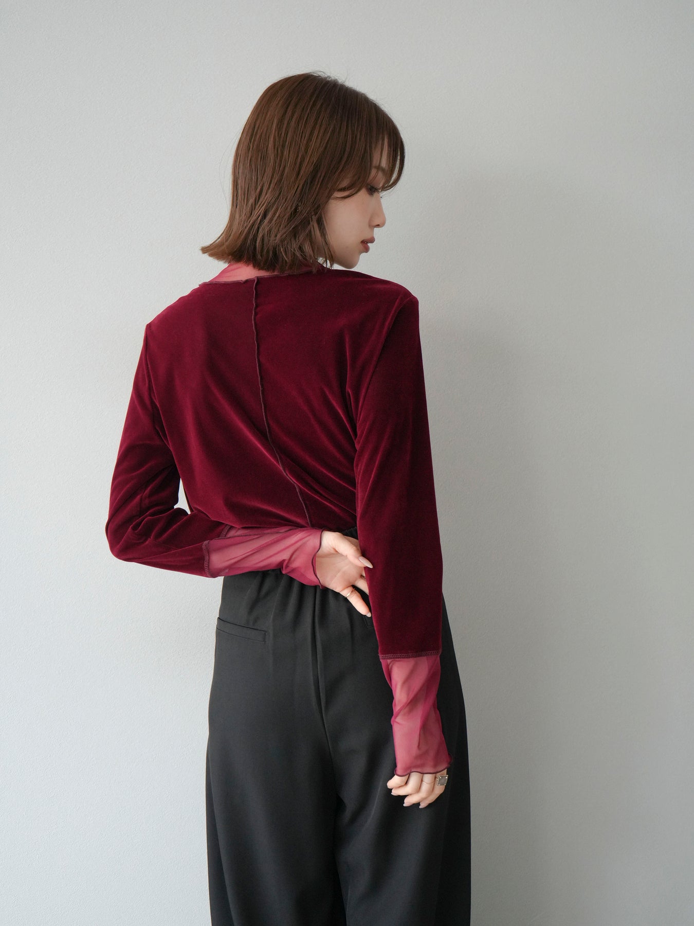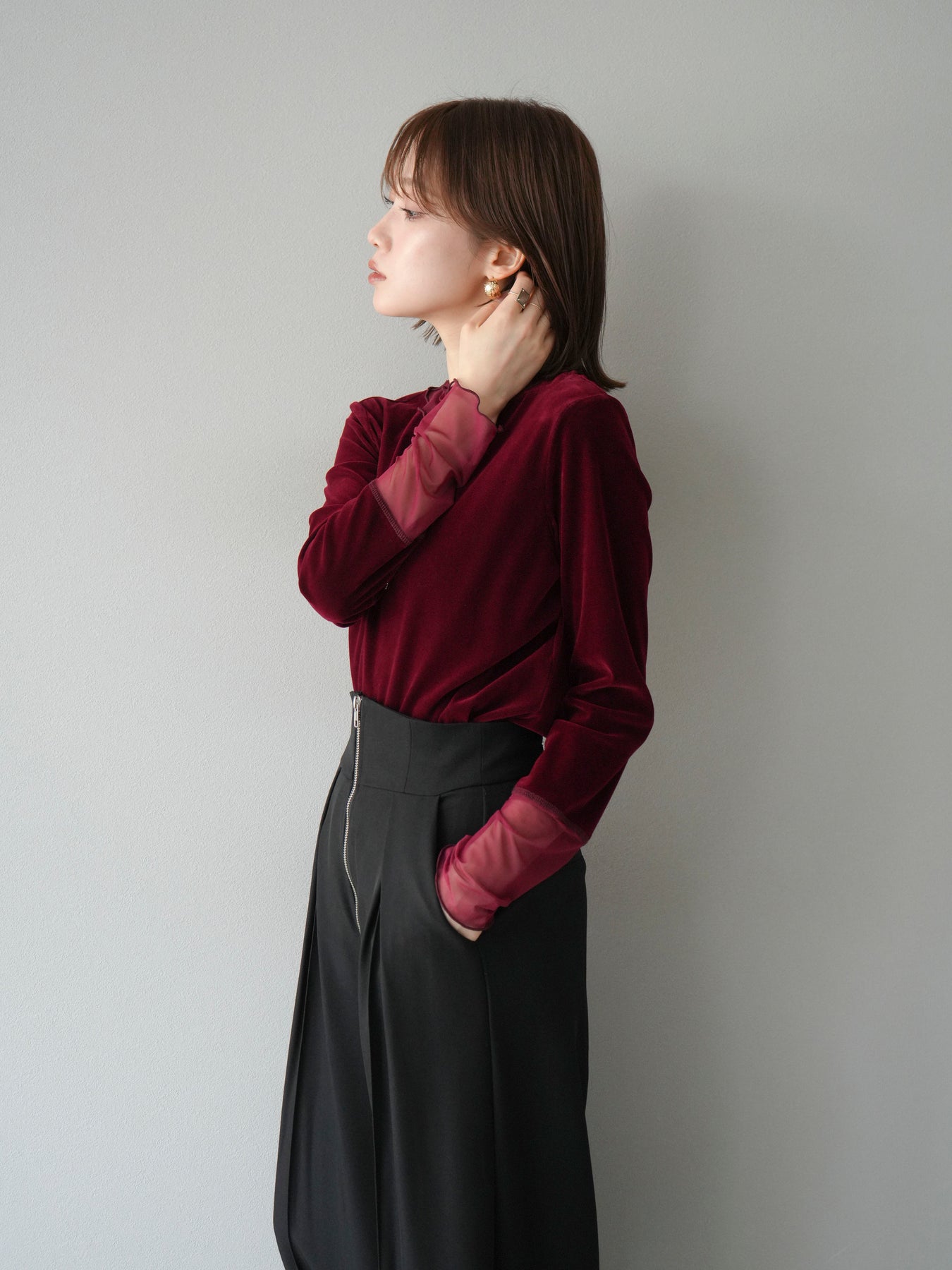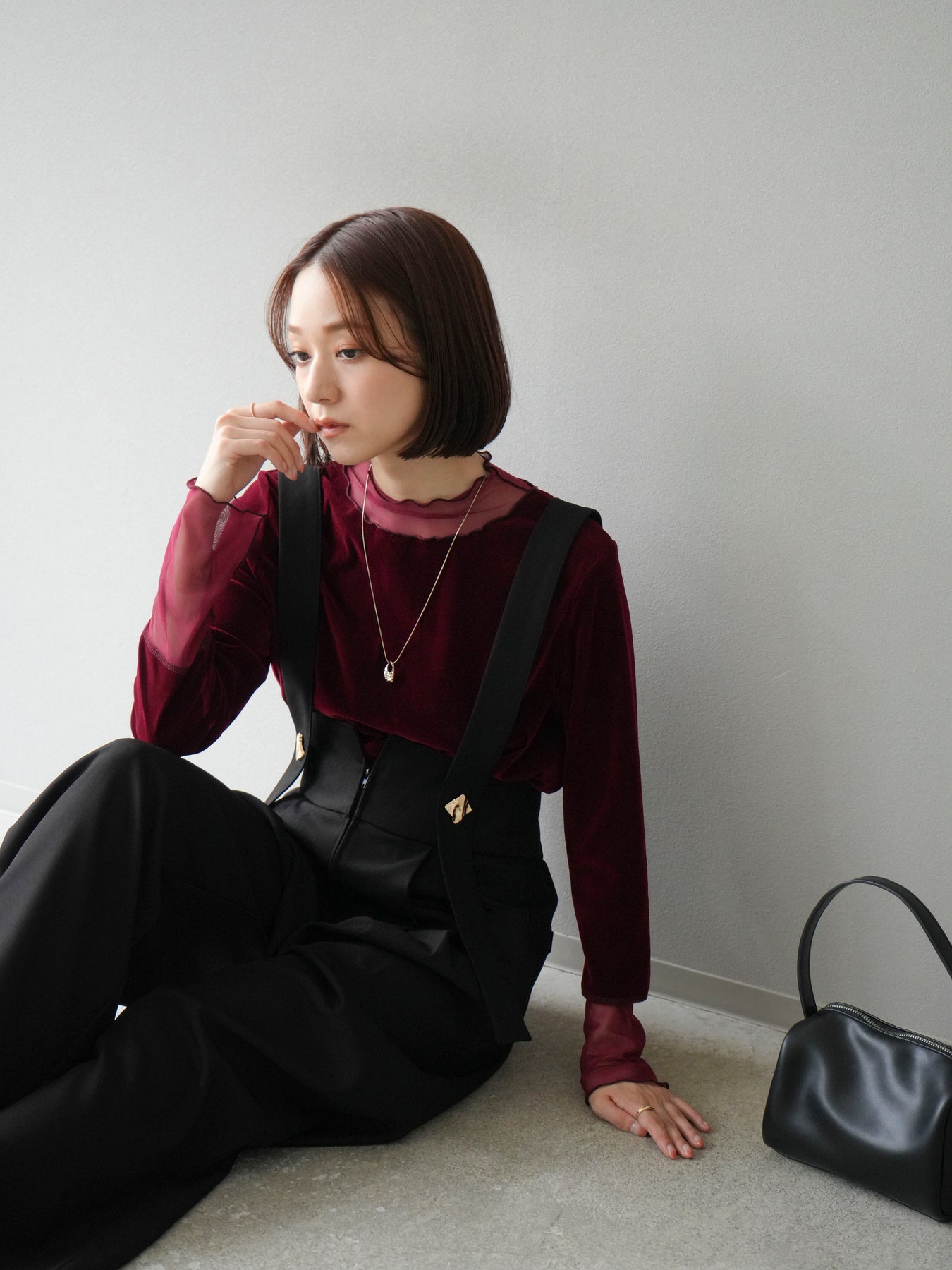 這款上衣採用亮澤天鵝絨與透視布料交替的醒目設計。天鵝絨的柔滑質感提升了季節感,袖口和領口的透視細節則營造出柔美休閒的造型。簡潔的輪廓可與各種下裝搭配,從半身裙到長褲,百搭百搭。它是百搭單品,單穿即可驚艷亮相,內搭夾克或開襟衫也同樣出色。 ※除下裝、吊帶背心(內衣)以外的商品均為標準品,不含內衣。