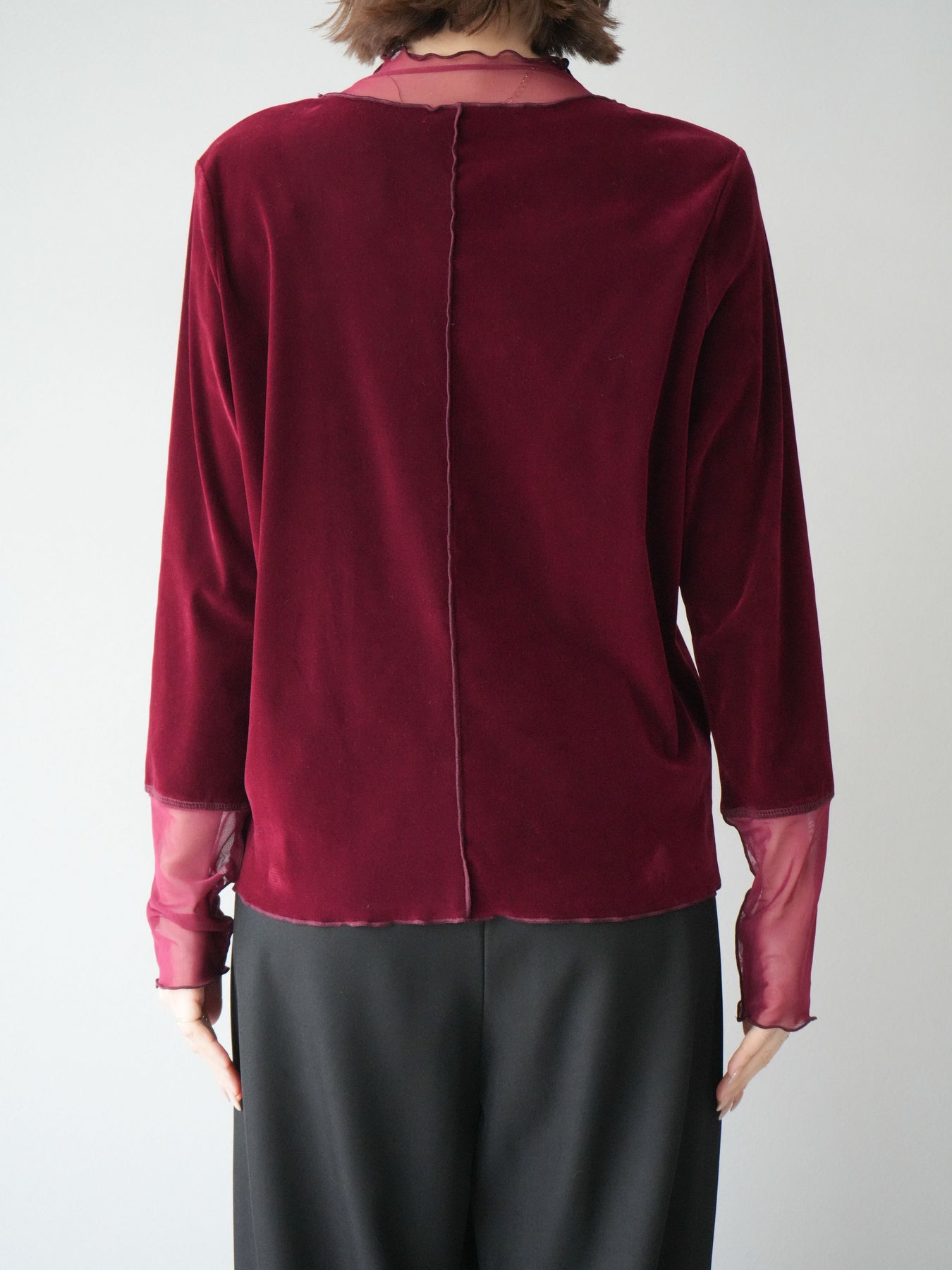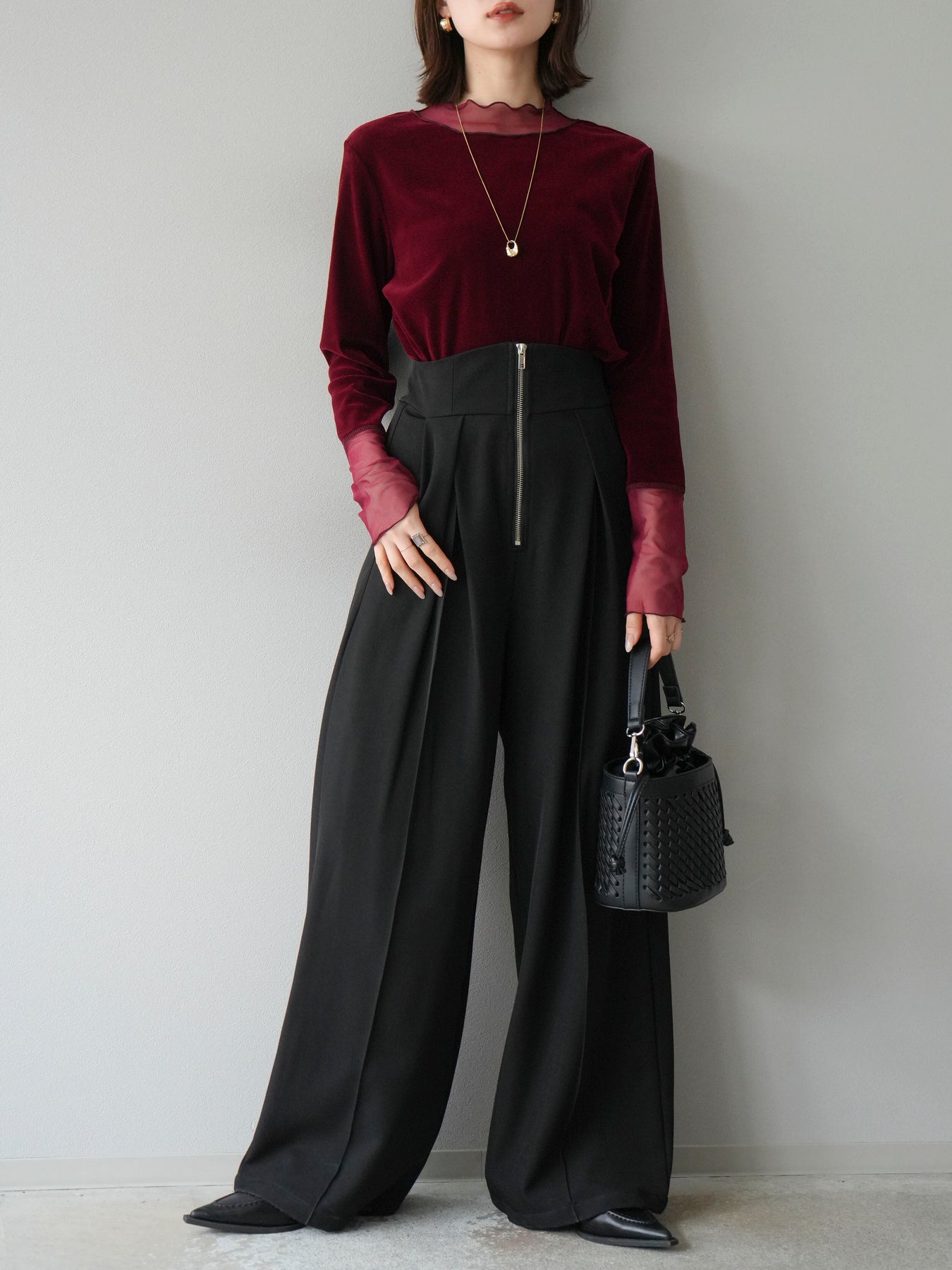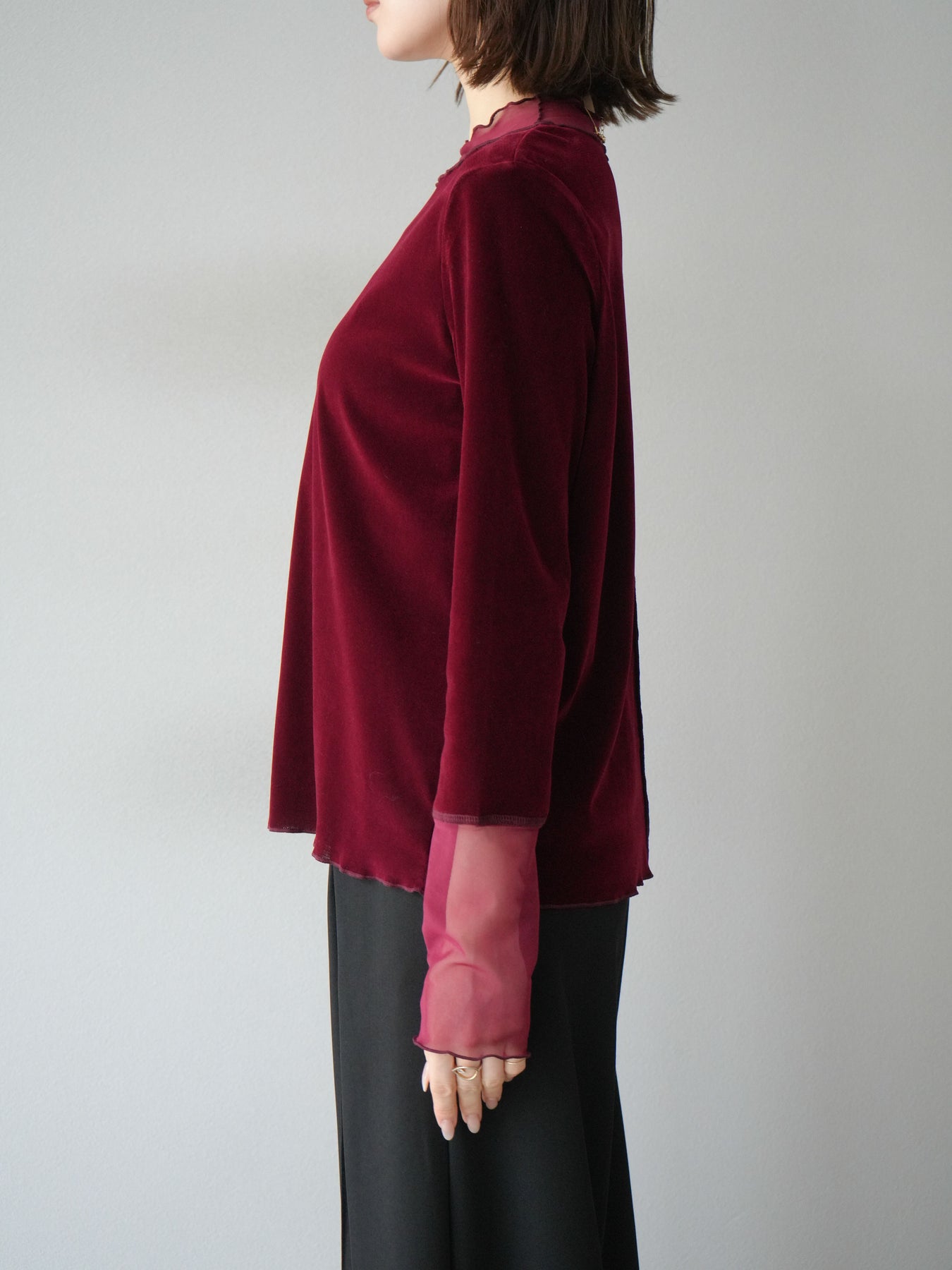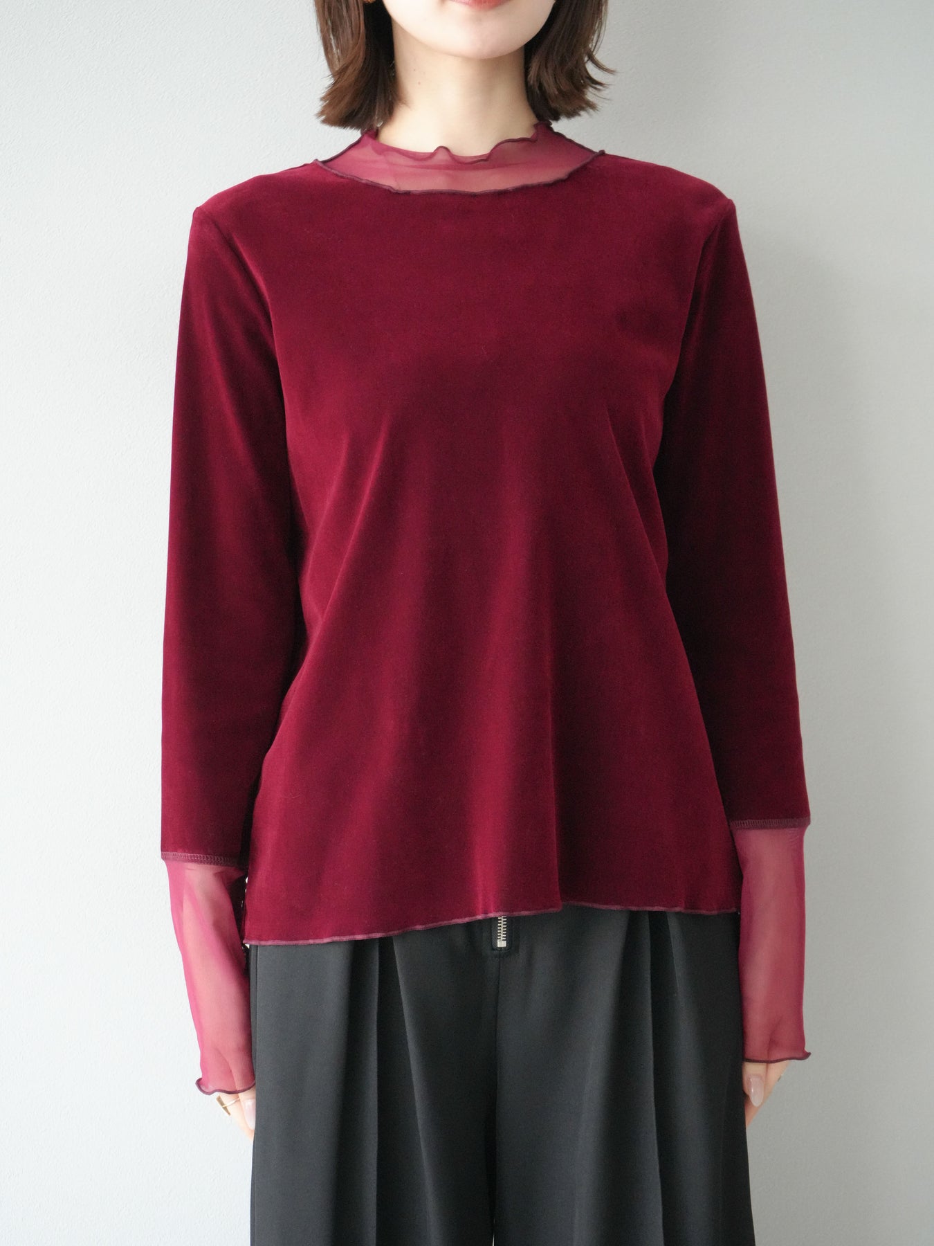 這款上衣採用亮澤天鵝絨與透視布料交替的醒目設計。天鵝絨的柔滑質感提升了季節感,袖口和領口的透視細節則營造出柔美休閒的造型。簡潔的輪廓可與各種下裝搭配,從半身裙到長褲,百搭百搭。它是百搭單品,單穿即可驚艷亮相,內搭夾克或開襟衫也同樣出色。 ※除下裝、吊帶背心(內衣)以外的商品均為標準品,不含內衣。