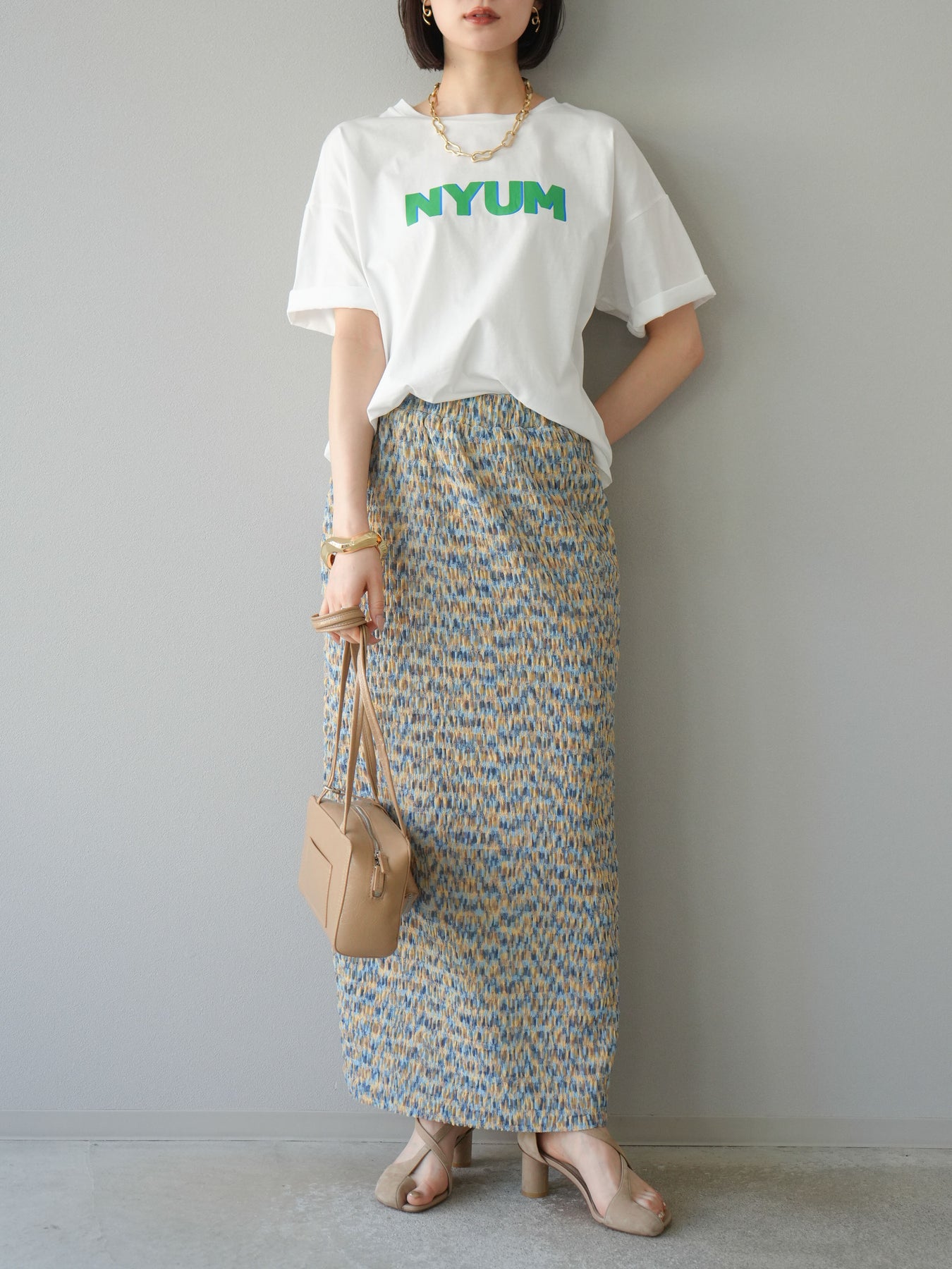這款印花T卹採用乾爽棉質布料製成,正面飾有醒目的「NYUM」標誌。清爽滑順的質感即使在汗濕的季節也能帶來舒適感受。適度寬鬆的輪廓營造出輕鬆幹練的氣質。每種顏色都搭配不同的標誌配色,簡約又不失俏皮感。這款T卹百搭百搭,可搭配牛仔褲或半身裙等日常單品。 *除下裝和吊帶背心(內衣)外,其他商品均不含內衣。