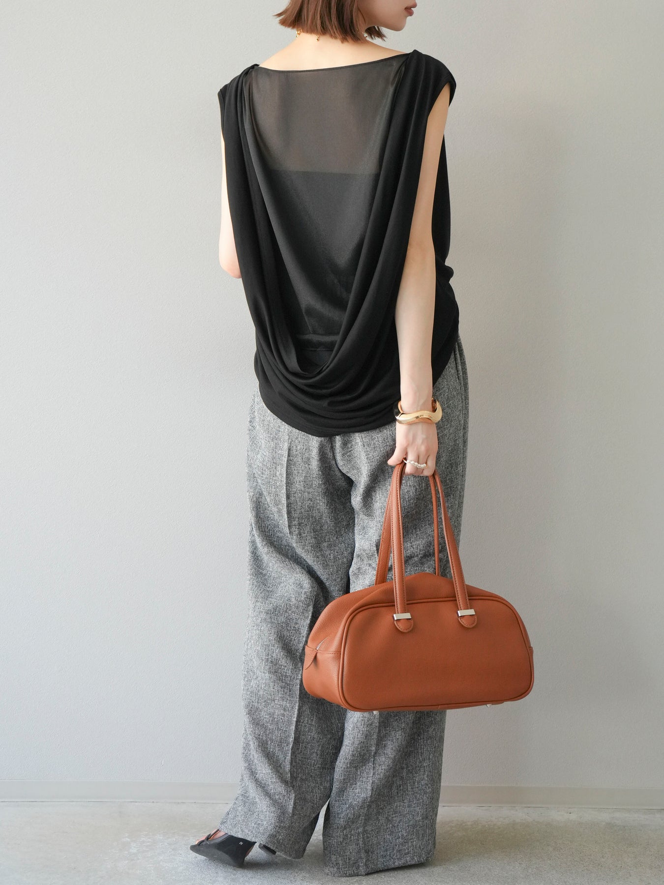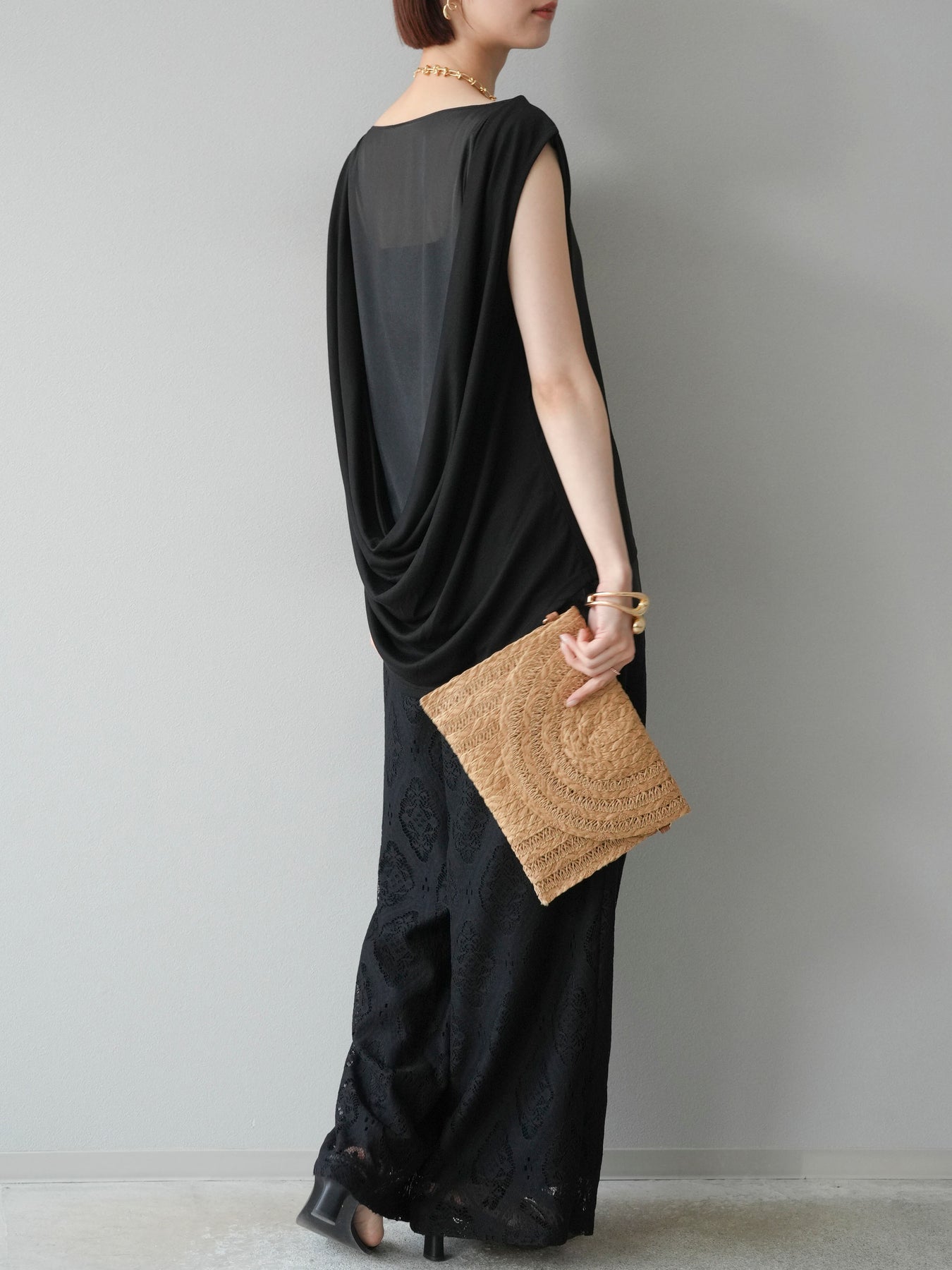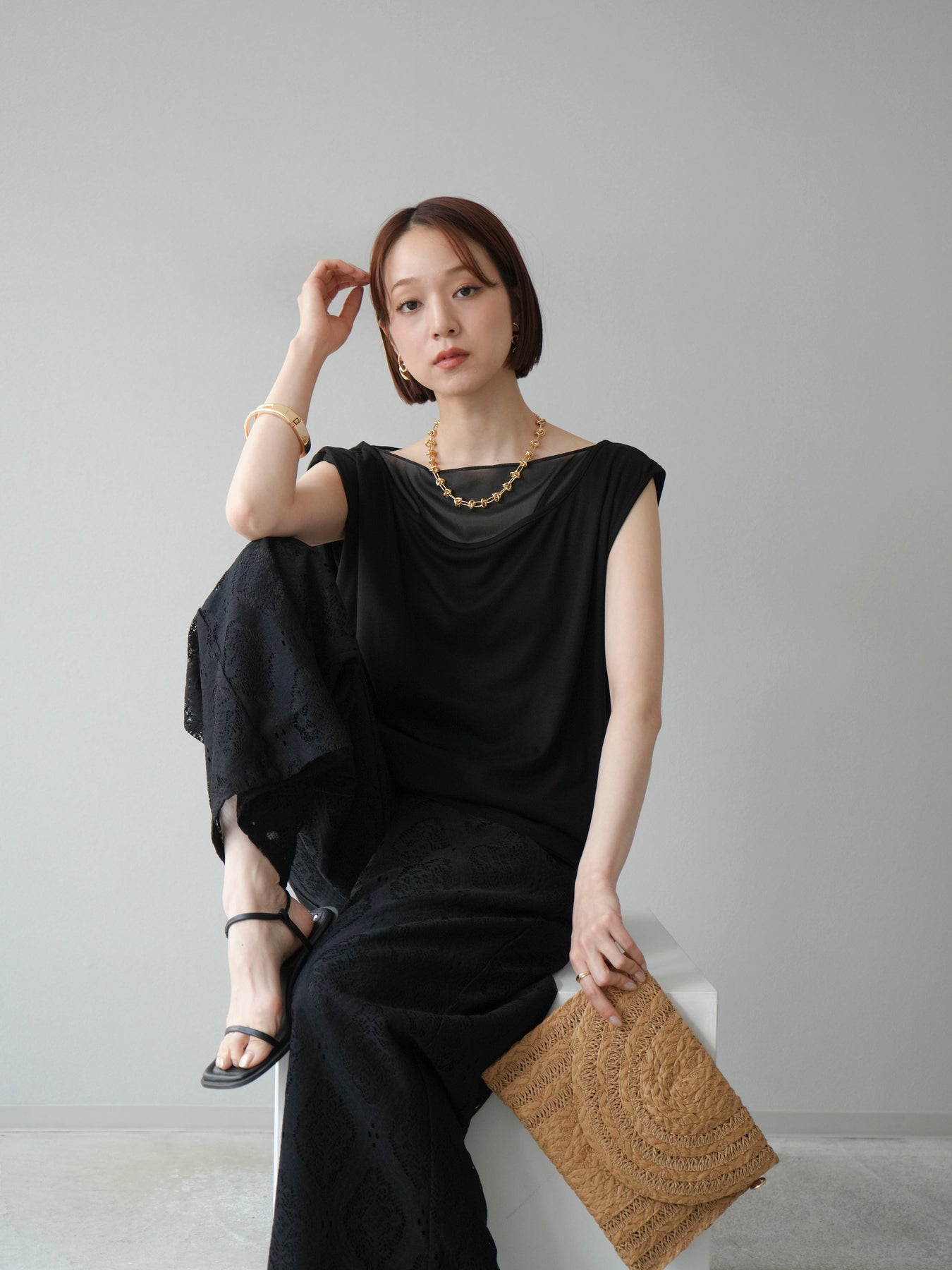 雙向垂墜上衣,凸顯您的女性氣質。 正面簡單的透明設計給人一種精緻的印象,而背面寬大的垂墜則增添了美麗的點綴。 雙向設計讓您可以任意配戴,提供您多種造型選擇。 材質柔軟垂墜,穿著輕盈舒適。 ※除下裝、吊帶背心(內衣)以外的商品均不含內衣。