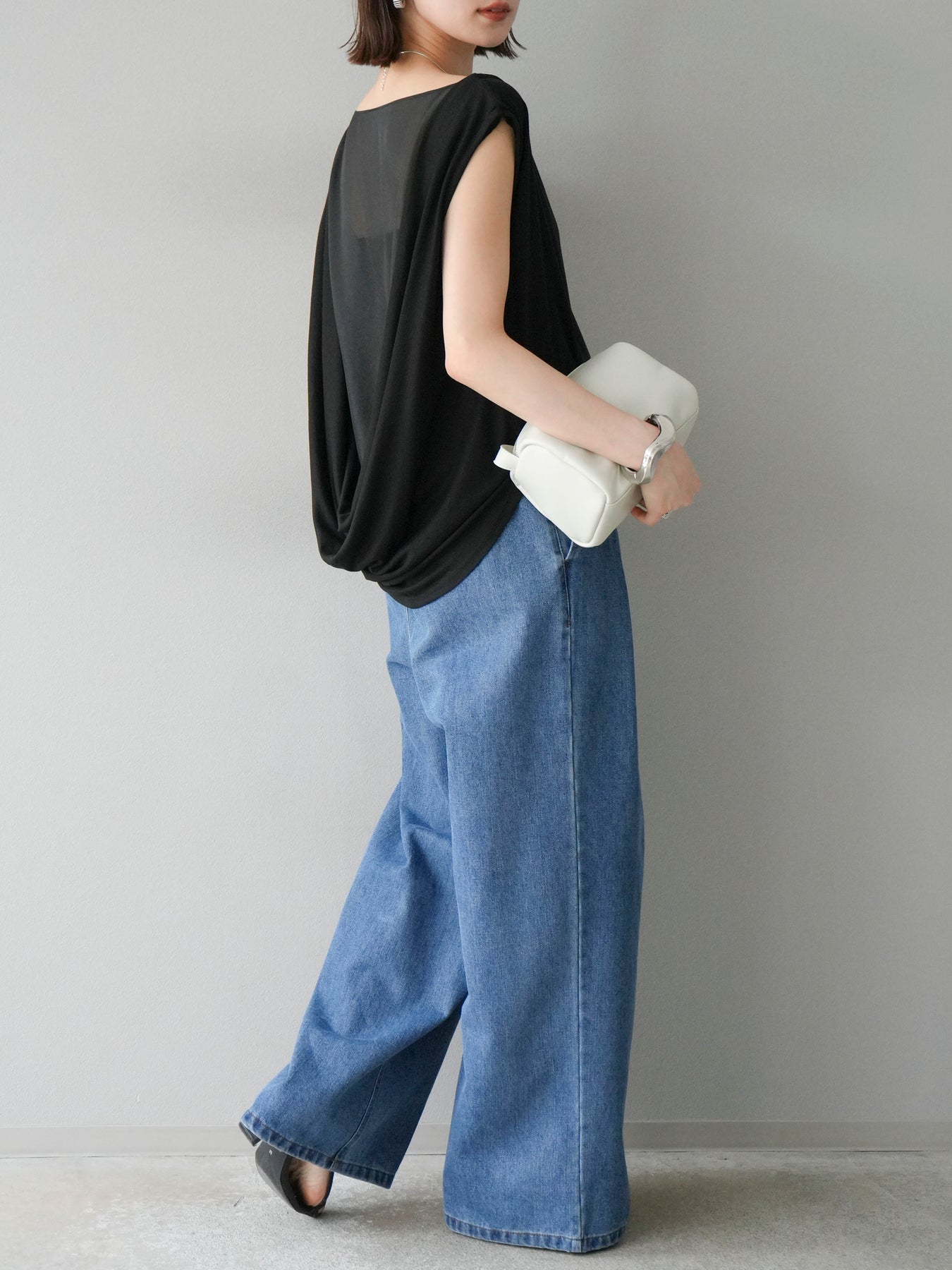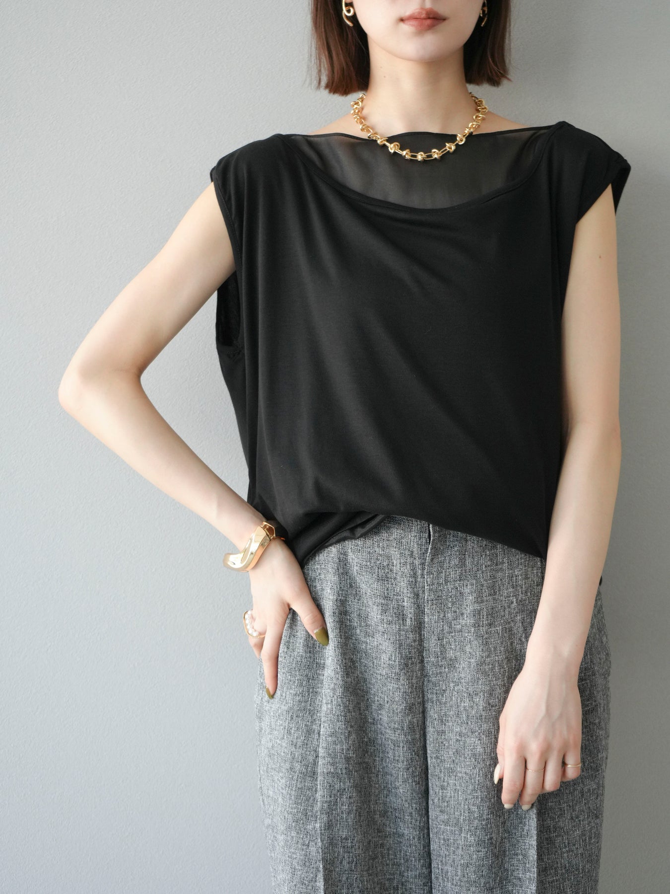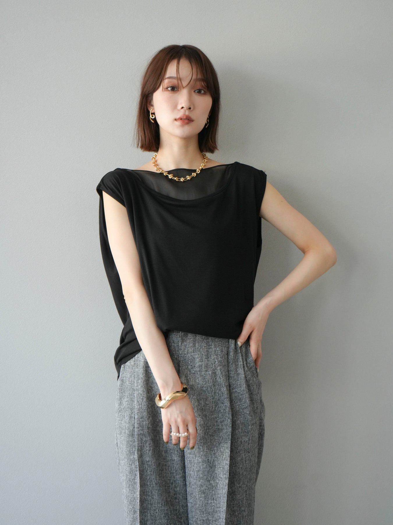 雙向垂墜上衣,凸顯您的女性氣質。 正面簡單的透明設計給人一種精緻的印象,而背面寬大的垂墜則增添了美麗的點綴。 雙向設計讓您可以任意配戴,提供您多種造型選擇。 材質柔軟垂墜,穿著輕盈舒適。 ※除下裝、吊帶背心(內衣)以外的商品均不含內衣。