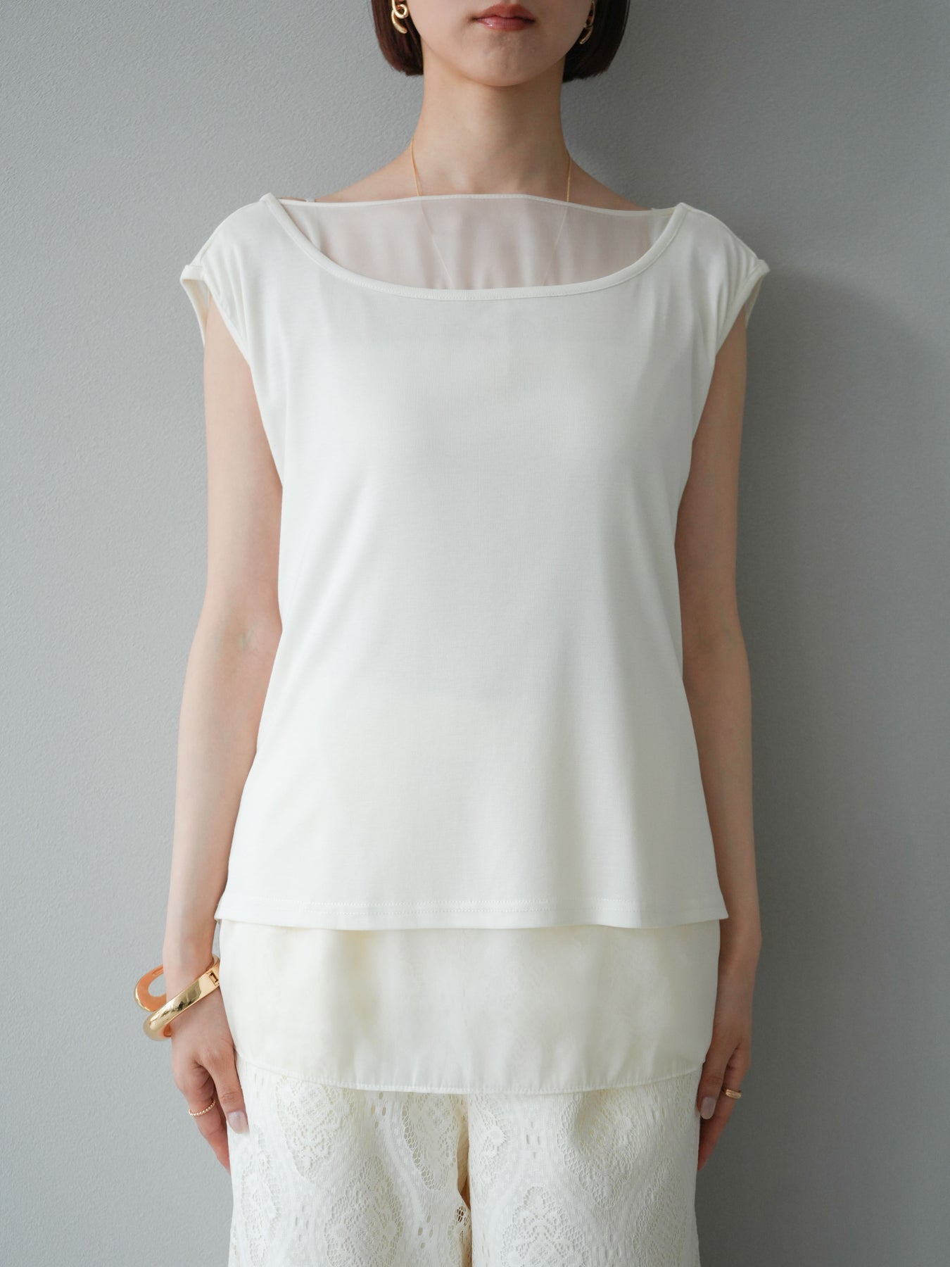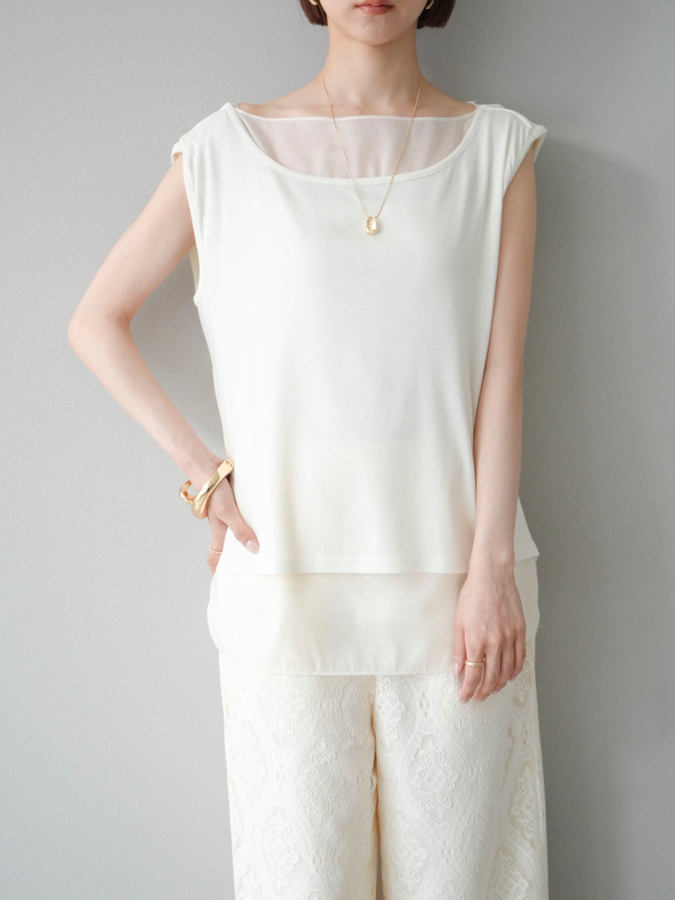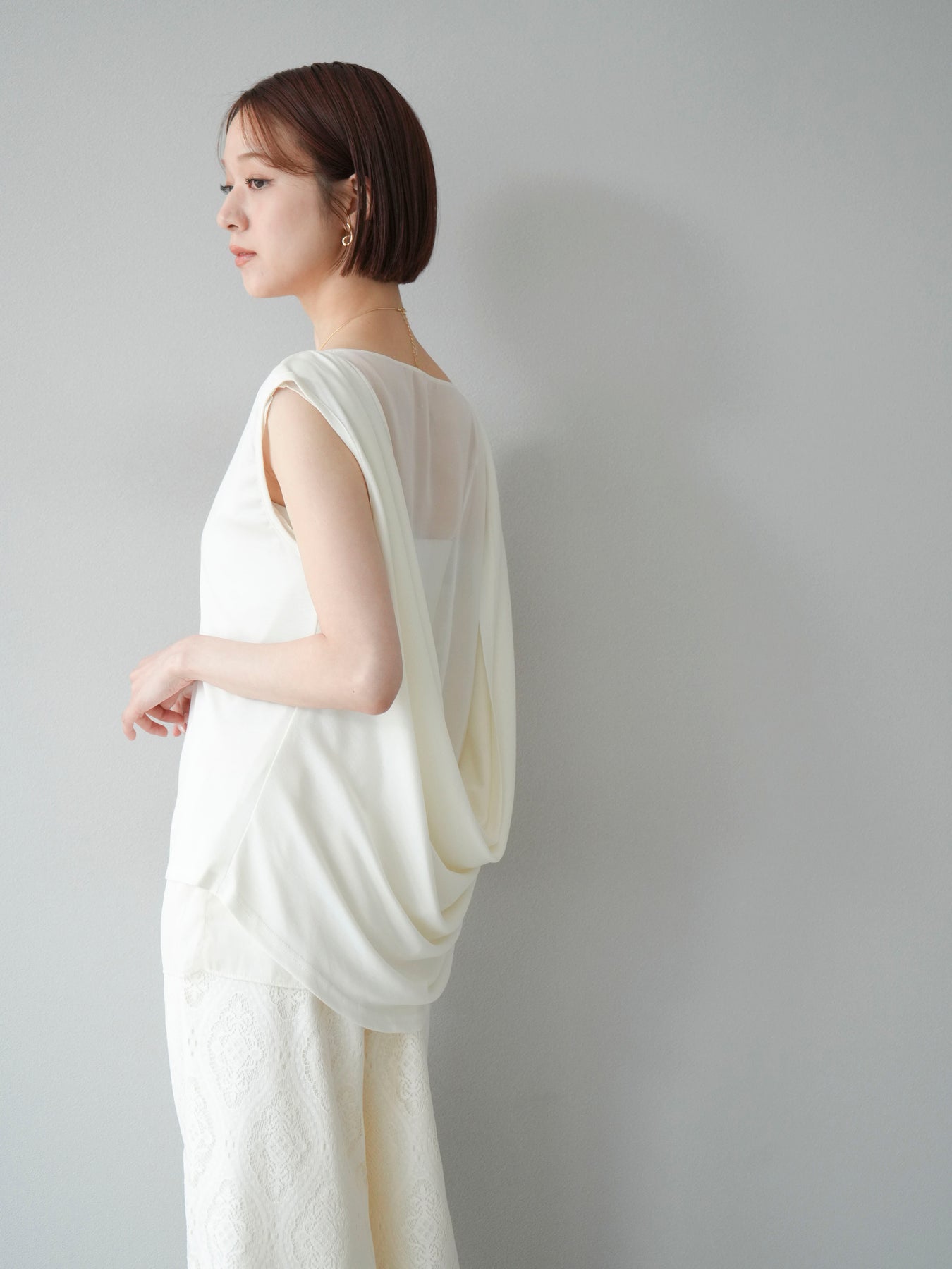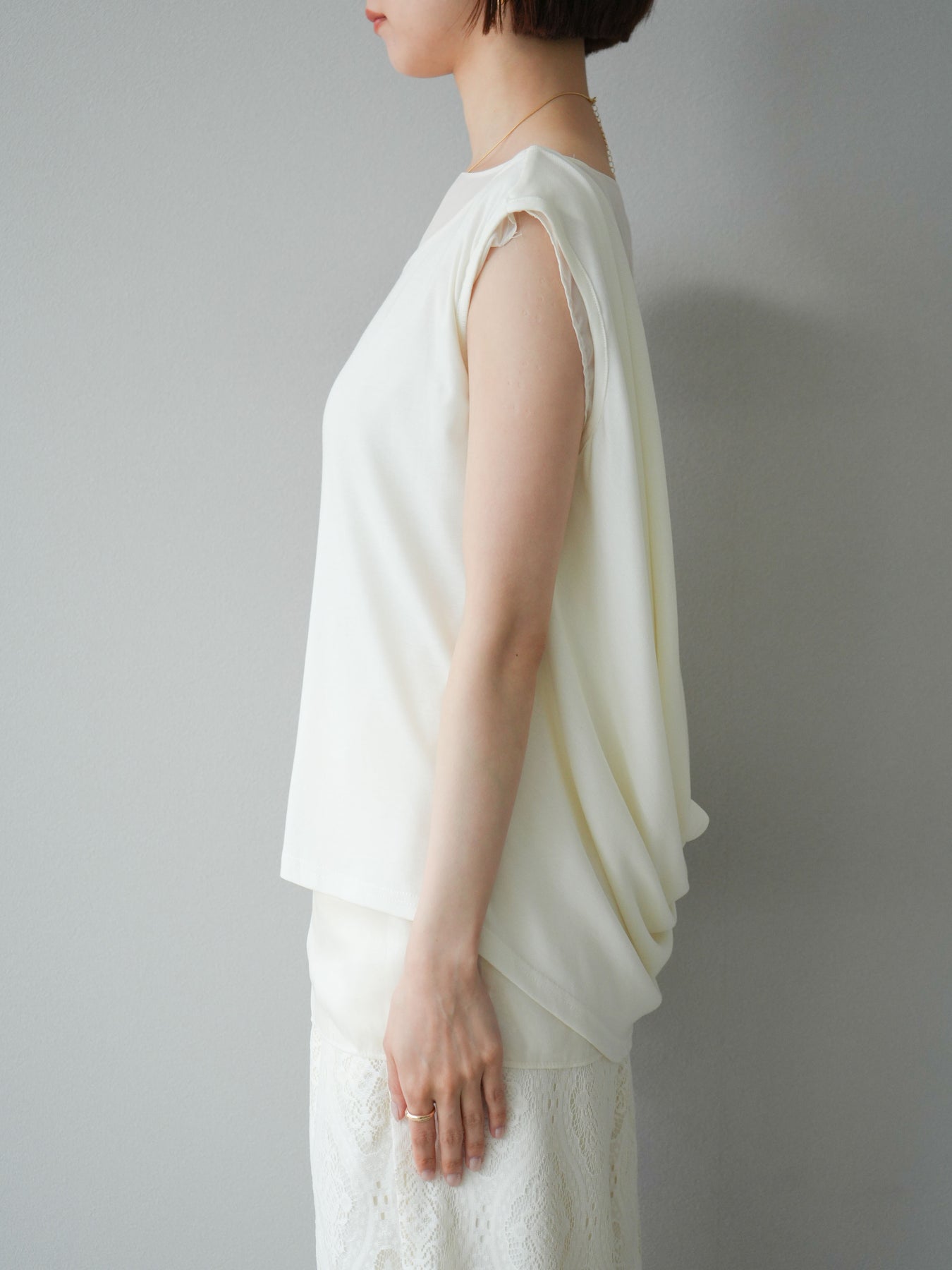 [預訂] 雙向透視多層垂墜上衣/象牙色