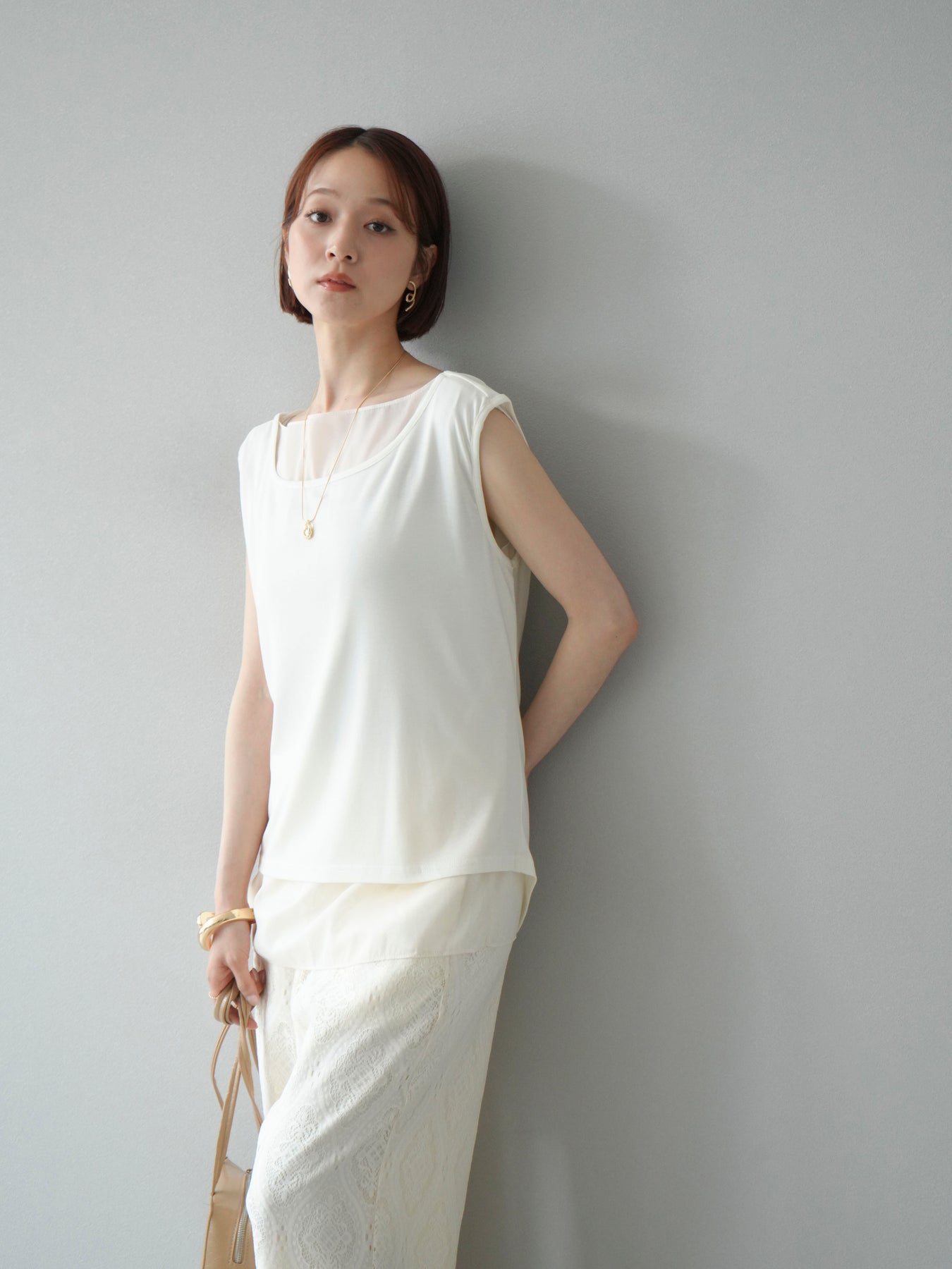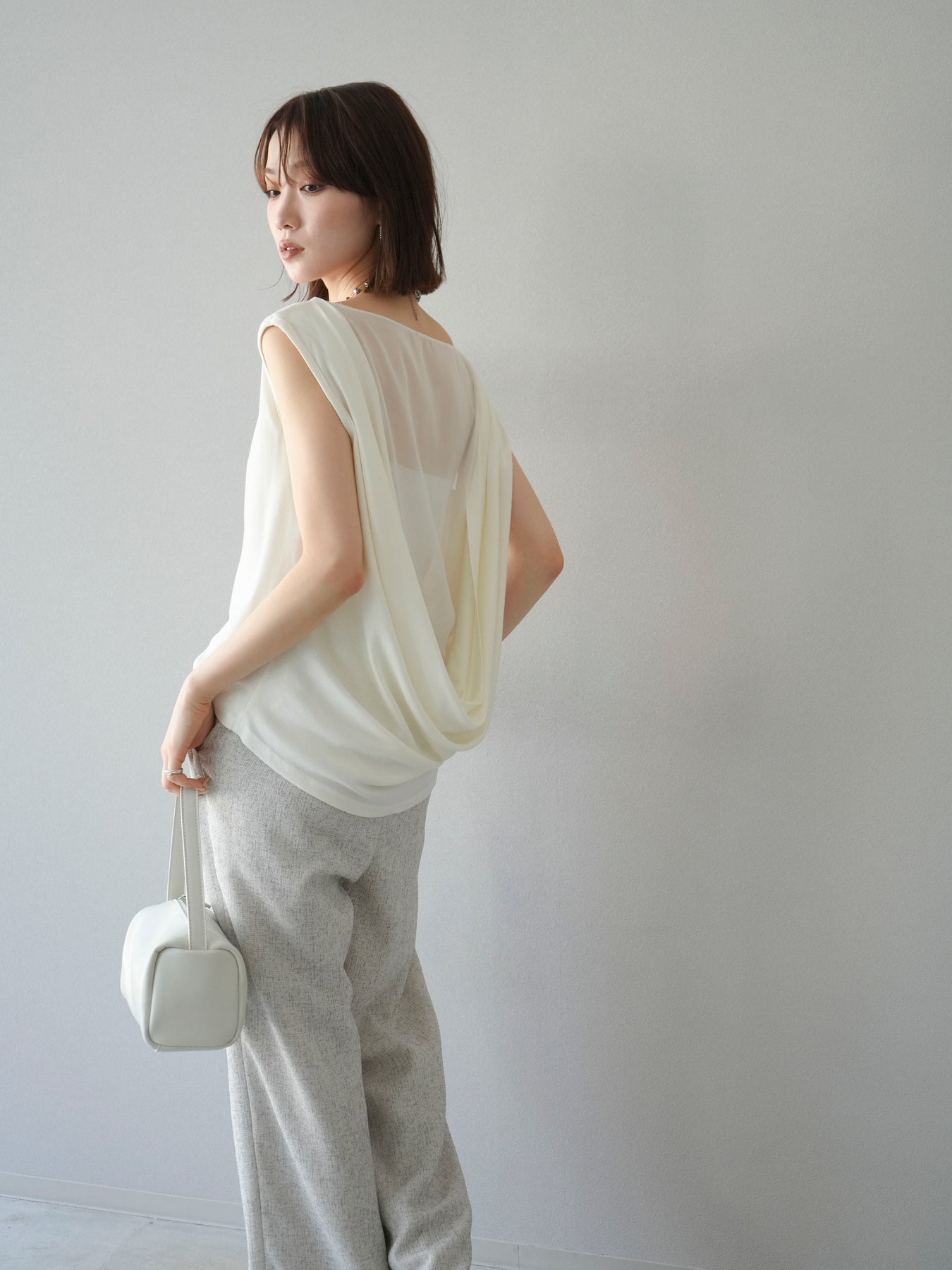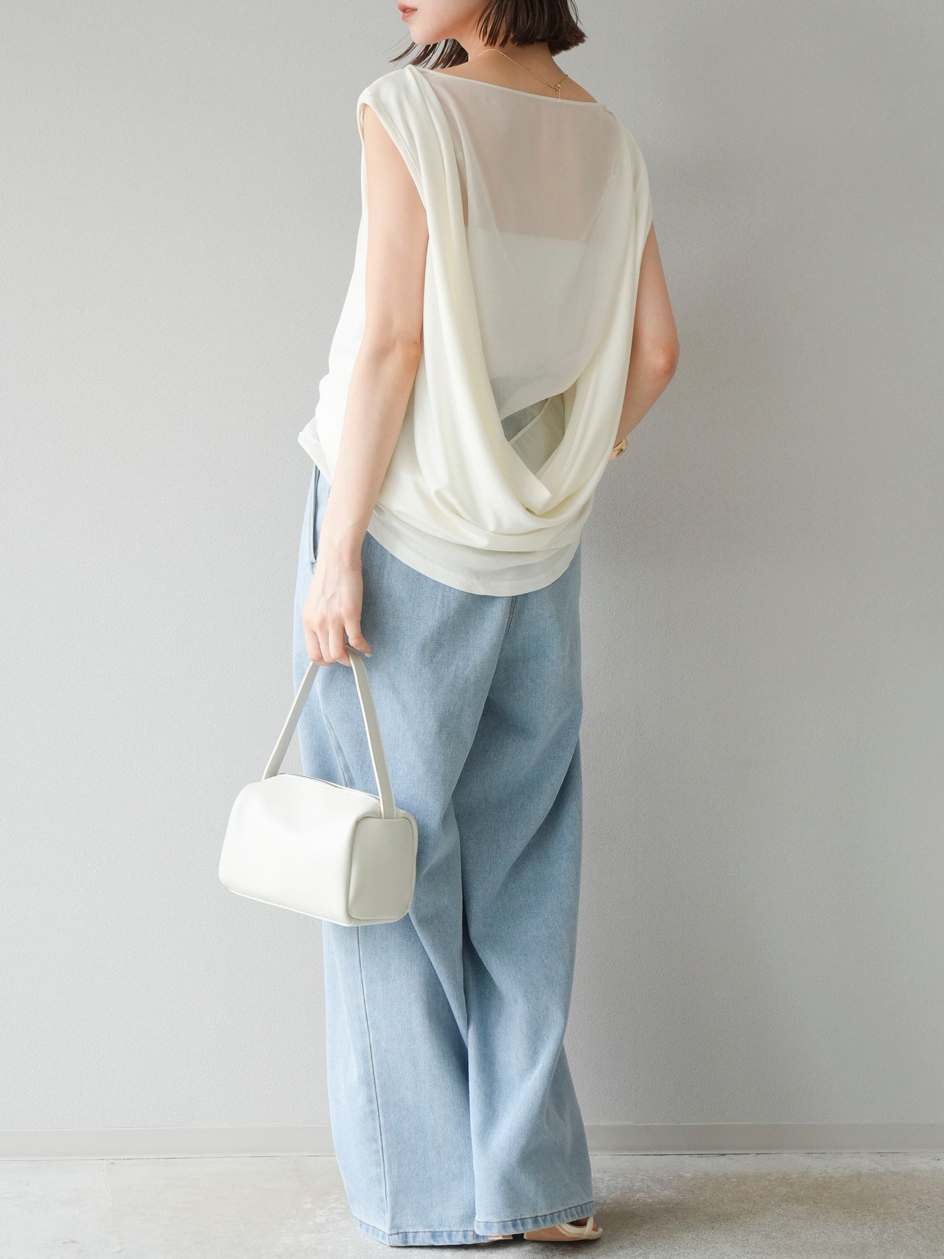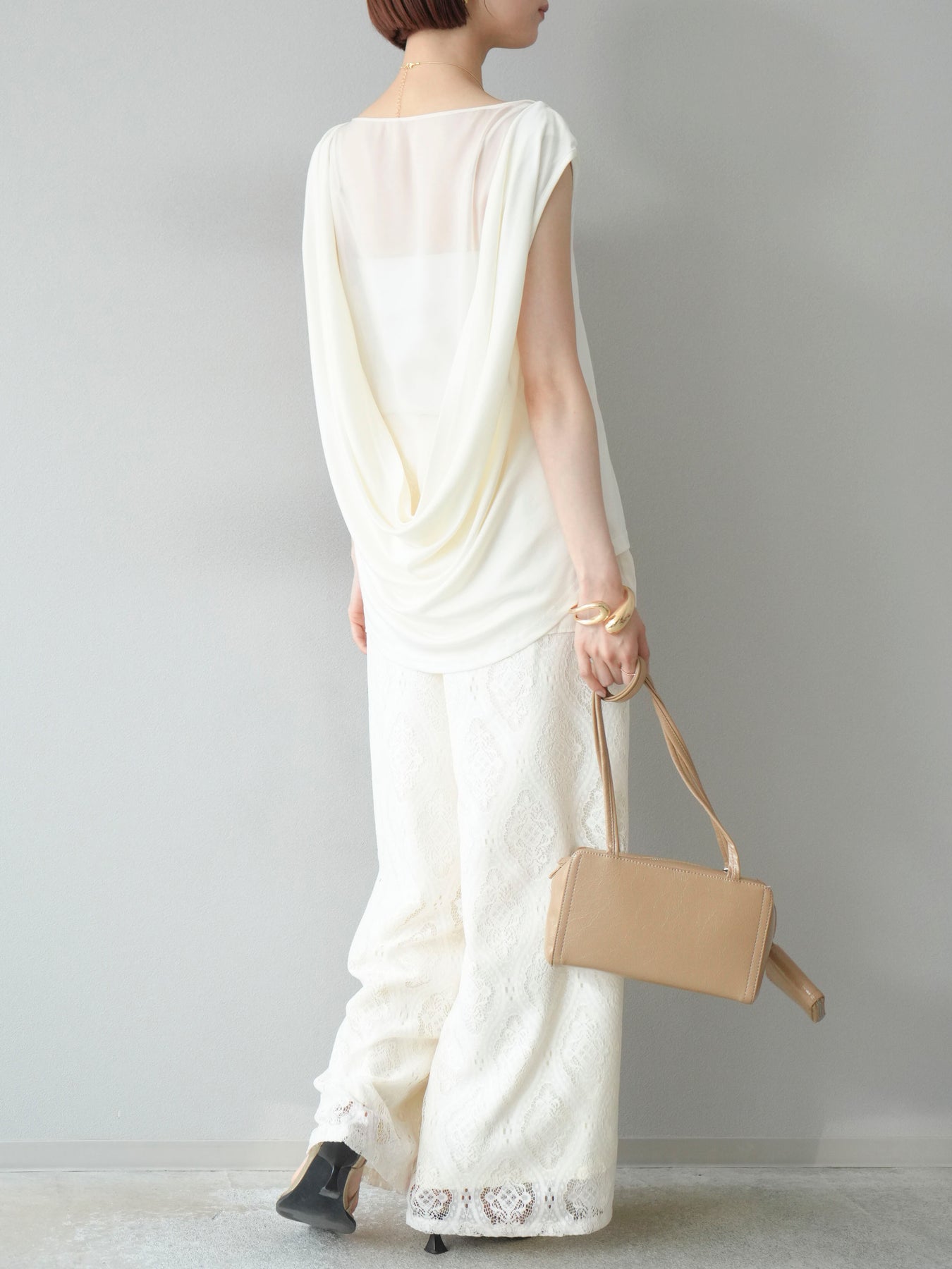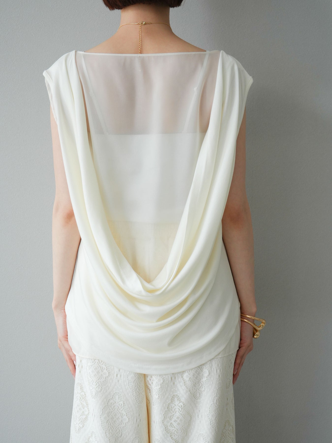 [預訂] 雙向透視多層垂墜上衣/象牙色