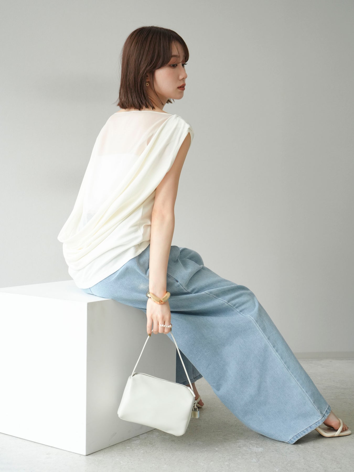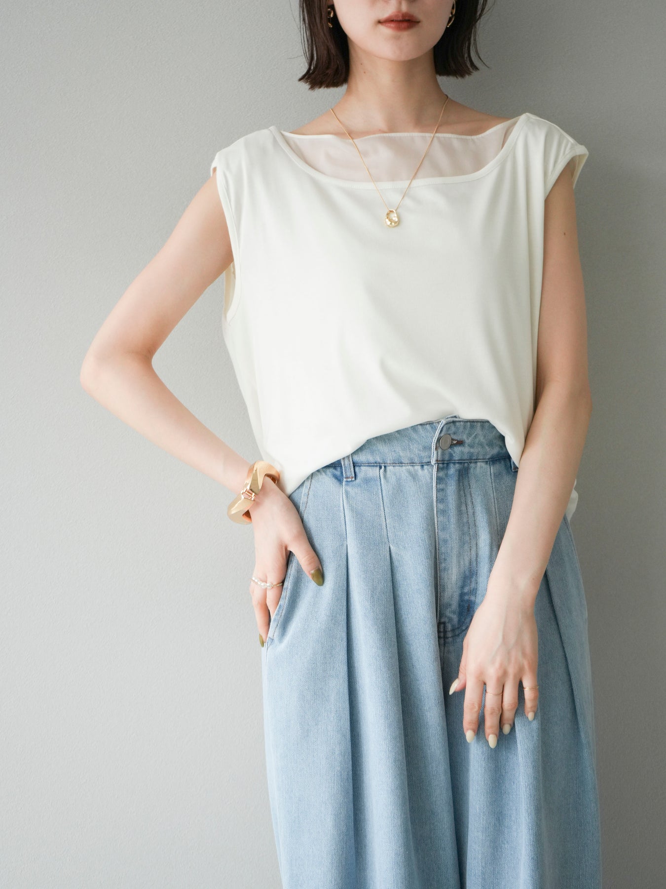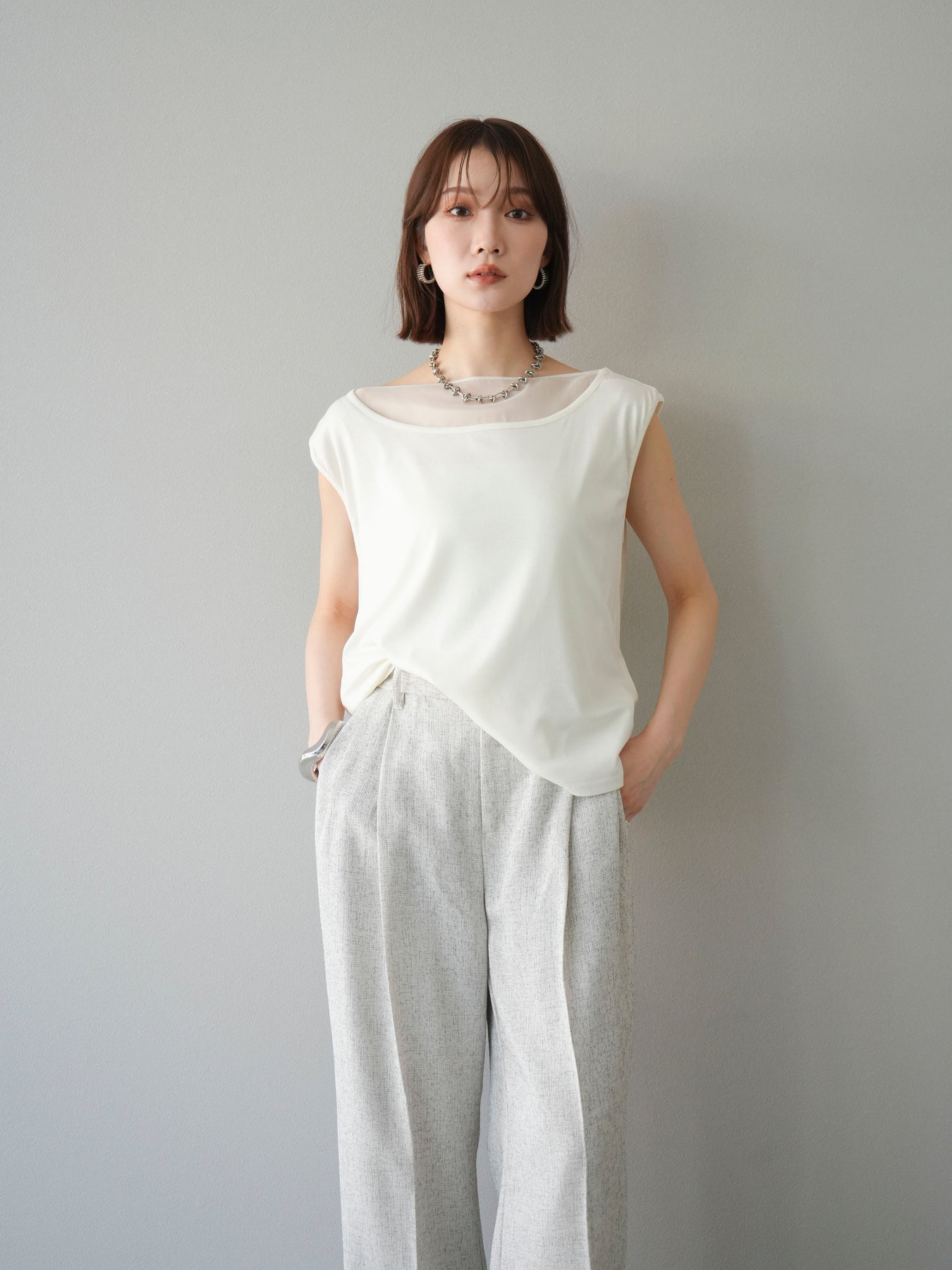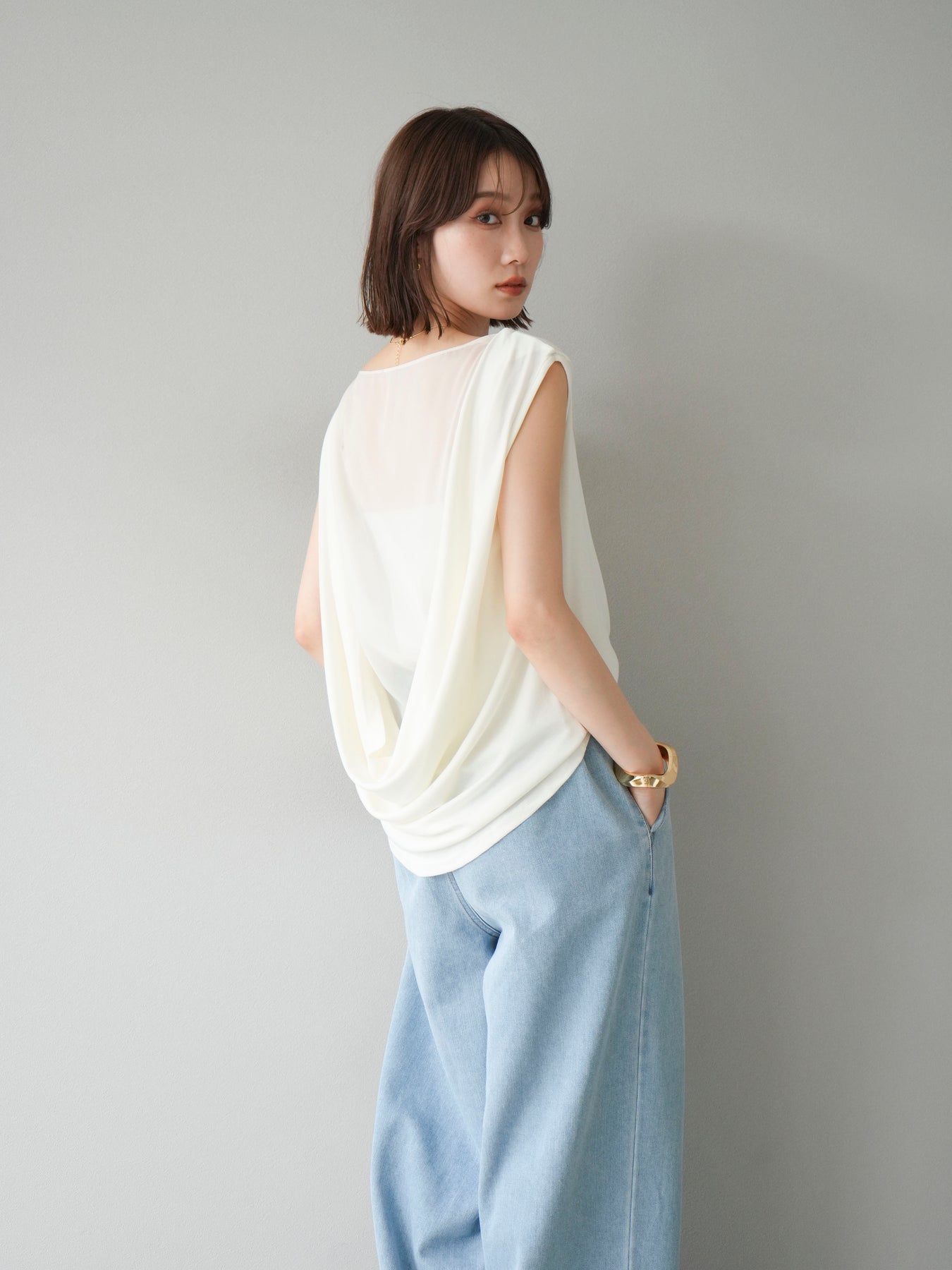 [預訂] 雙向透視多層垂墜上衣/象牙色