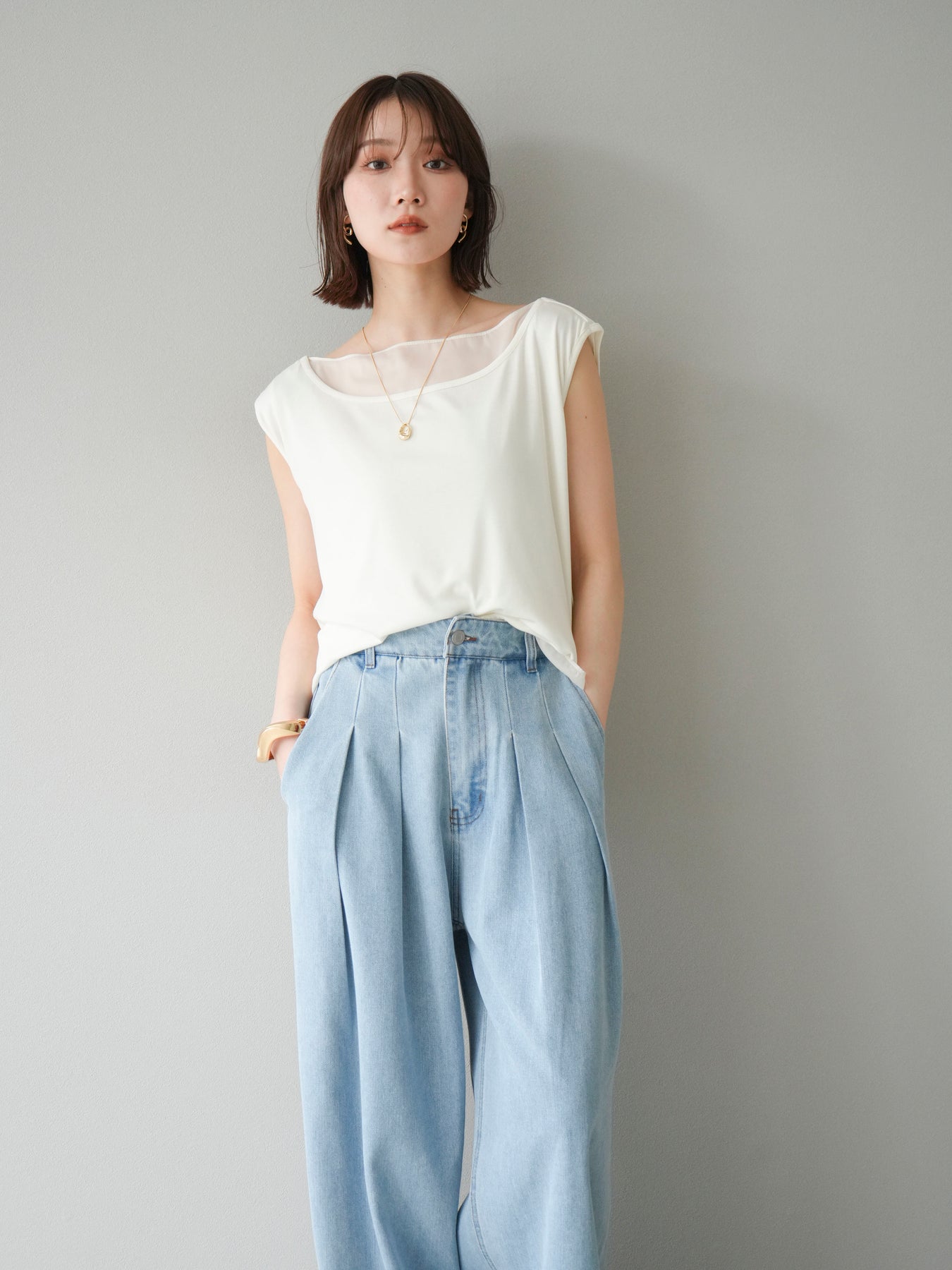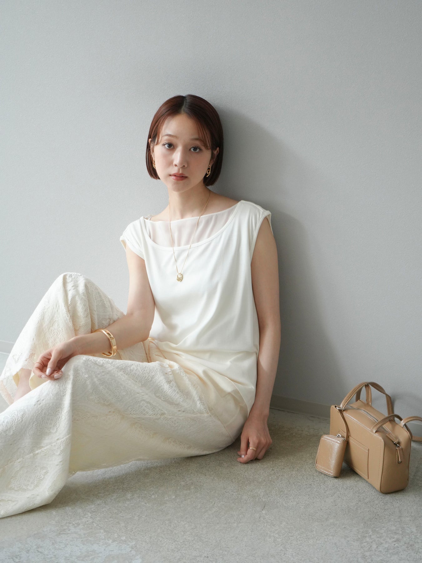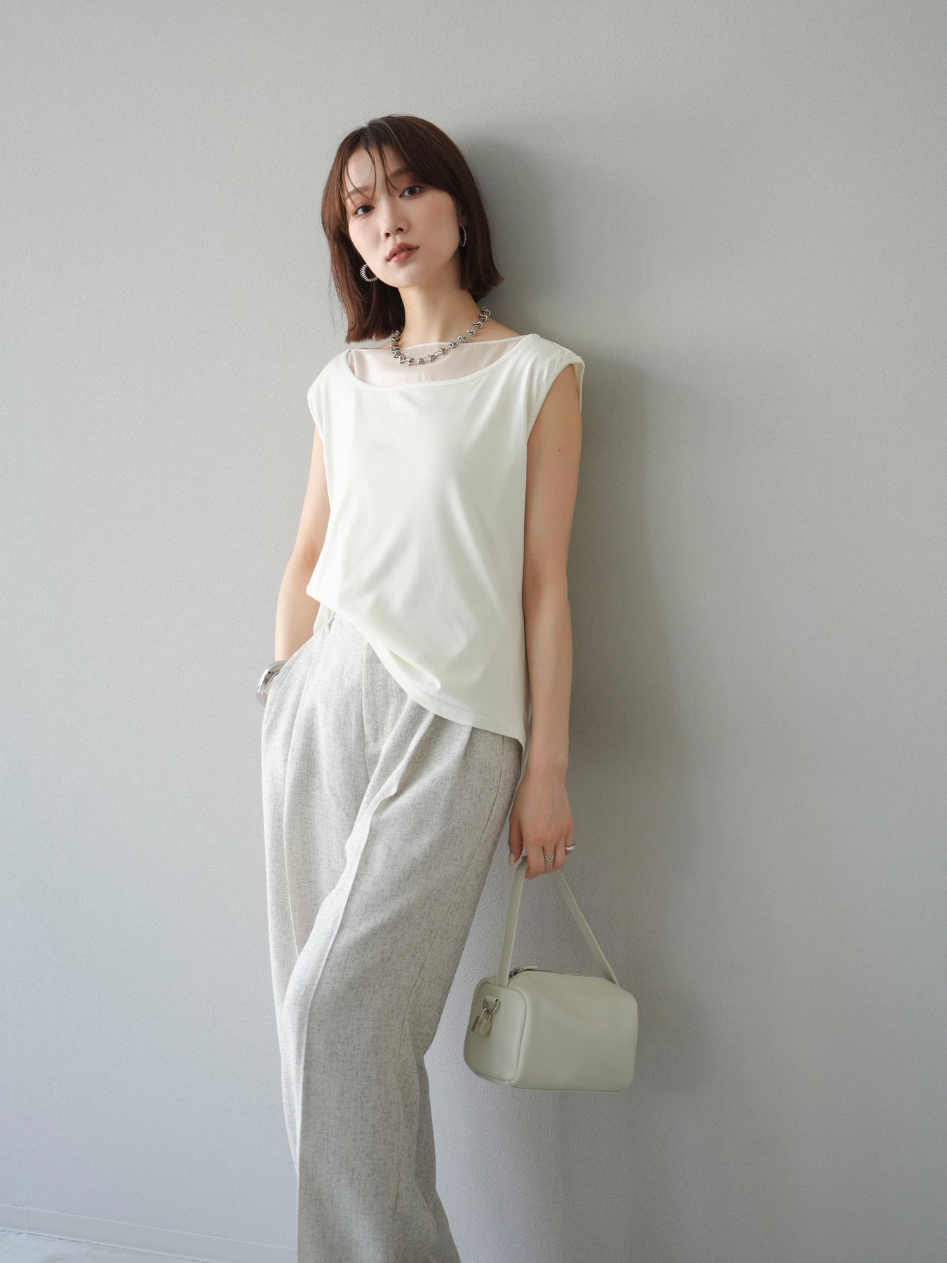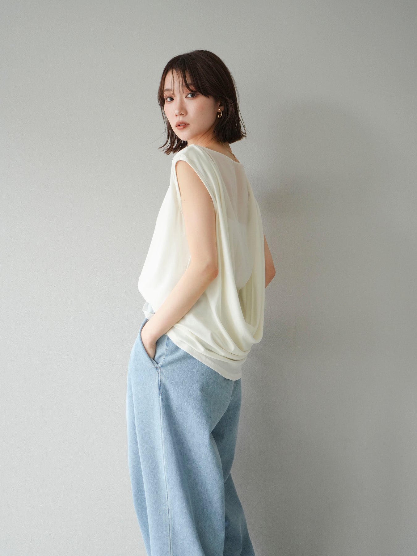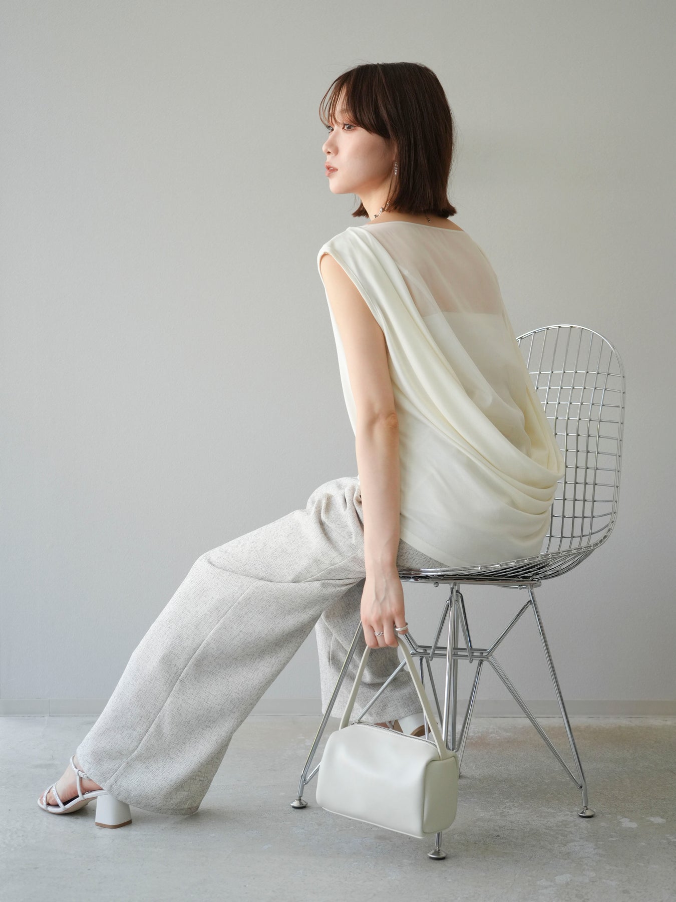 [預訂] 雙向透視多層垂墜上衣/象牙色