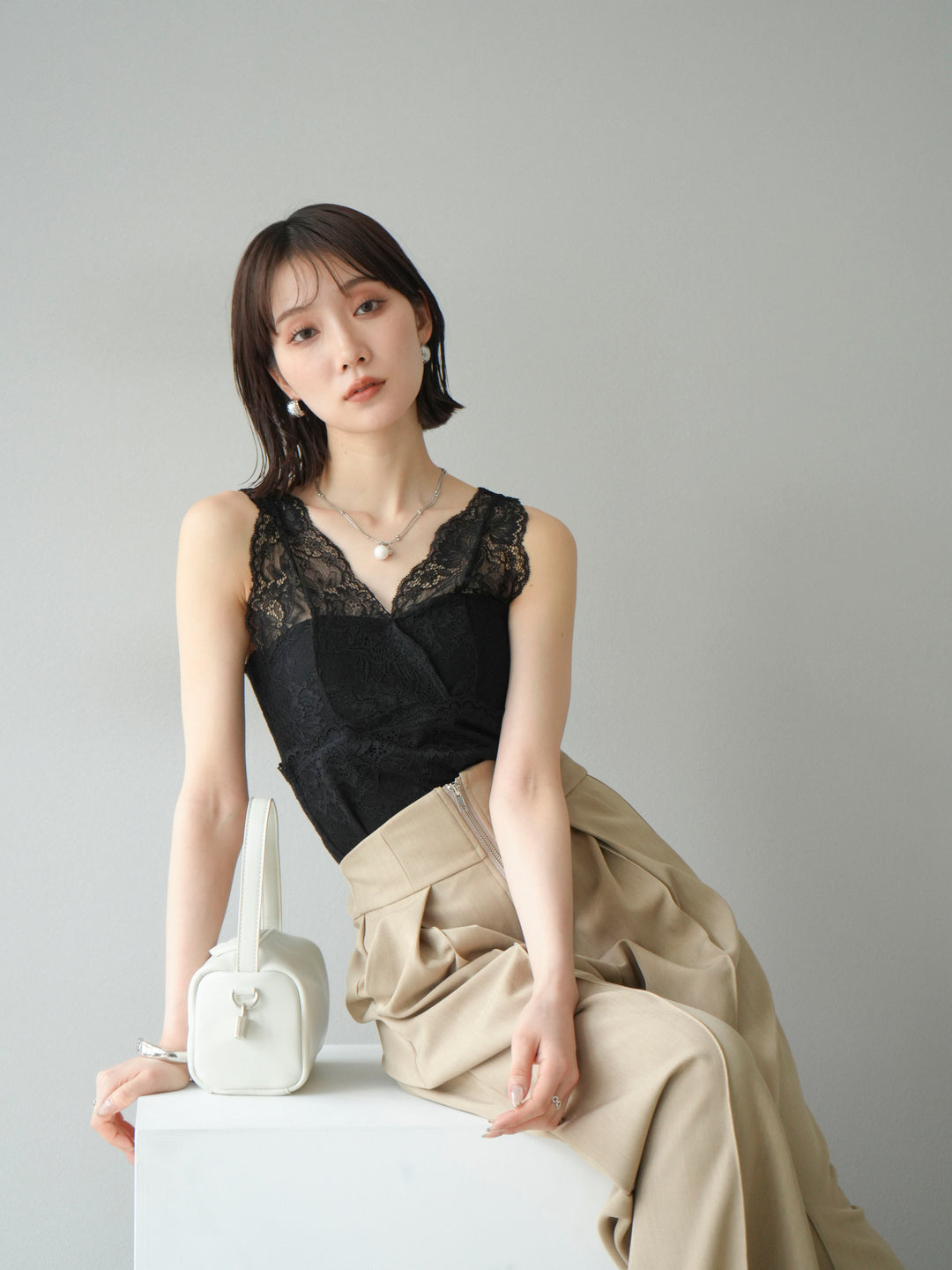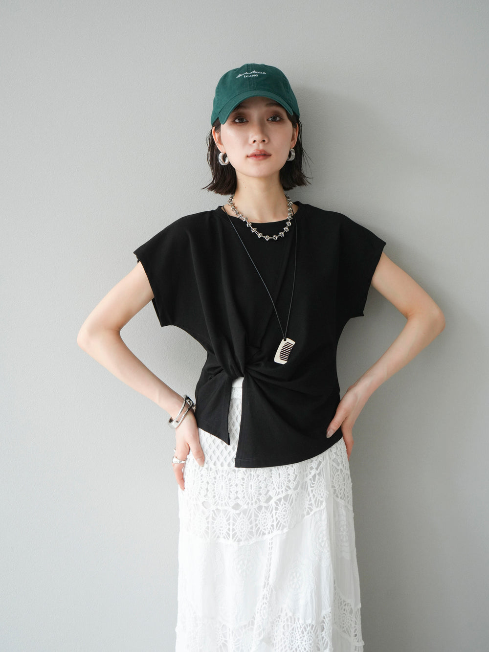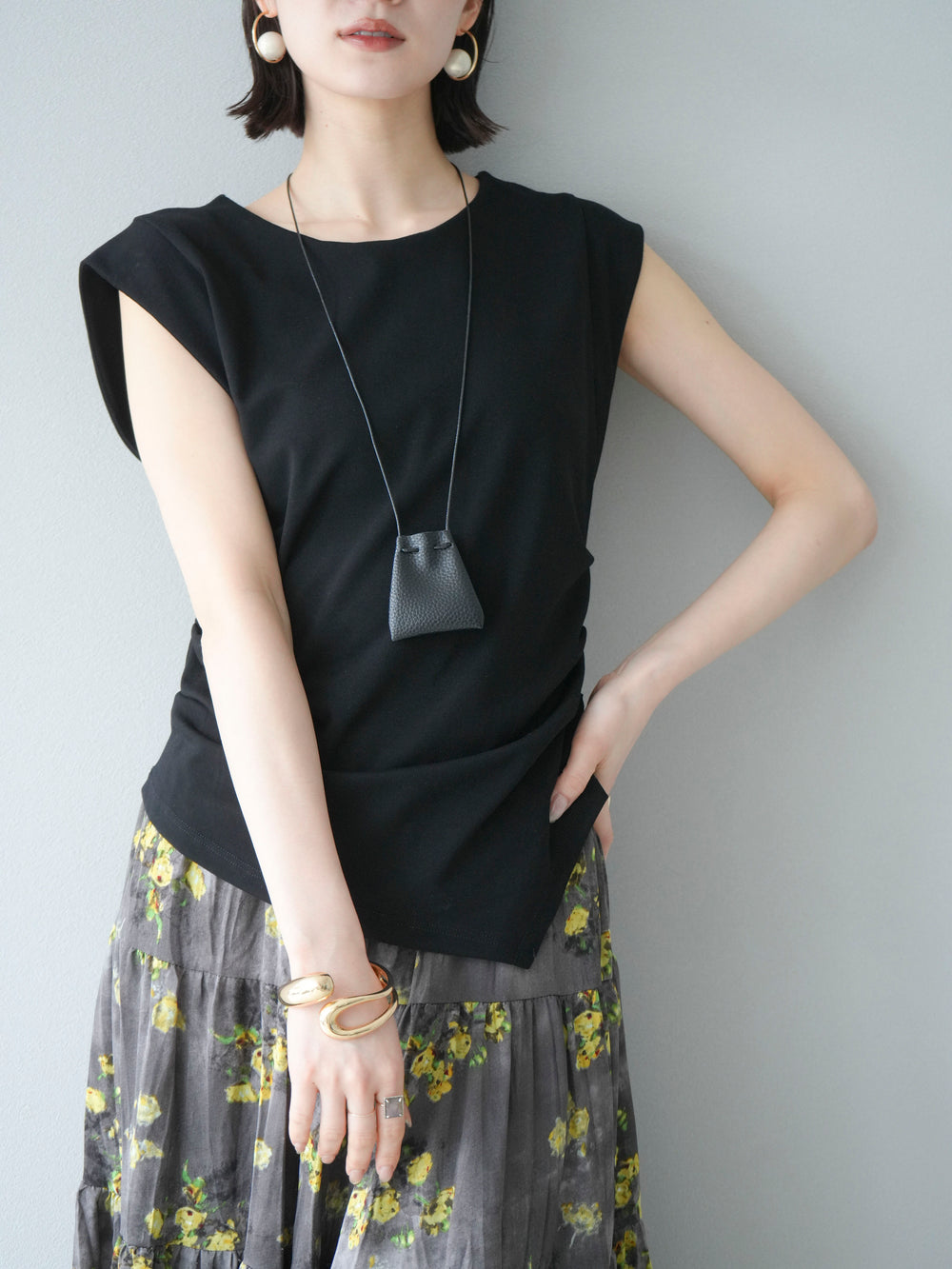 【預購】側褶T卹&抽繩皮革項鍊套裝 / 黑色