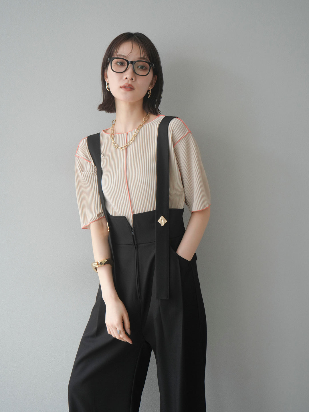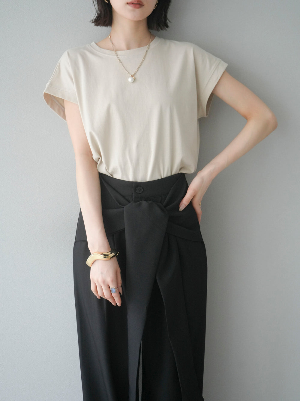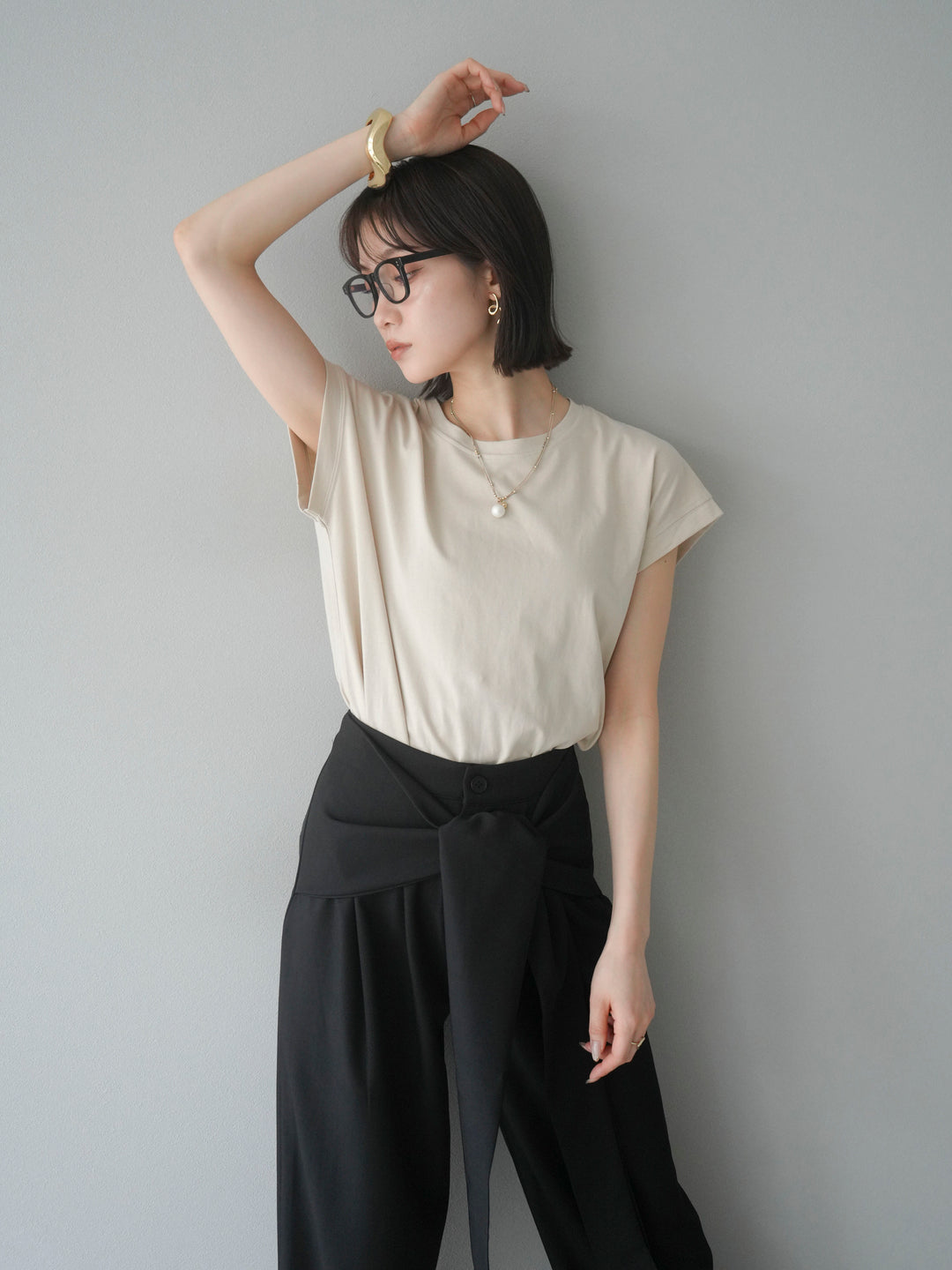 【預購】色彩協調的柔和褶皺半袖上衣/米色